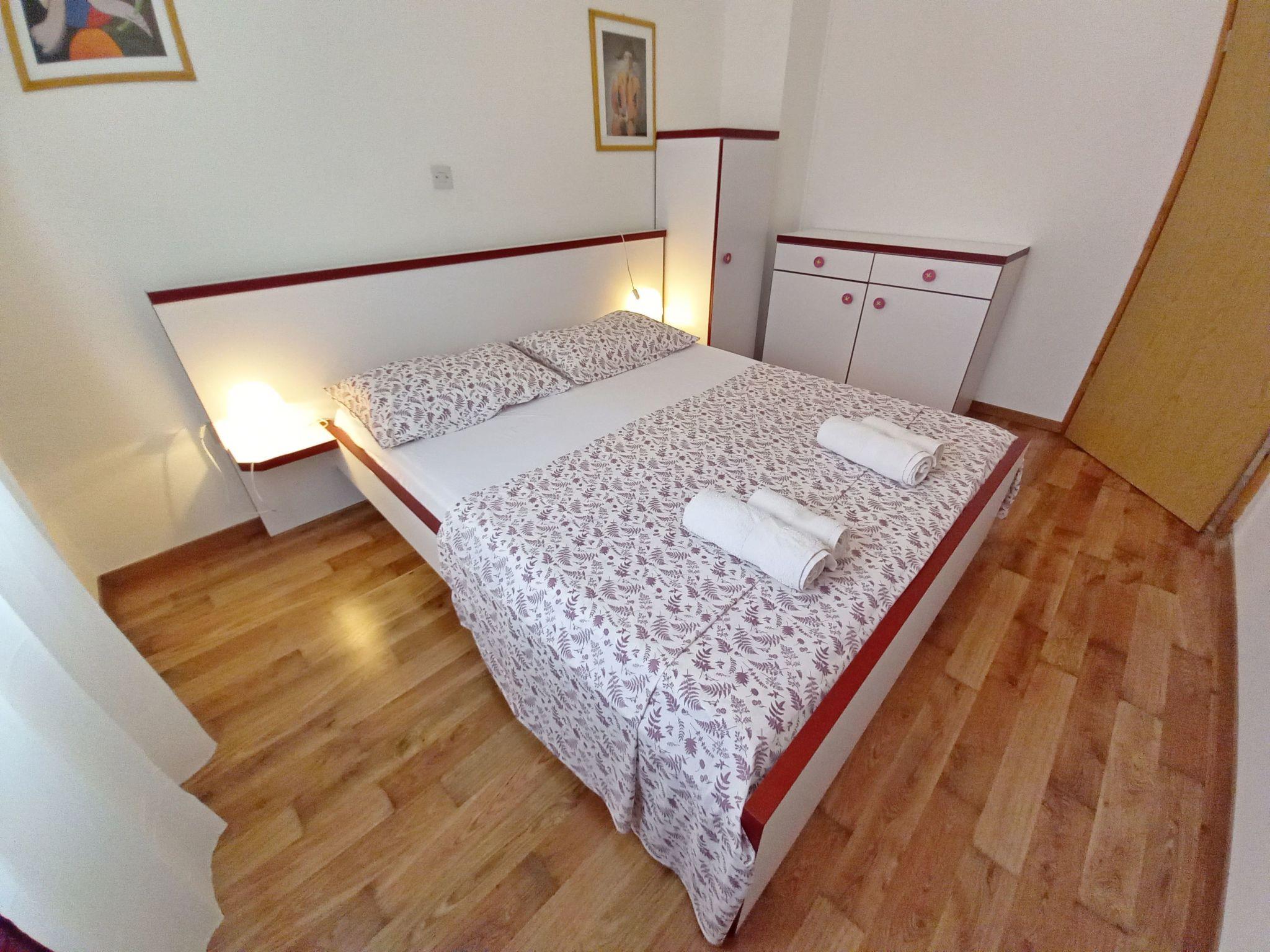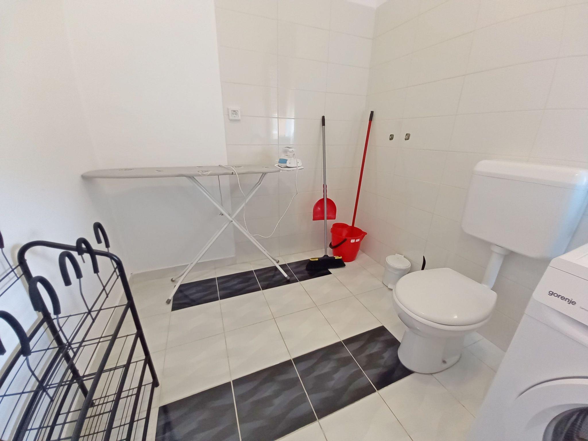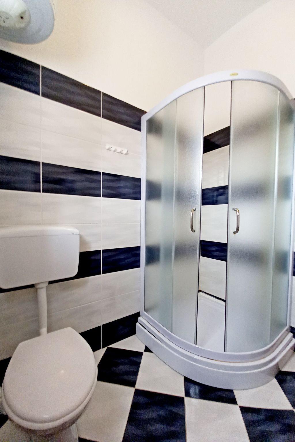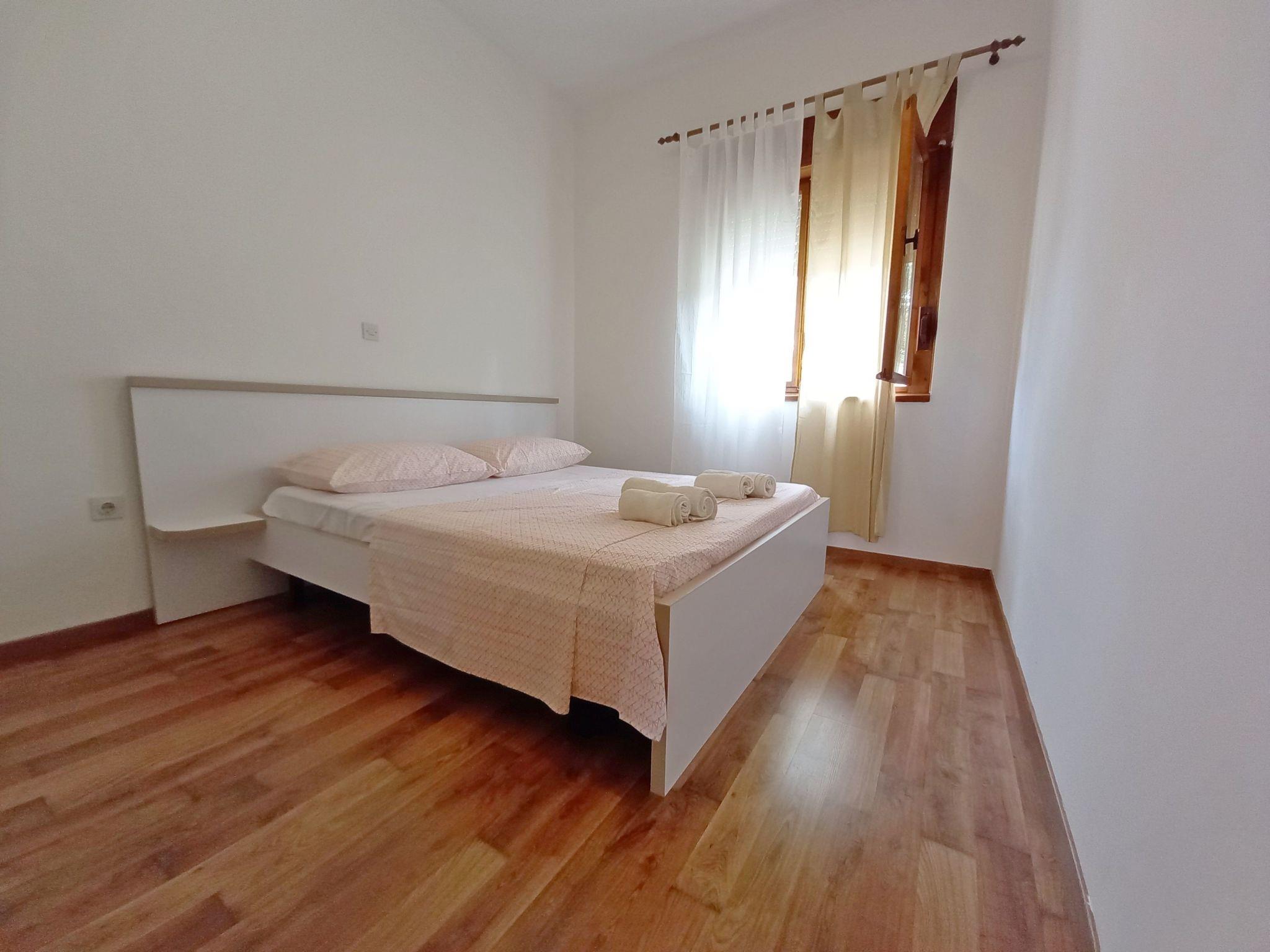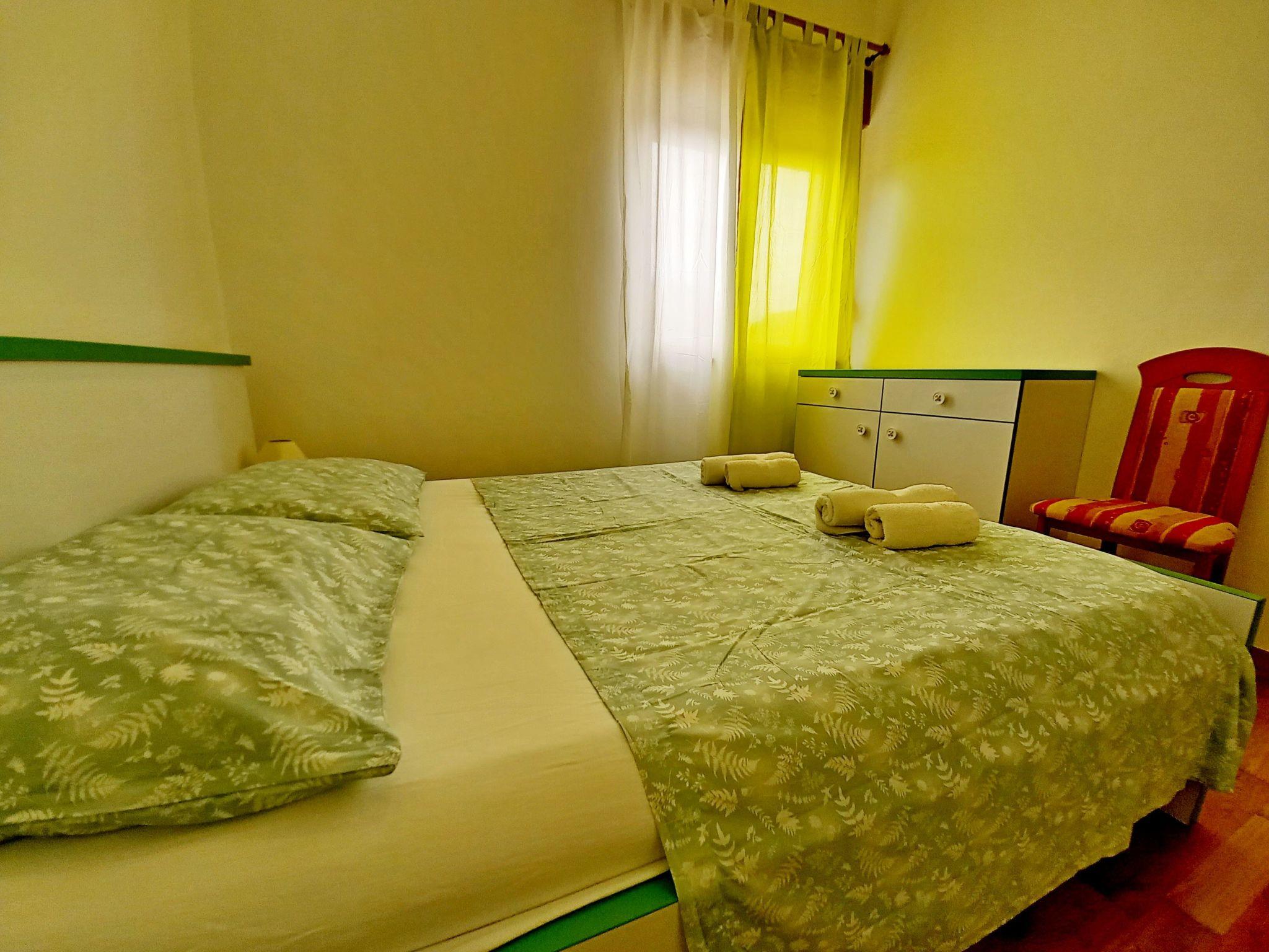 The interior of the house spans 100m2, accompanied by an ample yard of 150m2, making it spacious enough to comfortably accommodate up to 10 guests. The house is well-equipped with modern amenities including a washing machine, dishwasher, satellite TV, air conditioning, Wi-Fi, microwave oven, a four-ring oven, coffee machine, BBQ, and garden furniture. A baby cot is available for families traveling with little ones. The living area integrates a cozy open kitchen with a dining space, leading to three bedrooms featuring double beds, one bedroom with two single beds, and additional sitting/sleeping couch for two persons in the living room. There are two bathrooms, each with a toilet, washstand, and shower, plus one separate toilet equipped with a washing machine and washstand.