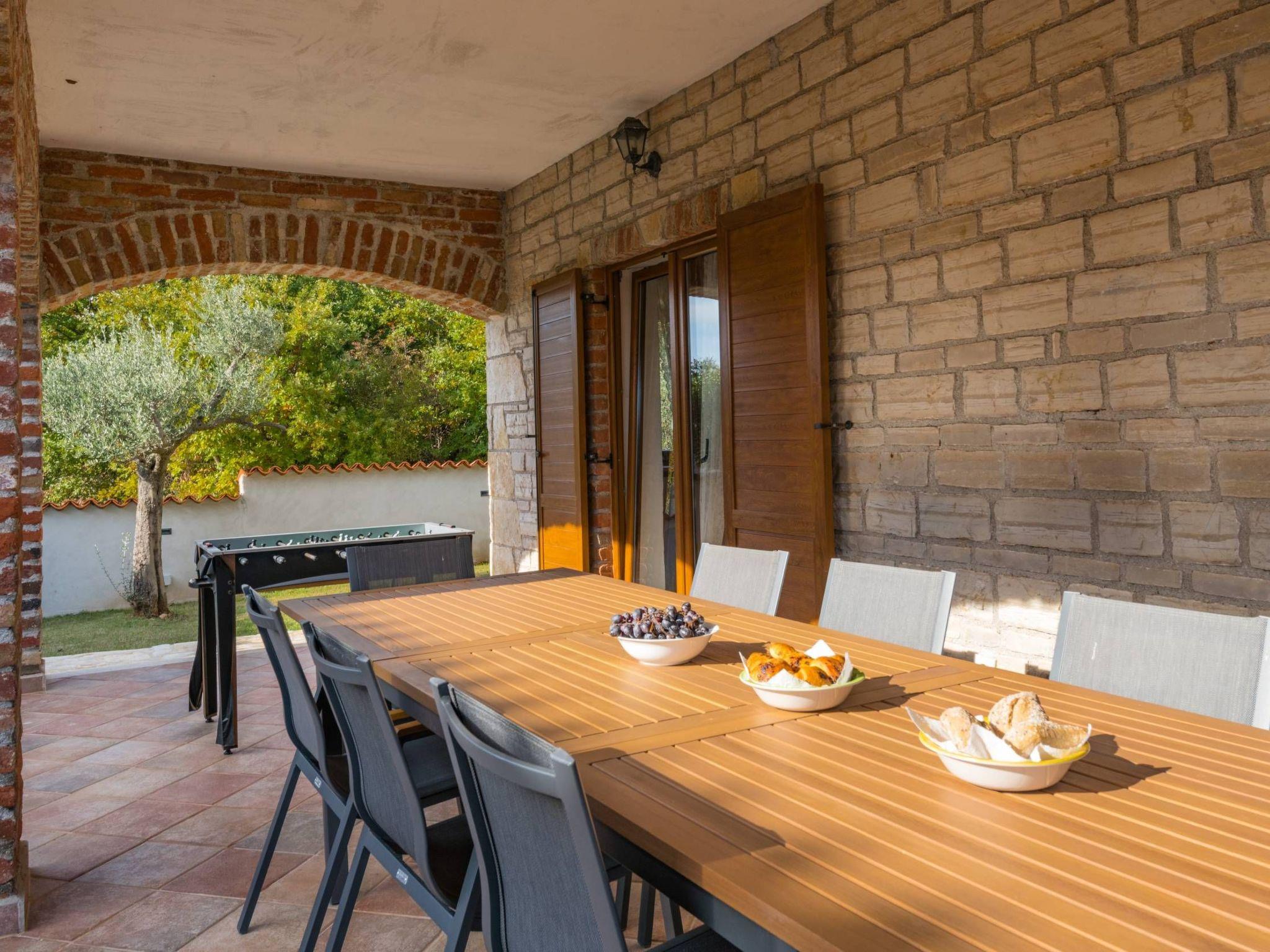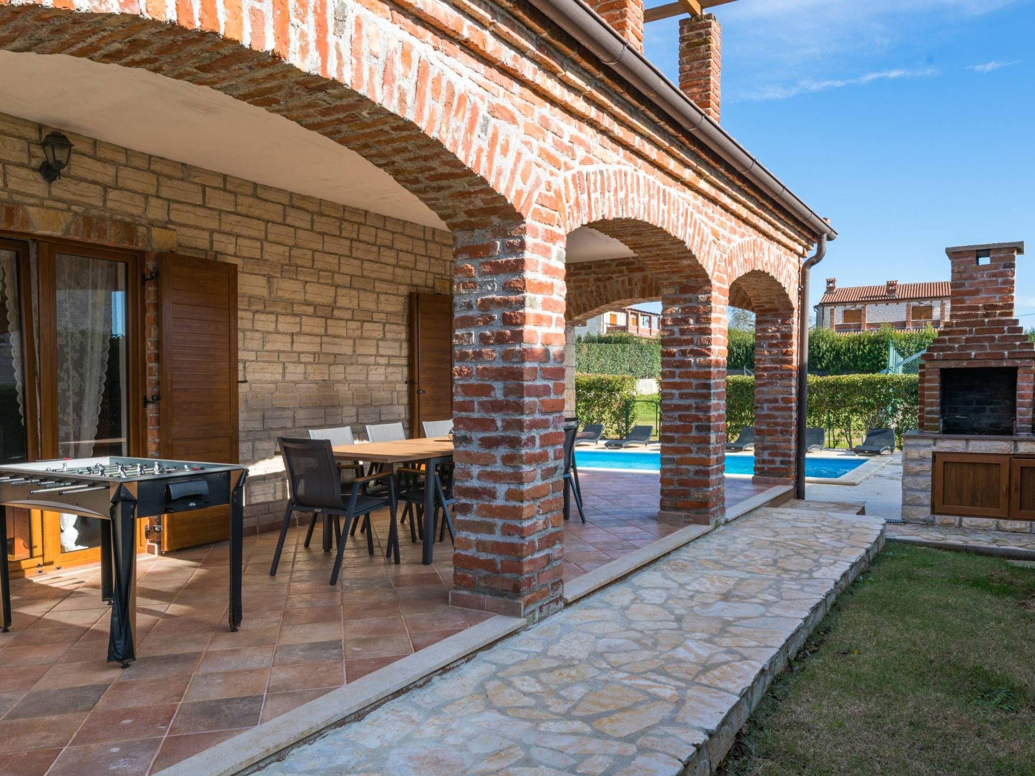 Villa Berenice is a simple, traditional but pretty well-equipped house on an excellent location between Juršici and Vodnjan. Villa is 15,8 km away from Pula Airport. First market and restaurant are 2 km away, and nearest beach in Peroj is 12km from the property. Rovinj is 20.9 km from Villa Berenice, and Porec is 33.8 km from the property.On the ground floor, there is a living room with a comfortable double and triple sofa, large LCD TV with satellite channels, portable WiFi modem, fireplace, air conditioning and doors leading directly to the terrace.The dining room is connected to a living room and a fully equipped kitchen which contains:- dishwasher- hob and oven- fridge and freezer- coffee maker- microwave- water kettle- dishes & utensilsNext to it is a table with 8 seats that can easily accommodate large groups of up to people.On the ground floor, you also have a bathroom with a washing machine, a toilet, and a large walk-in shower.There are 4 bedrooms available, two of which are equipped with double beds, while two remaining bedrooms have single beds. The first bedroom is on the ground floor and has direct access to the terrace and courtyard, while the 3 bedrooms are on the first floor.On the first floor there is a spacious balcony shared by two bedrooms, and one bathroom with a large walk-in shower, bidet, and toilet. One large air-conditioner is located in the first-floor hallway to equally cool all rooms.Within the facility there is a spacious terrace with an outdoor table and 10 chairs, while next to it you have a masonry barbecue. Dominant position in the yard is taken by a spacious 32 m2 swimming pool and 6 comfortable sun loungers.The yard is completely fenced and has one parking space, while other vehicles can be parked in front of the house fence.There is a tennis court that our guests can use, shared with other guests at the villa resort (16 villas have that privilege), and also a half-basketball court where you can shoot some hoops. Here you have a couple of great options for an active vacation.