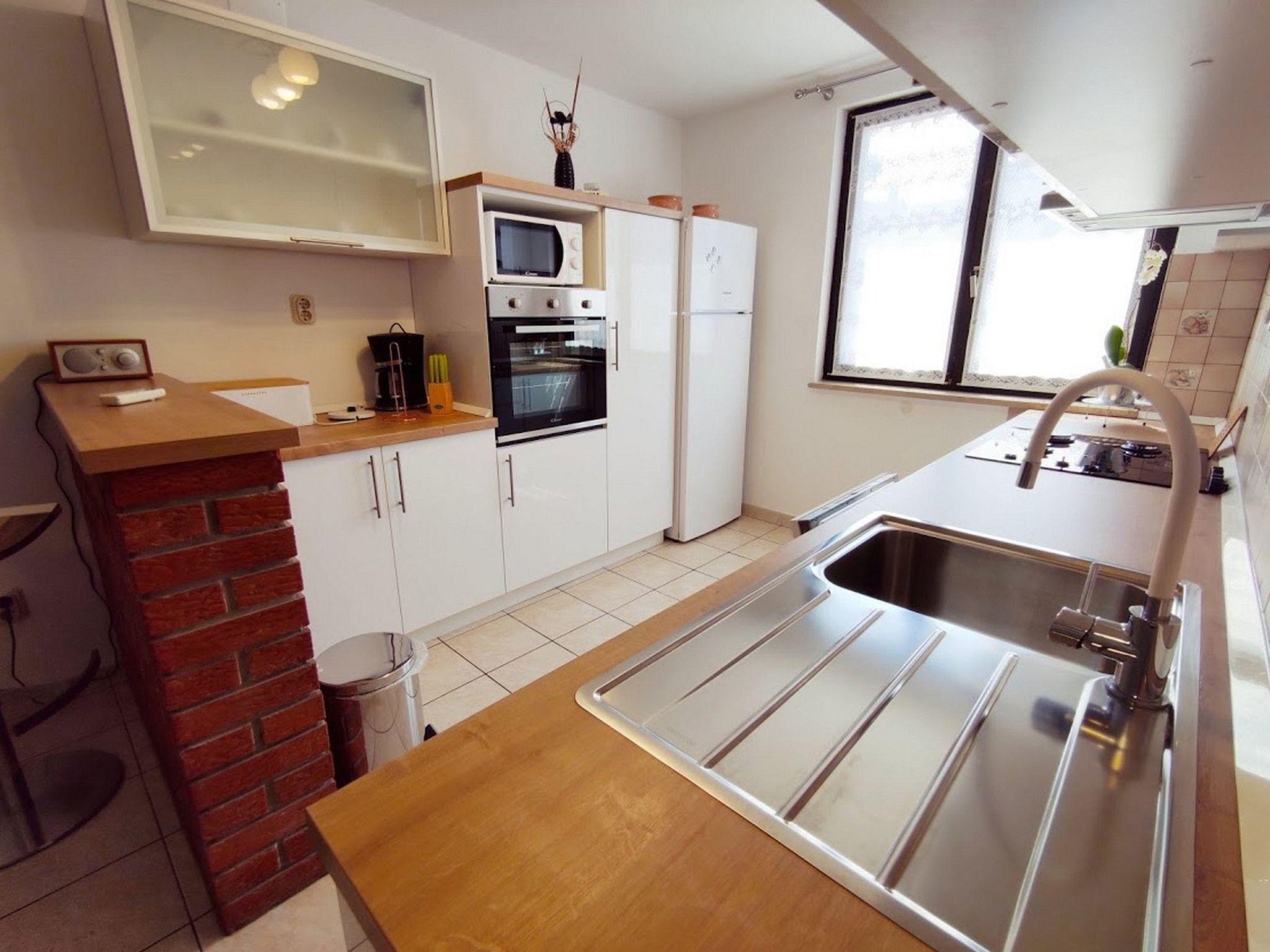 - kitchen (4 cooking rings, oven, coffee machine, air hood extractor, refrigerator with freezing section, microwave, kettle, dish washer)