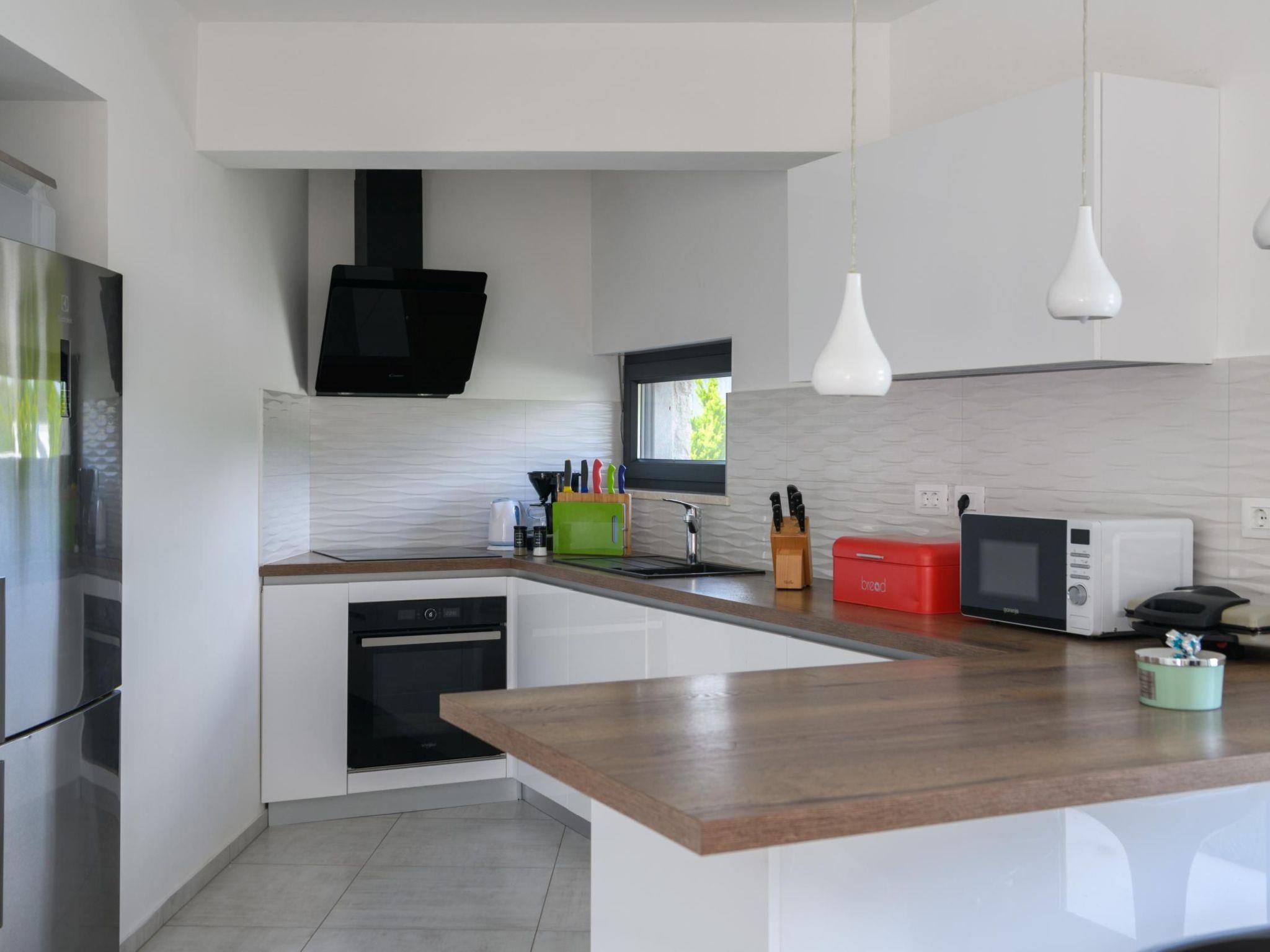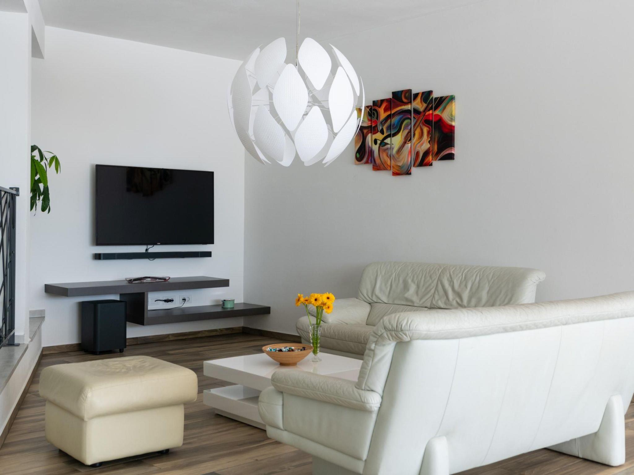 Inside, Villa EmMa boasts a substantial living area where guests can unwind, alongside a fully equipped kitchen for those who love to cook. The villa prides itself on its five cozy bedrooms, each coming complete with dimmable lighting to ensure a restful night. Furthermore, every bedroom is outfitted with its own bathroom, providing utmost convenience and privacy. Essential amenities such as underfloor heating, air conditioning throughout, and a washing machine for exclusive use, ensure a stay characterized by comfort and ease.