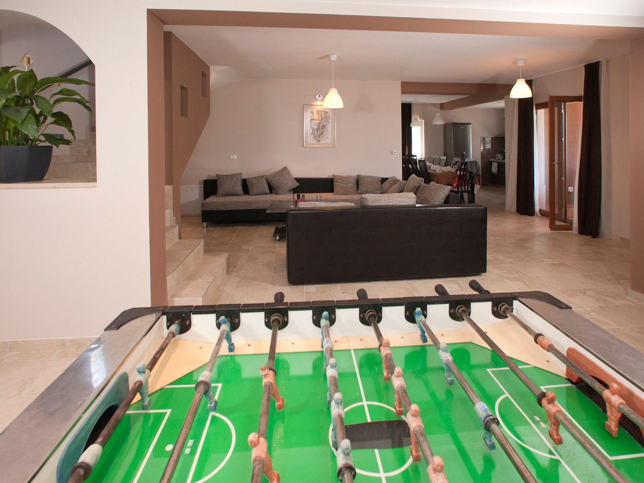The interior of the villa is spacious and bright, tastefully and modern furnished. It features 5 bedrooms, each with its own bathroom, kitchen with living room and football table.