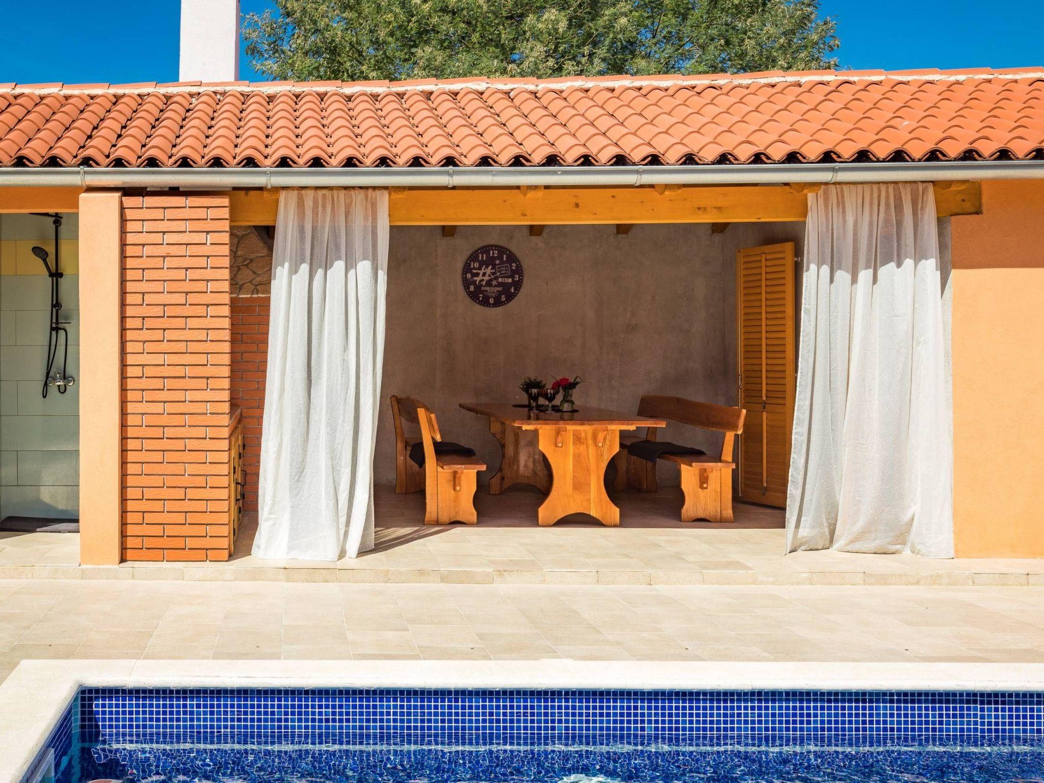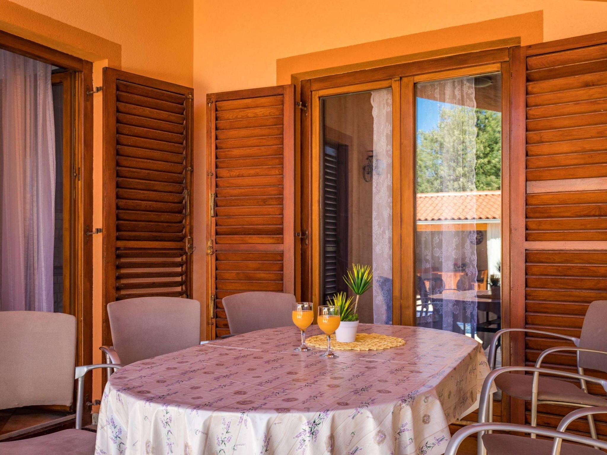 Villa Ena is a cozy house with 4 bedrooms, only 4 km from the center of the historic city of Pula.The living area of 250 m2 consists of a living room, a fully equipped kitchen, 4 bedrooms, 3 bathrooms and a separate toilet.Each bedroom is equipped with beds, a wardrobe and a fan. The fourth bedroom is separate from the house, in a small utility house. As part of this additional building, there is a covered summer kitchen, an outdoor table and a grill/fireplace. The fourth bedroom also has its own bathroom.The living room has a large sofa, TV and air conditioning.10 people can dine in the dining room.