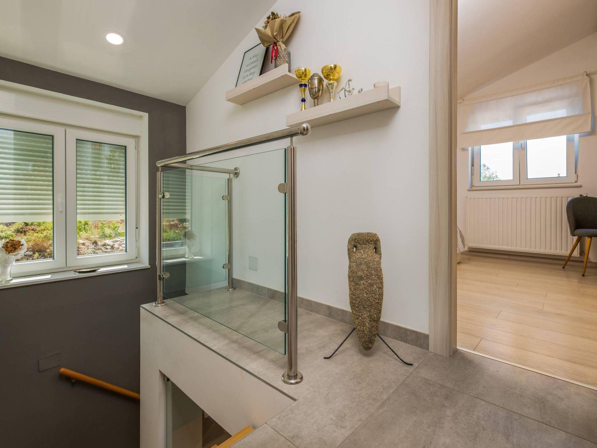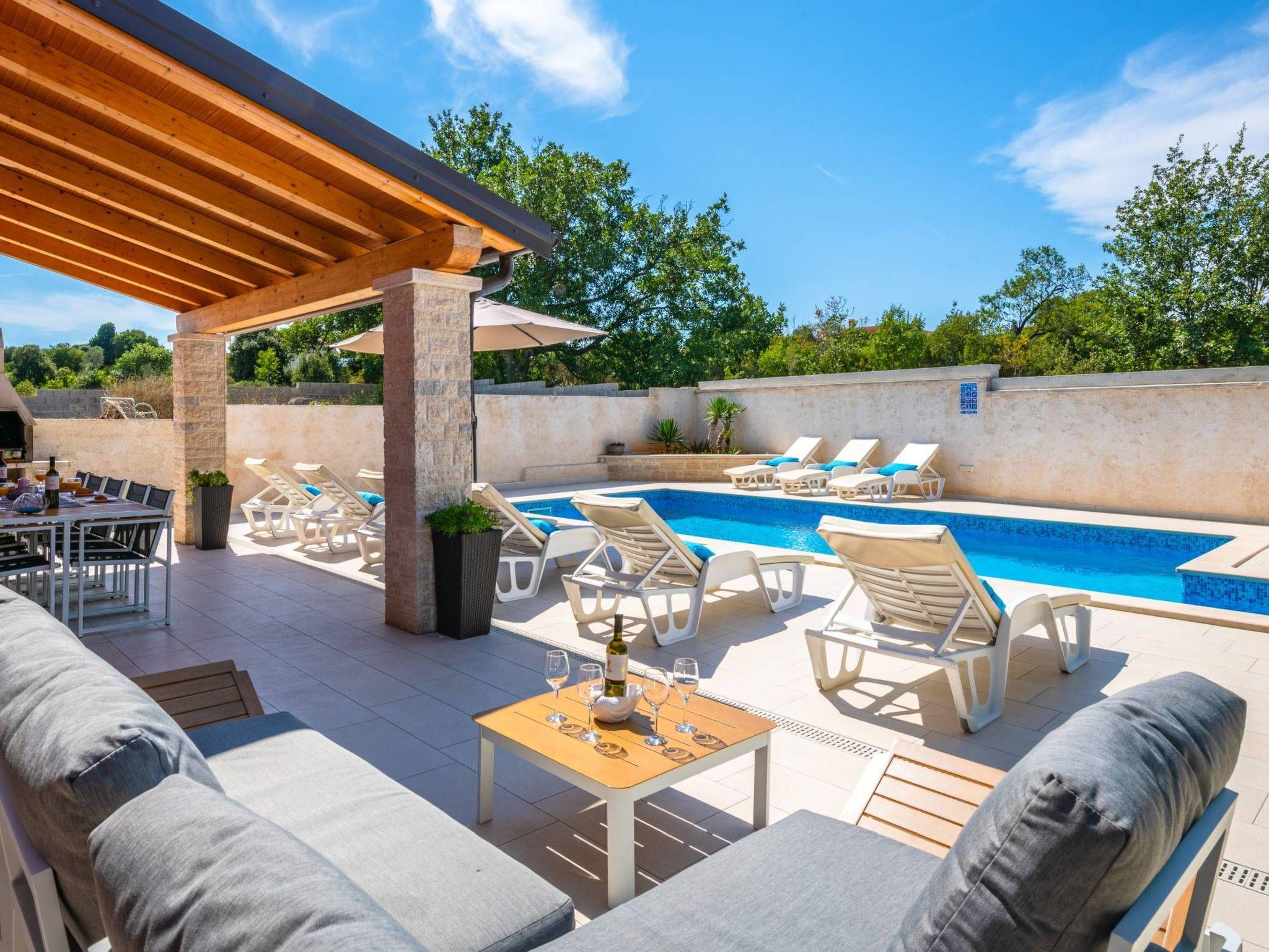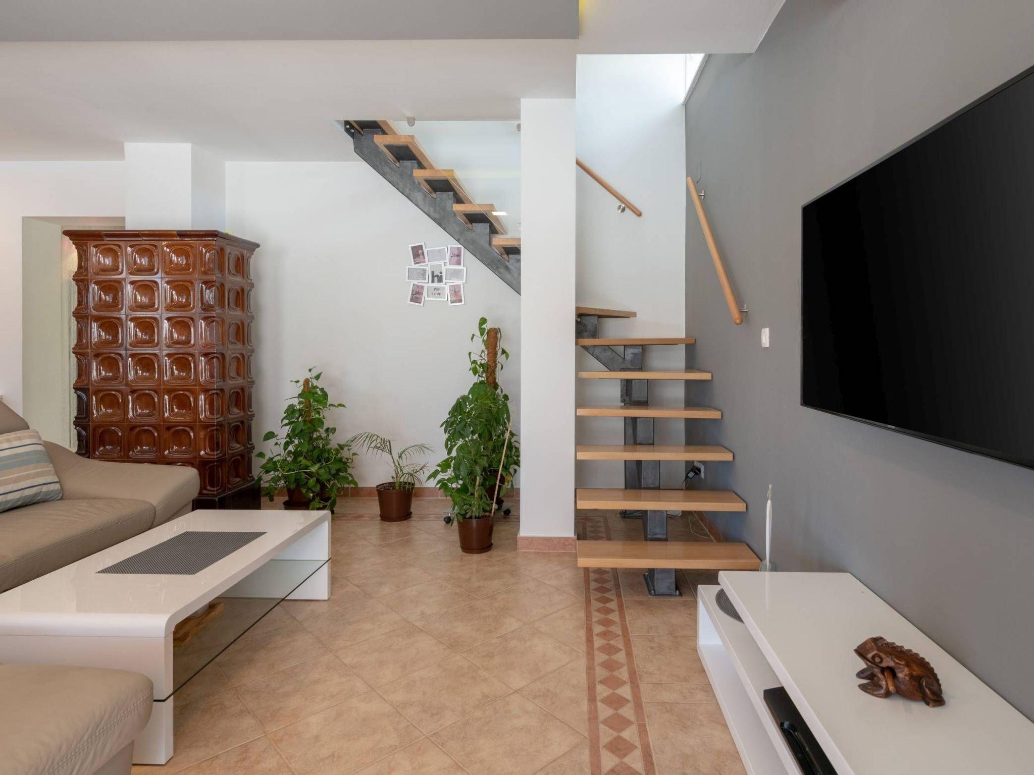 A beautiful 34 m2 pool is featured. It is filled with salty sea water, suitable for allergy sufferers, no chemical content in the water. The covered terrace with an outdoor table provides a beautiful view of the pool. Right next to the terrace is a barbecue.