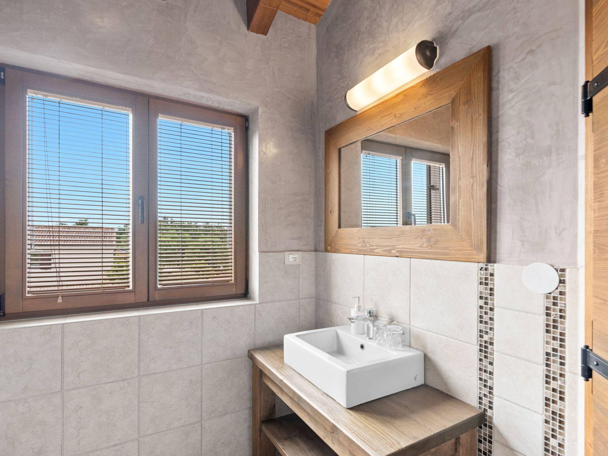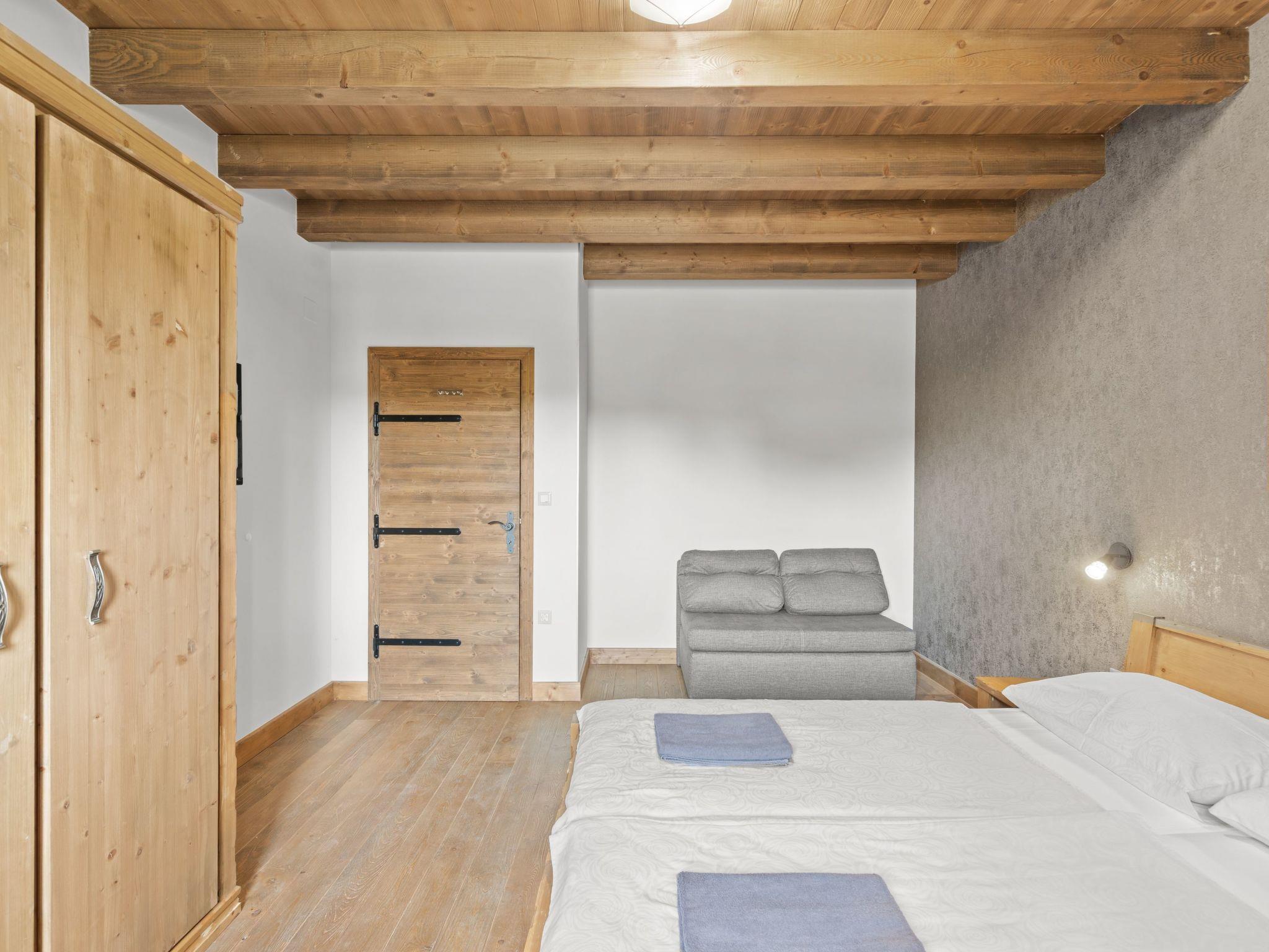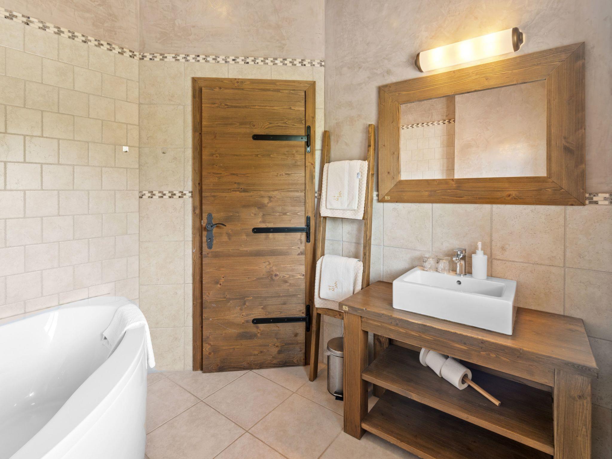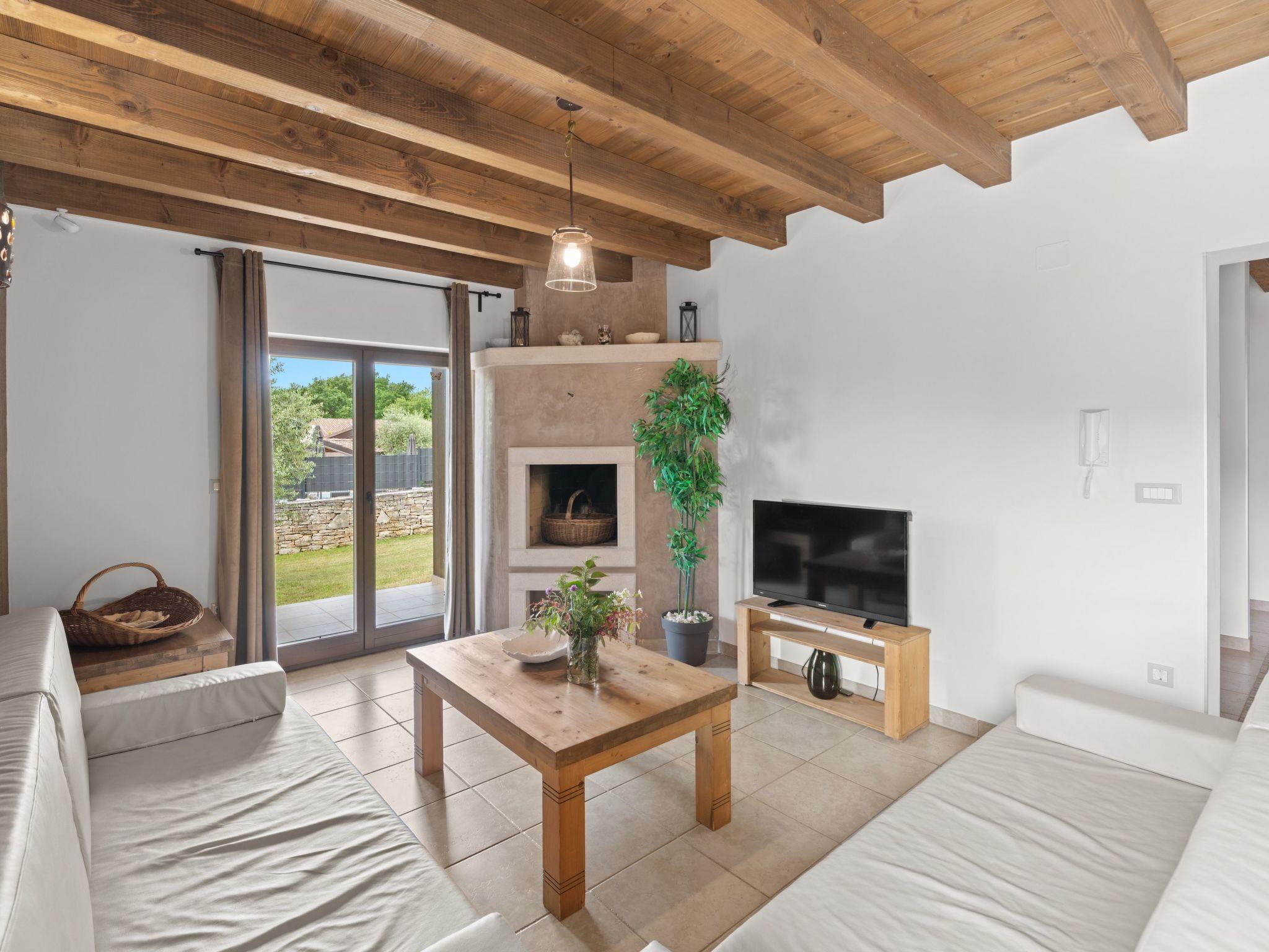 The interior of Villa Dante impresses with an open-plan living area that immediately casts a spell with its charming furnishings. The massive day beds, the tasteful coffee table, an LCD TV and the attractive corner fireplace are just some of the highlights of the living room. The adjoining, generously designed kitchen with modern amenities such as an oven, microwave, ceramic hob, dishwasher and much more, invites you to create culinary masterpieces. The massive dining table seats up to ten people, perfect for enjoying meals together.