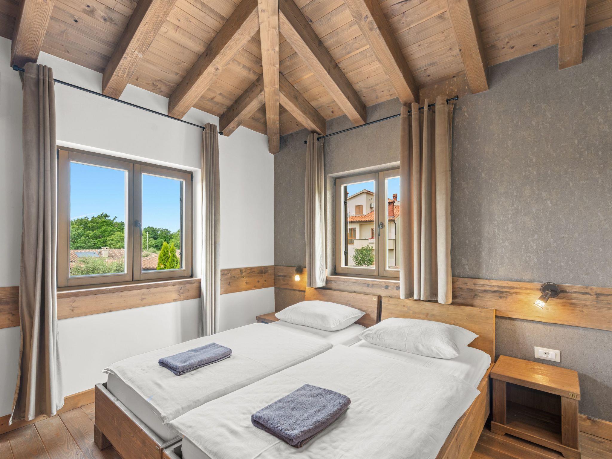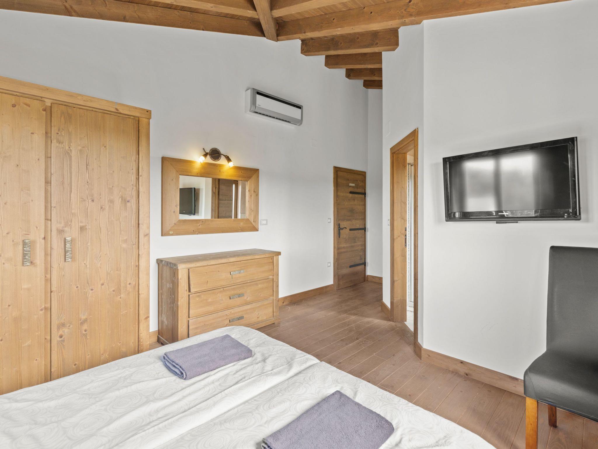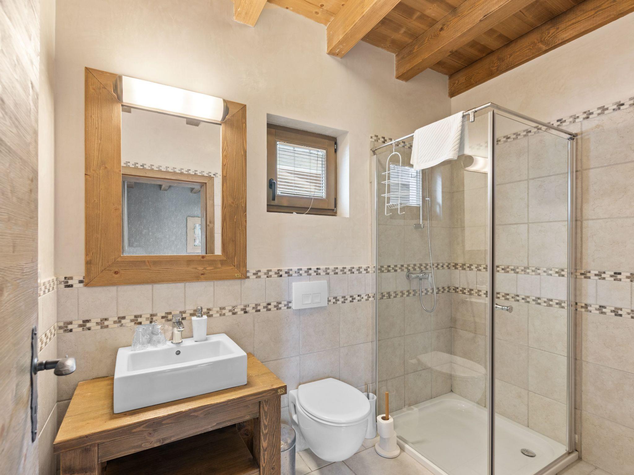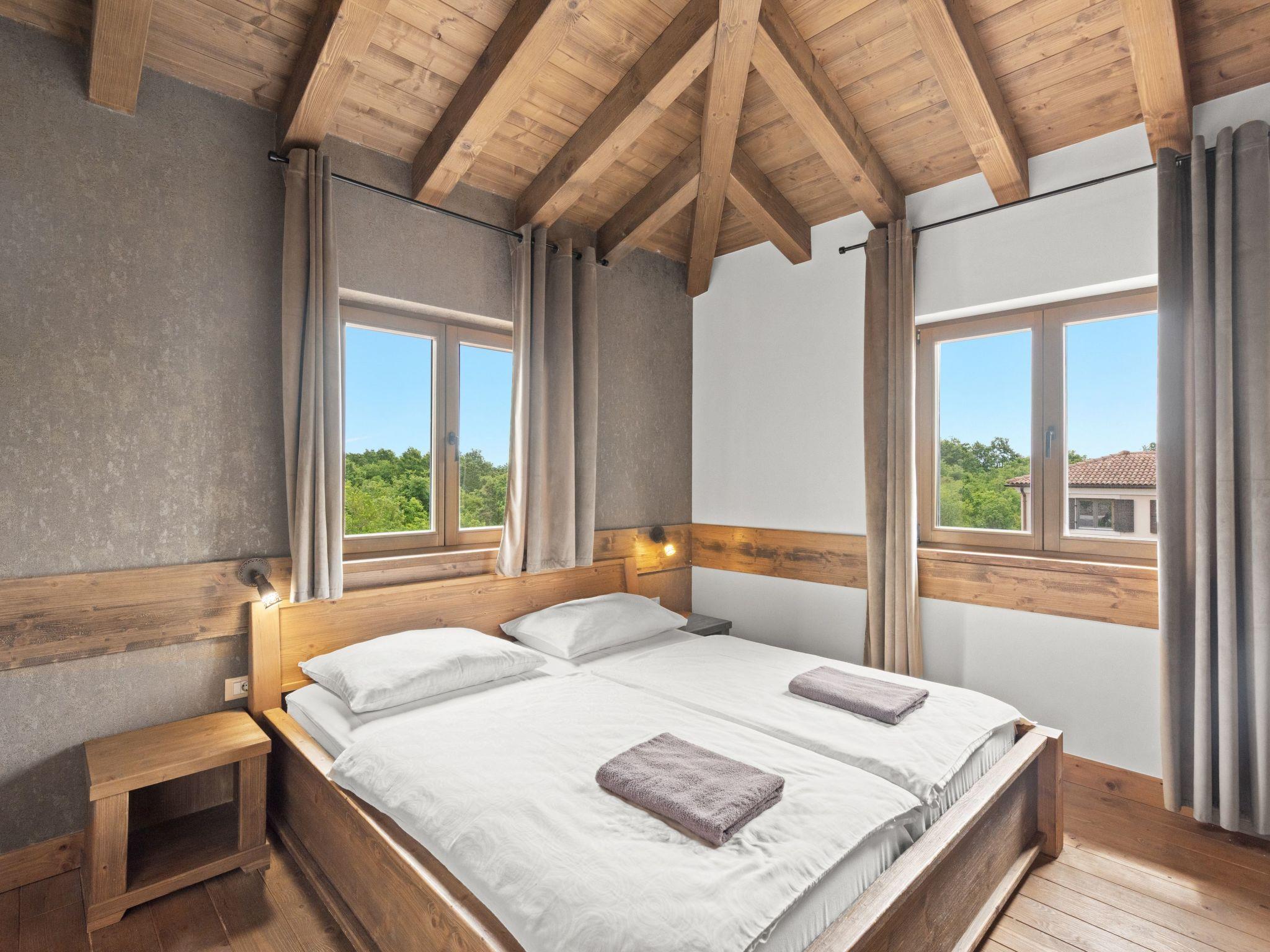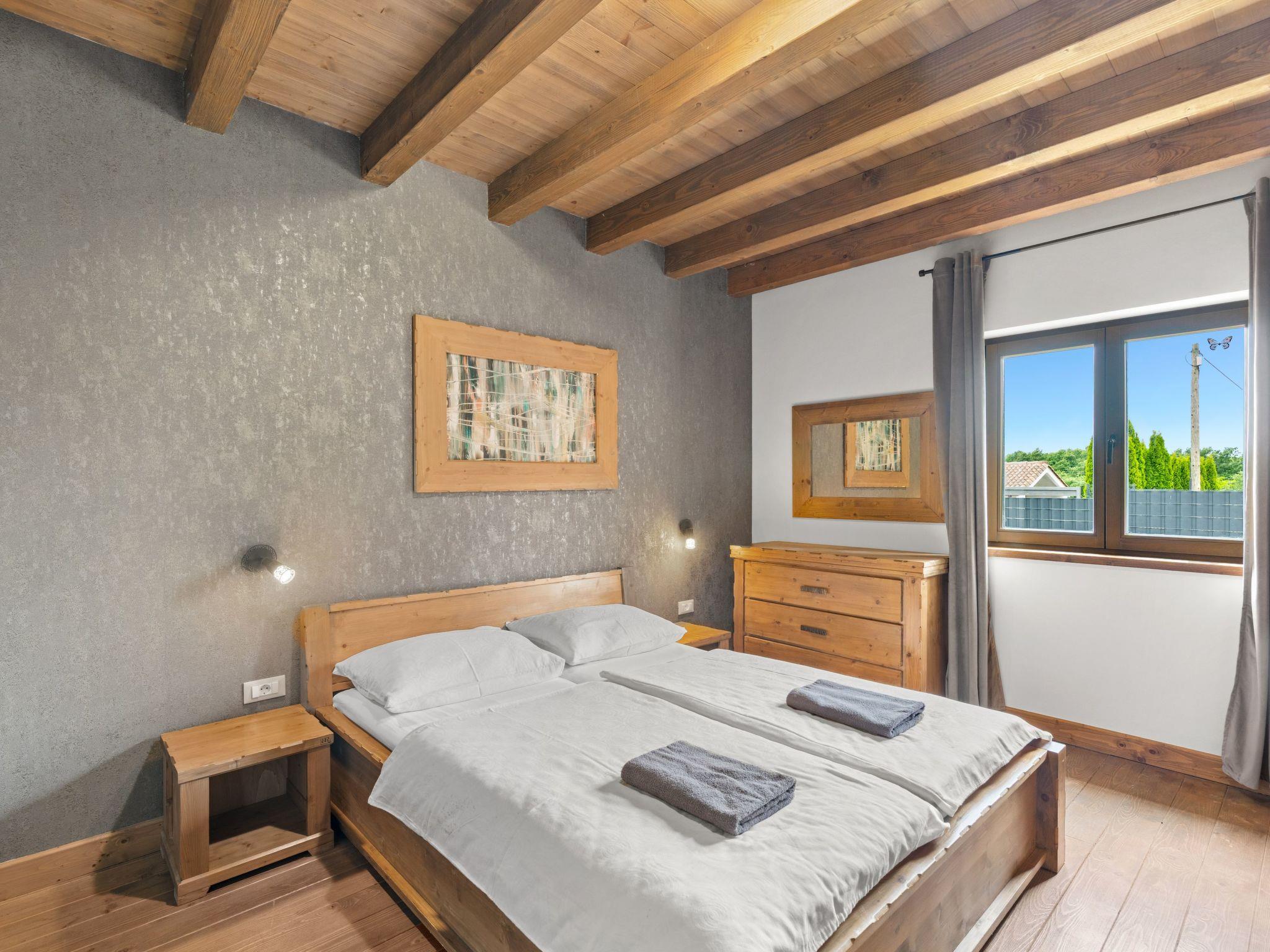 The interior of Villa Dante impresses with an open-plan living area that immediately casts a spell with its charming furnishings. The massive day beds, the tasteful coffee table, an LCD TV and the attractive corner fireplace are just some of the highlights of the living room. The adjoining, generously designed kitchen with modern amenities such as an oven, microwave, ceramic hob, dishwasher and much more, invites you to create culinary masterpieces. The massive dining table seats up to ten people, perfect for enjoying meals together.