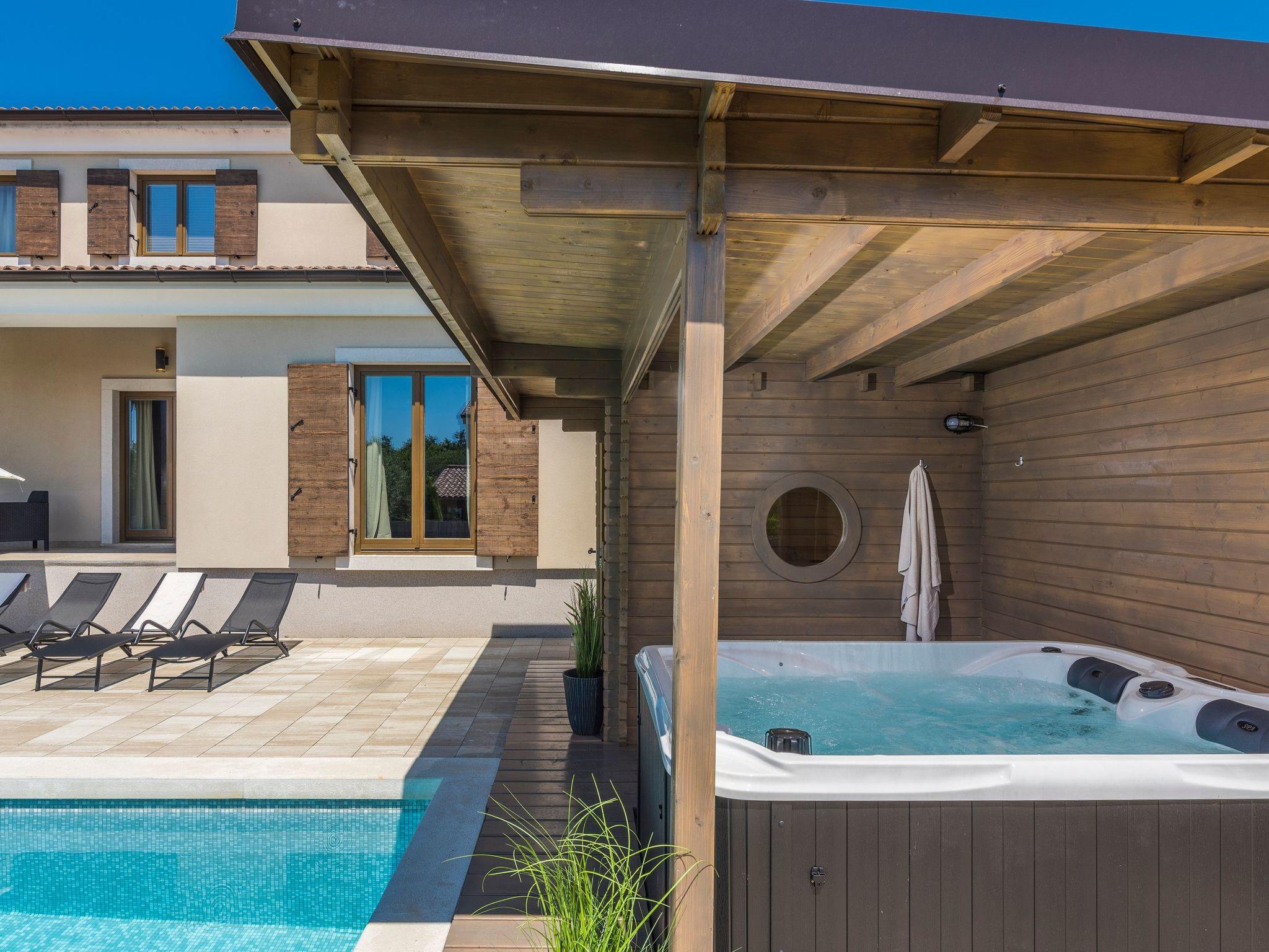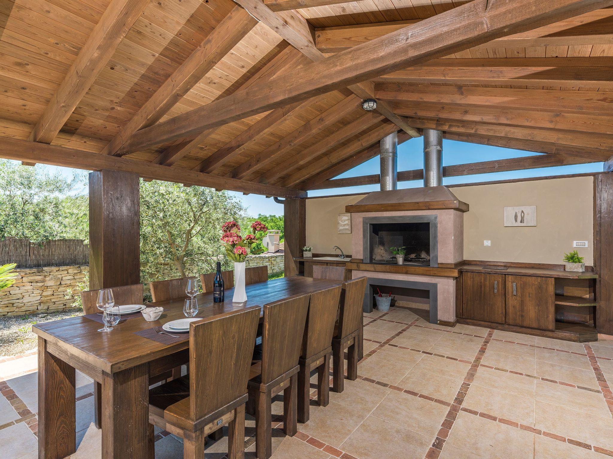 The luxury continues outside the villa. The pool terrace with a "wow effect" offers the ideal place for refreshment and relaxation with warm wooden floorboards and a seamlessly adjoining cool pool. The whole thing is complemented by the fully equipped, covered summer kitchen with barbecue oven and a cosy dining area. Surrounded by a Mediterranean natural stone wall, you can enjoy absolute privacy and an unrivalled ambience.