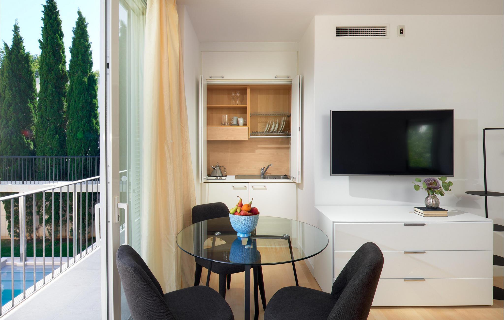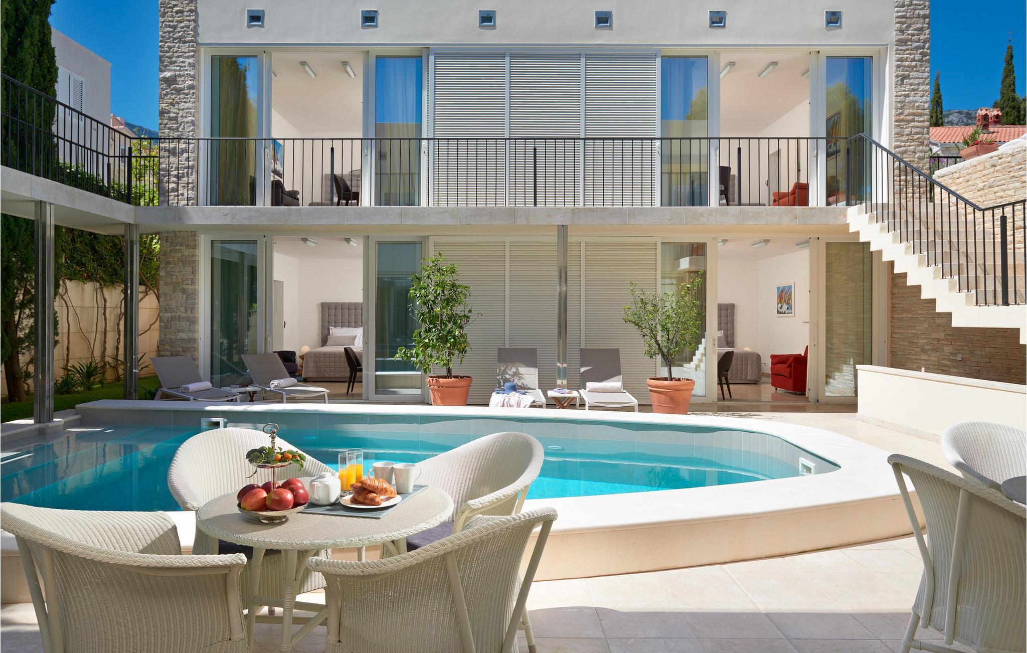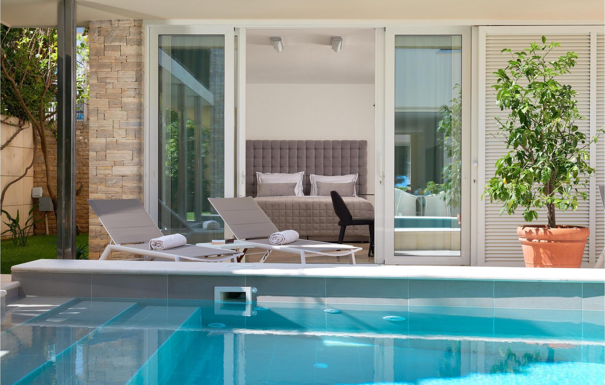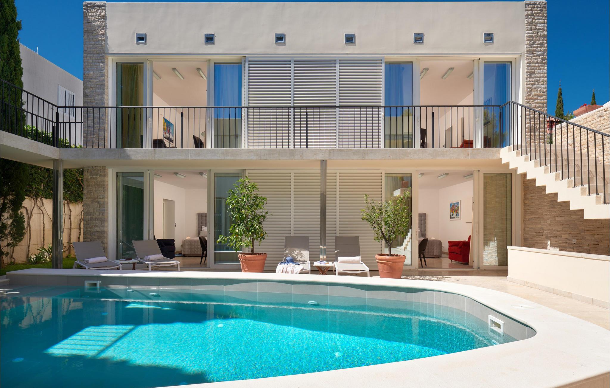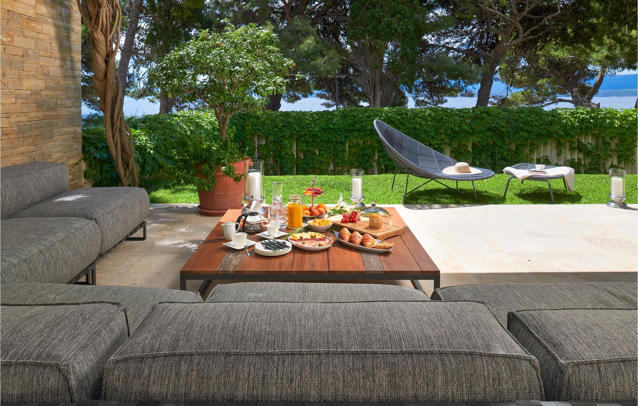 snup en frisk dukkert i den storslåede pool, når I har lyst, og indånd duften af ??fyrretræer under afslappende siestaer på komfortable liggestole. Nyd en drink på balkonen, mens I kigger ud over det turkisblå hav, som I kun kan nå kun få skridt væk. Tilbered lækre måltider på grillen, og fejr jeres tid sammen med vin og stearinlys under åben himmel.