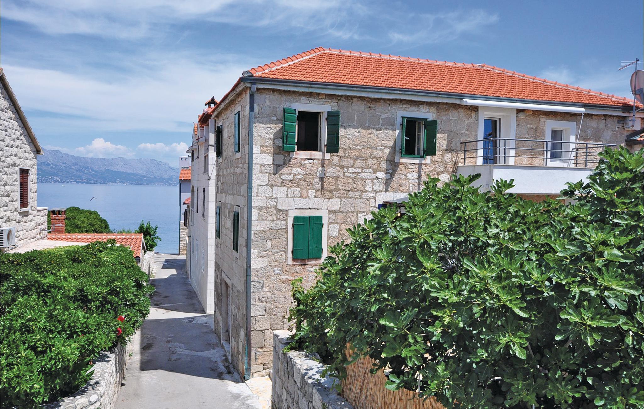Dette moderne dobbelthus består af to boliger, som begge bruger samme udendørs trappe. I stuettagen er der en rummelig terrasse, som er ideel til hyggelige grillaftener. Få skridt fra huset ligger der en børnevenlig stenstrand. I byen Supetar, der ligger ca. 12 km væk, er der om sommeren mange gratis teaterforestillinger, koncerter og andre kulturelle indslag. Supetar er øens største by, og er bestemt et besøg værd. Det kan også anbefales at tilbringe en dag på den berømte strand Zlatni Rat, der også er kendt som Det gyldne horn. Her kan I slappe af i det lune sand og svømme i det rene klare hav. Ud over de mange bademuligheder er der også oplagt at forkæle jer selv med god mad i en af de mange restauranter.