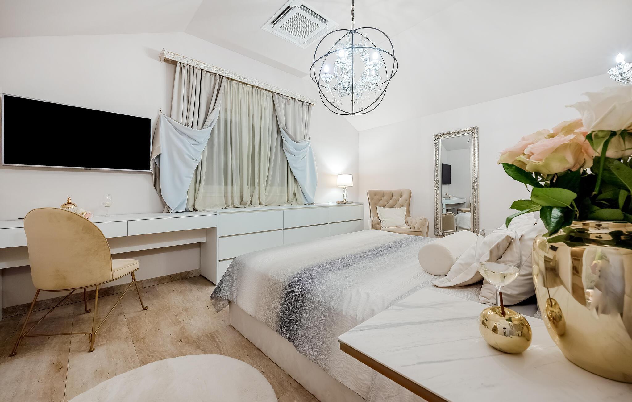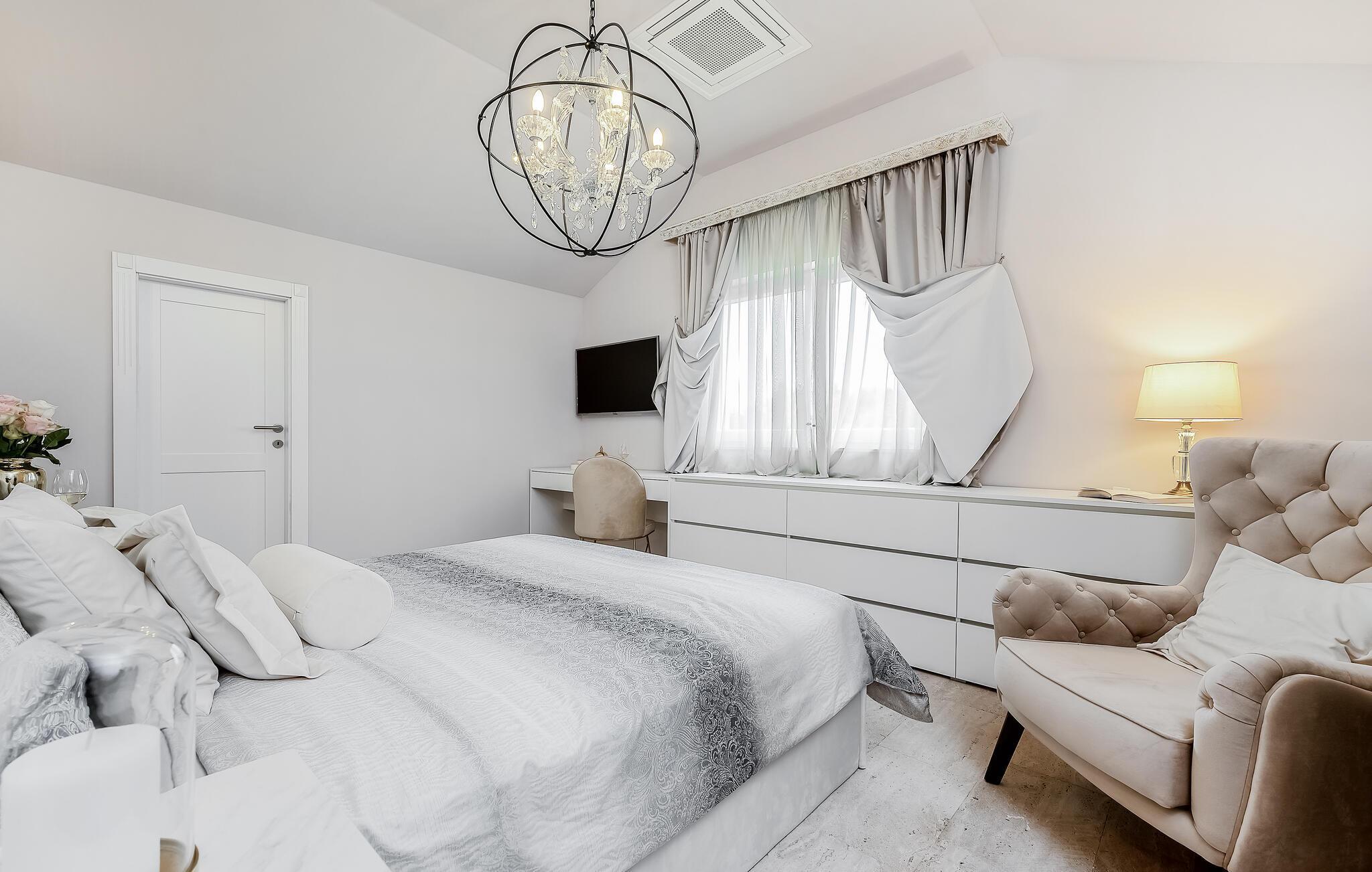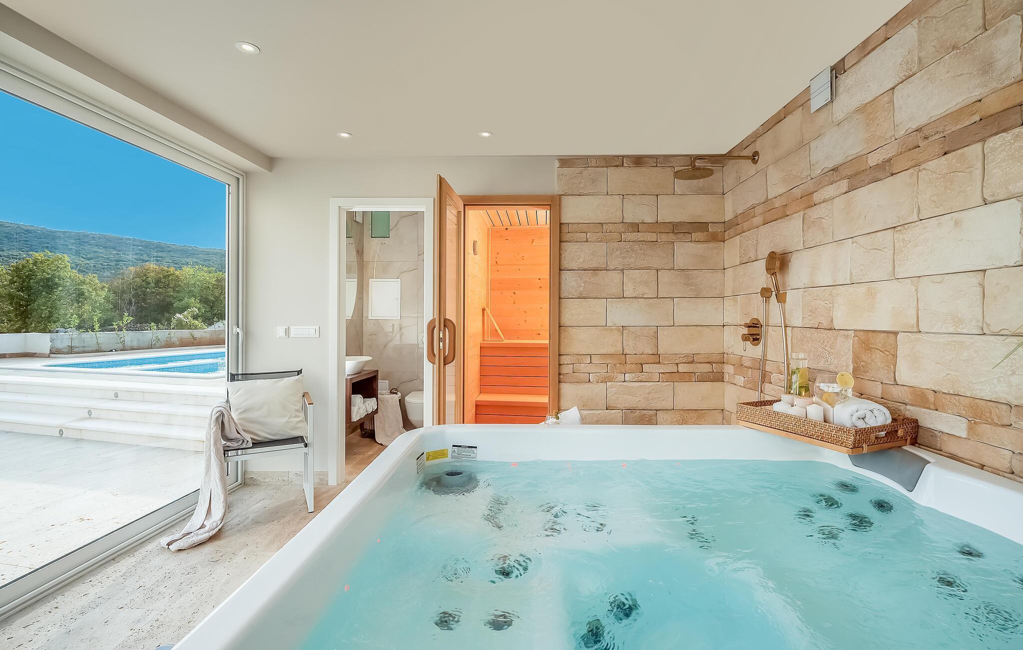 Rejs med jeres familie og skift direkte til feriemodus. Den elegante, stilfulde indretning, den åbne pejs i stuen og de højkvalitets møbler skaber en indbydende atmosfære, hvor komfort og luksus er i centrum. Gennem de store vinduer strømmer dagslyset ind i de lyse, åbne rum og skaber en varm, afslappet stemning – perfekt til afslappende dage i stilfulde rammer. Nyd jeres feriehverdage med at lave mad, spise, spille eller slappe af, og træd ud på balkonen eller udforsk haven og terrassen sammen med jeres kære. På den rummelige grund tilbyder det moderne hus ikke kun en swimmingpool, men også et wellnessområde med boblebad og sauna. Lad sjælen svæve og forfrisk jer i jeres private pool, mens jeres børn udforsker legepladsen.