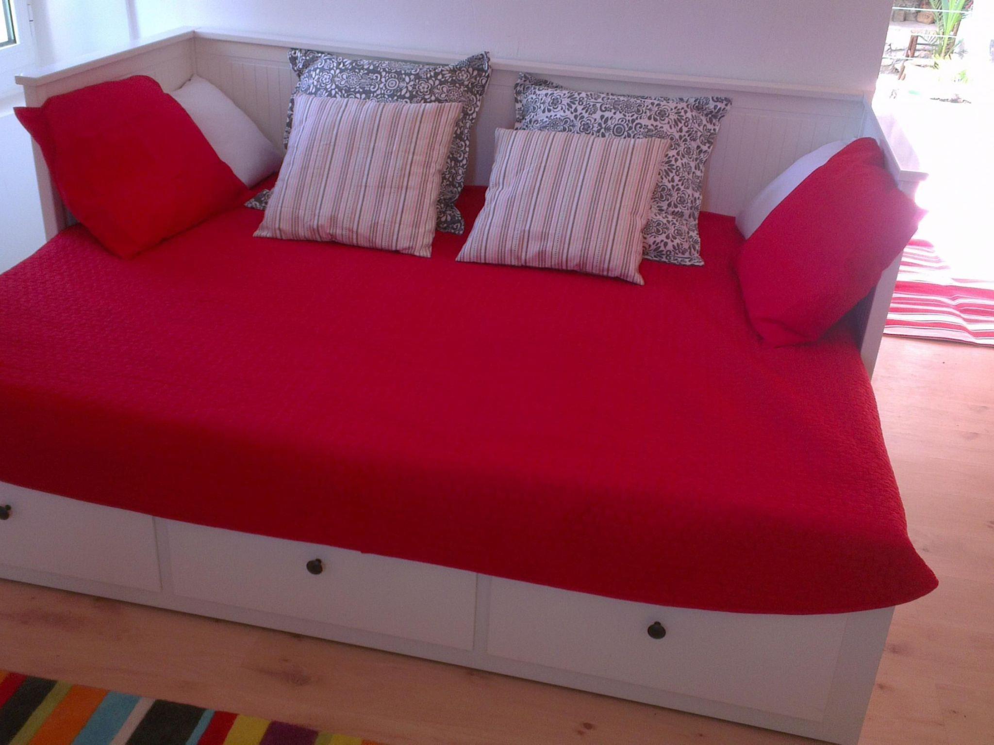 The renovation of the 50m² house was carried out in a "one-volume style", in order to make it as big, modern and comfortable as possible. It is basically one big room with a gallery that has a double bed measuring 160 x 200cm. Below there is a relatively big bathroom with a shower, washbasin, WC and washing machine. There is a cooking niche integrated into the living room with many appliances (fridge, microwave, toaster, coffee machine…), a full set of crockery, and a dining table with chairs. The living room also provides a fold-out double sofa bed (200 x 160cm) and, if required, a supplementary bed can be provided. The house is best suited to a family or a smaller group of four or a maximum of five guests.