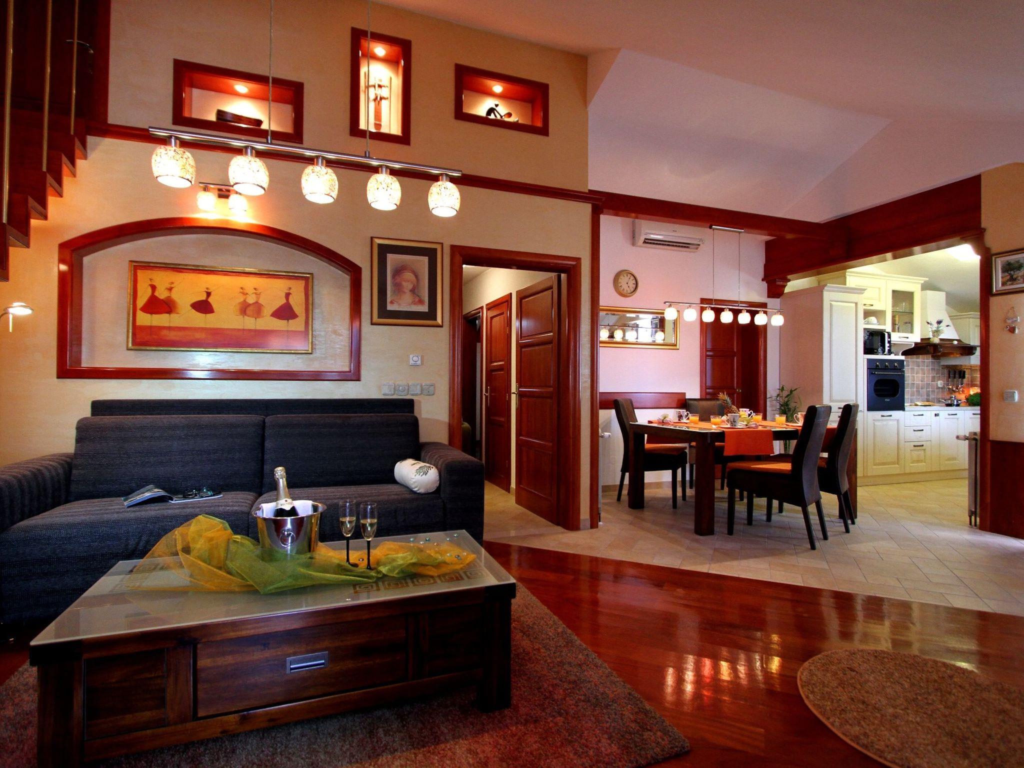 Living room: Pull-out sofa, LCD SAT/TV, Wi-Fi, air conditioning
