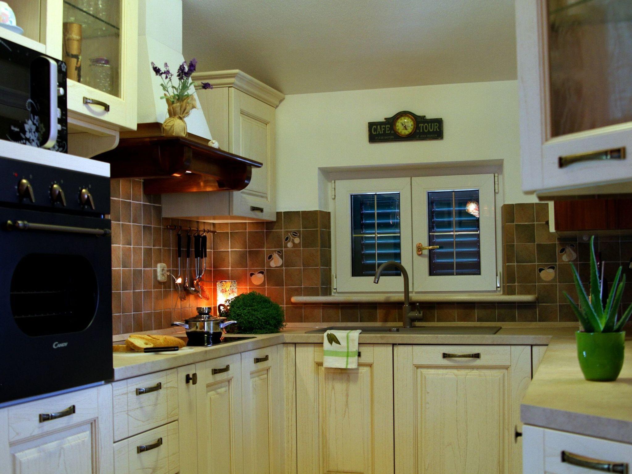 Superbly equipped 90 m² apartment is situated on the top floor of the renovated Dalmatian stone house, and provides an accommodation of special ambience. It can accommodate 4-5 persons and includes two bedrooms, living area with kitchen and dining room, bathroom and two terraces with breathtaking sea view.