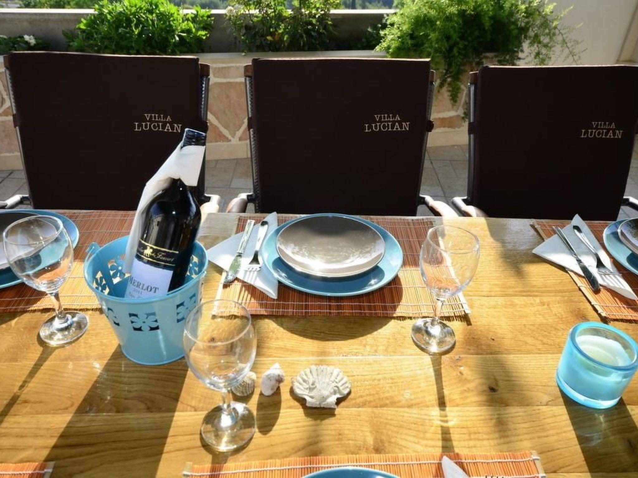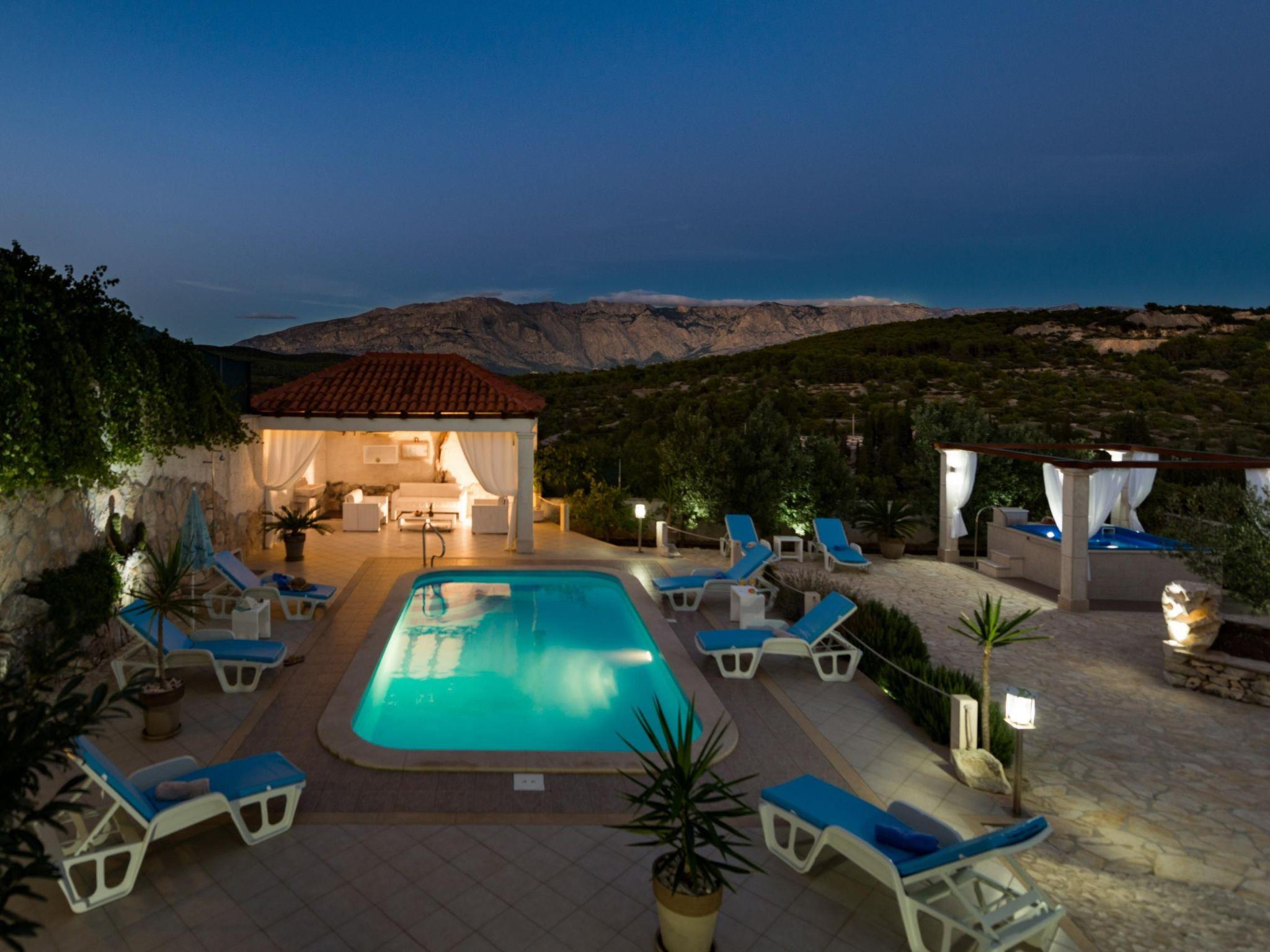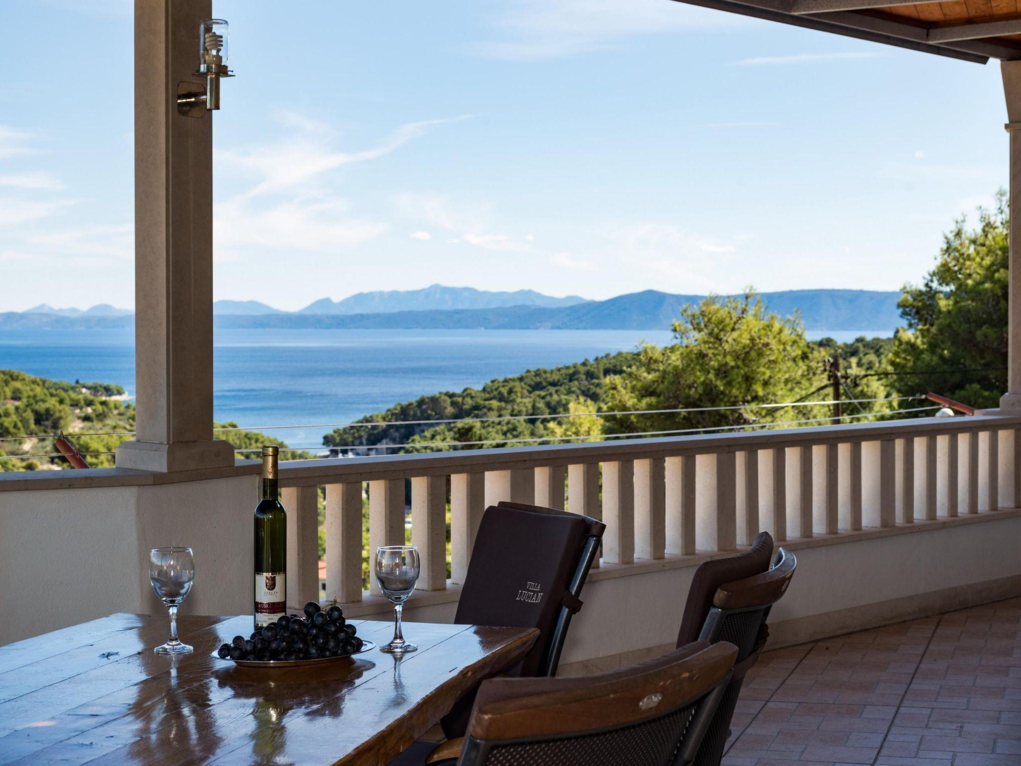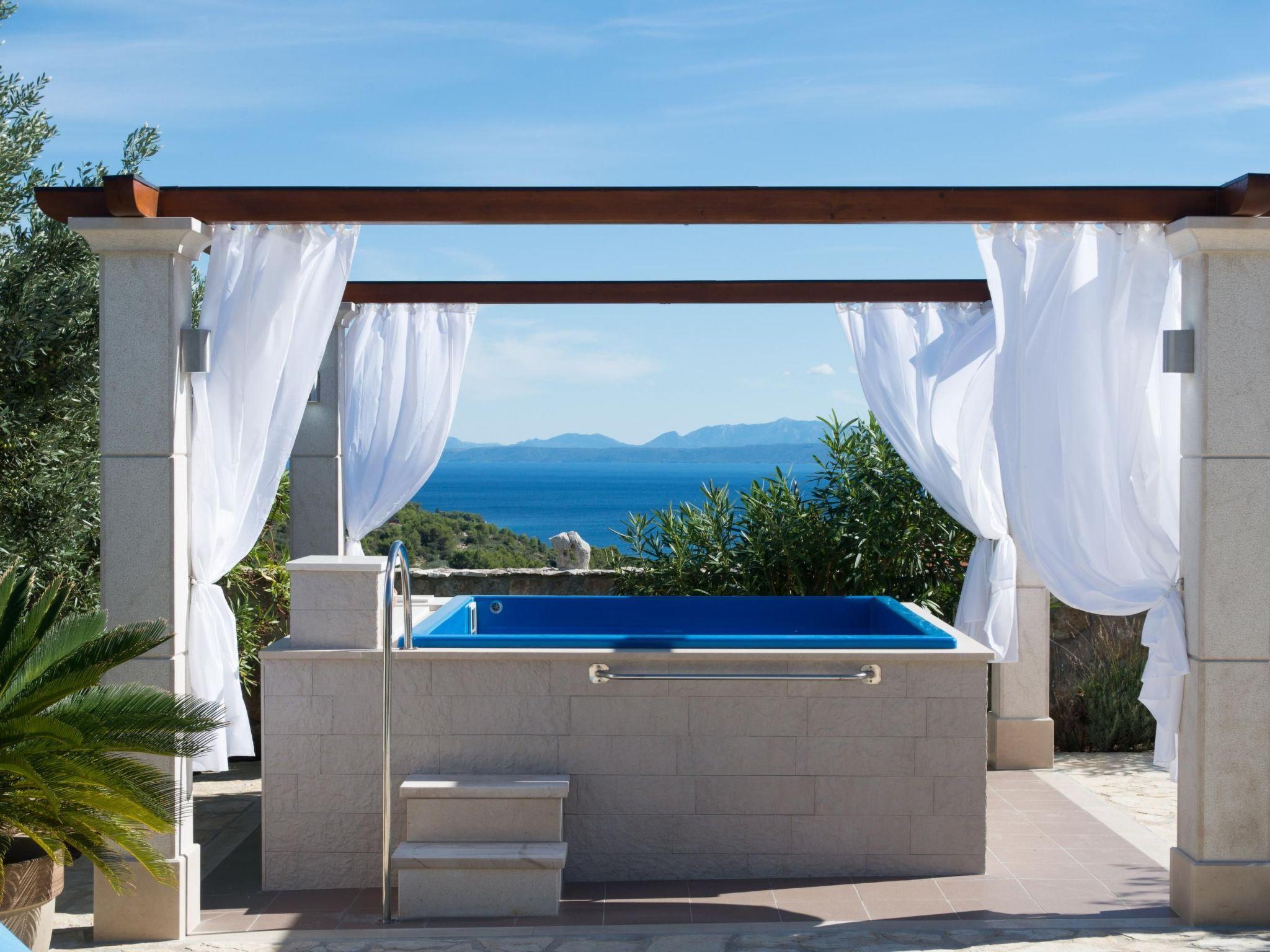 Another highlight of this villa is the generous outdoor area. It offers absolute privacy. The garden and the terrace afford a fabulous view of the mountains and the Sumartin bay. Make yourselves comfortable on the deckchairs by the pool or relax in the whirlpool. Next to the pool there is a furnished gazebo and there is also an outdoor shower. There is a grill area for sociable grill evenings with family and friends. There are five car parking spaces right by the house.