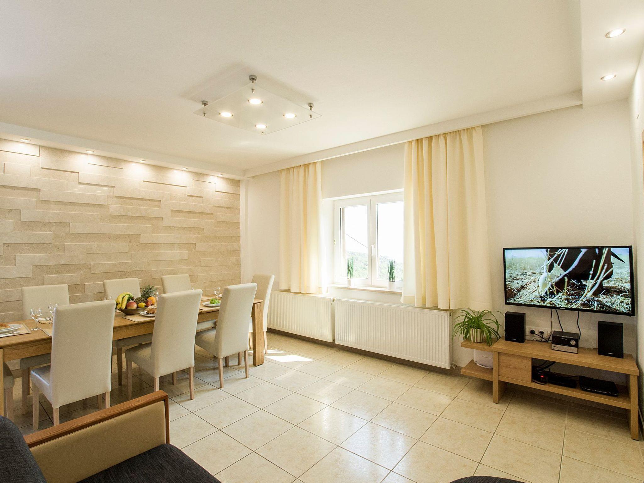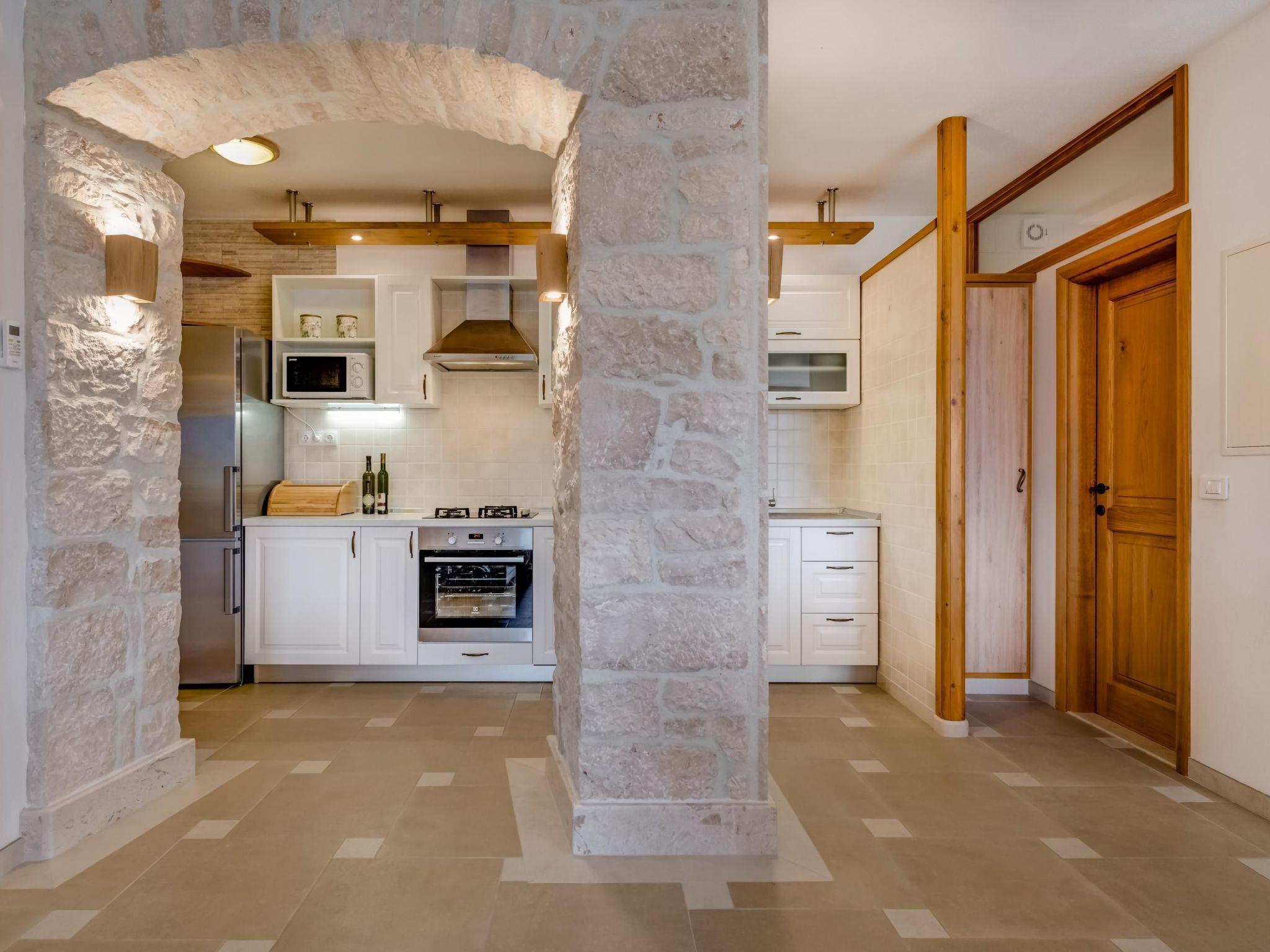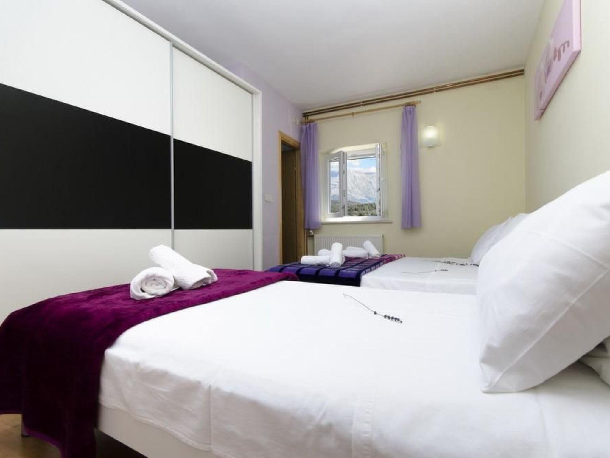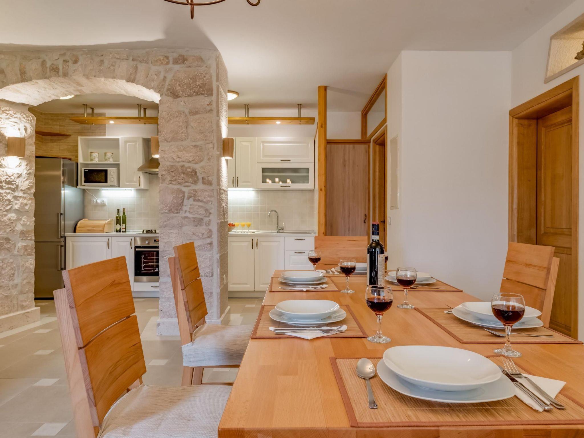 Another highlight of this villa is the generous outdoor area. It offers absolute privacy. The garden and the terrace afford a fabulous view of the mountains and the Sumartin bay. Make yourselves comfortable on the deckchairs by the pool or relax in the whirlpool. Next to the pool there is a furnished gazebo and there is also an outdoor shower. There is a grill area for sociable grill evenings with family and friends. There are five car parking spaces right by the house.