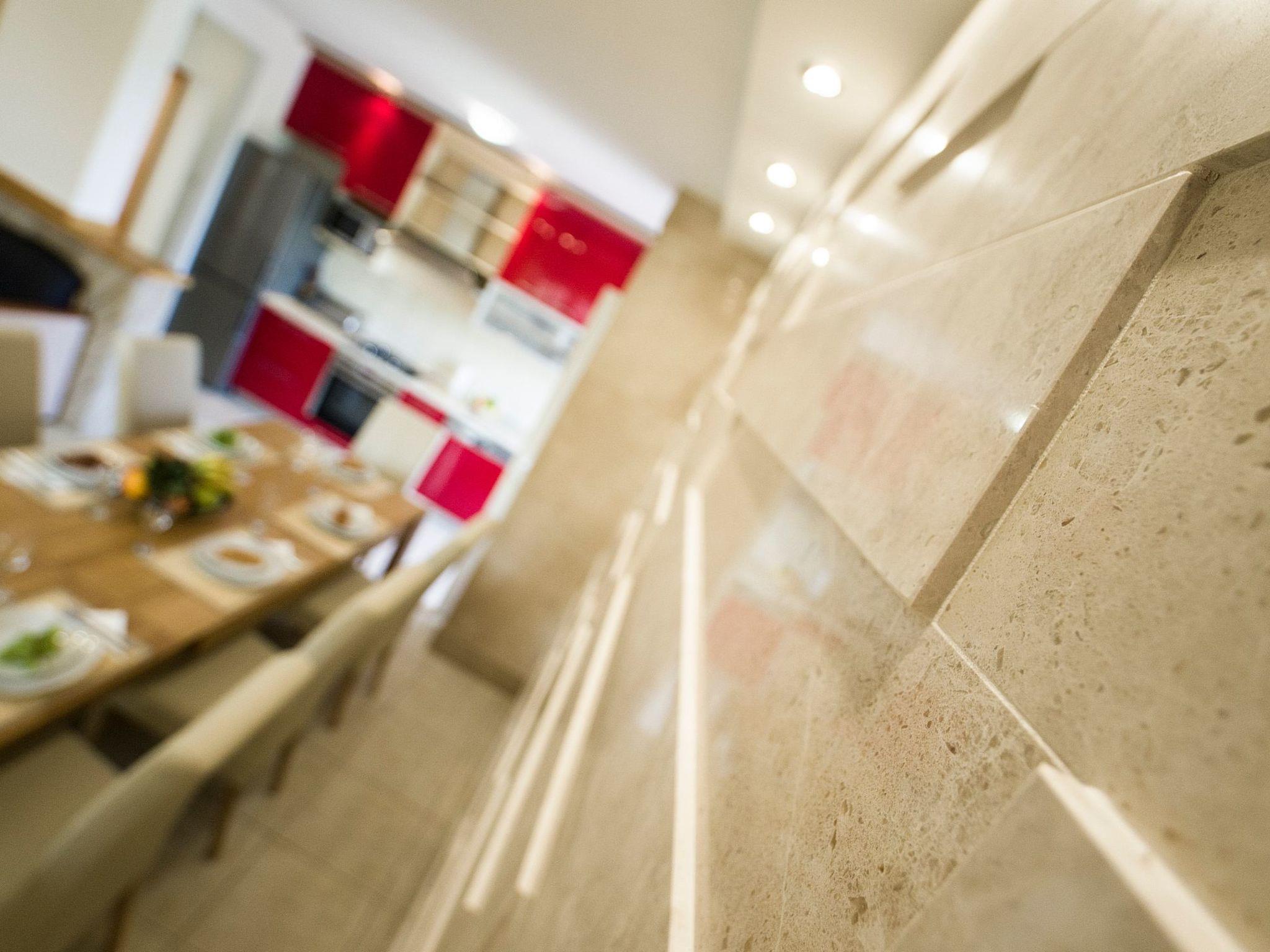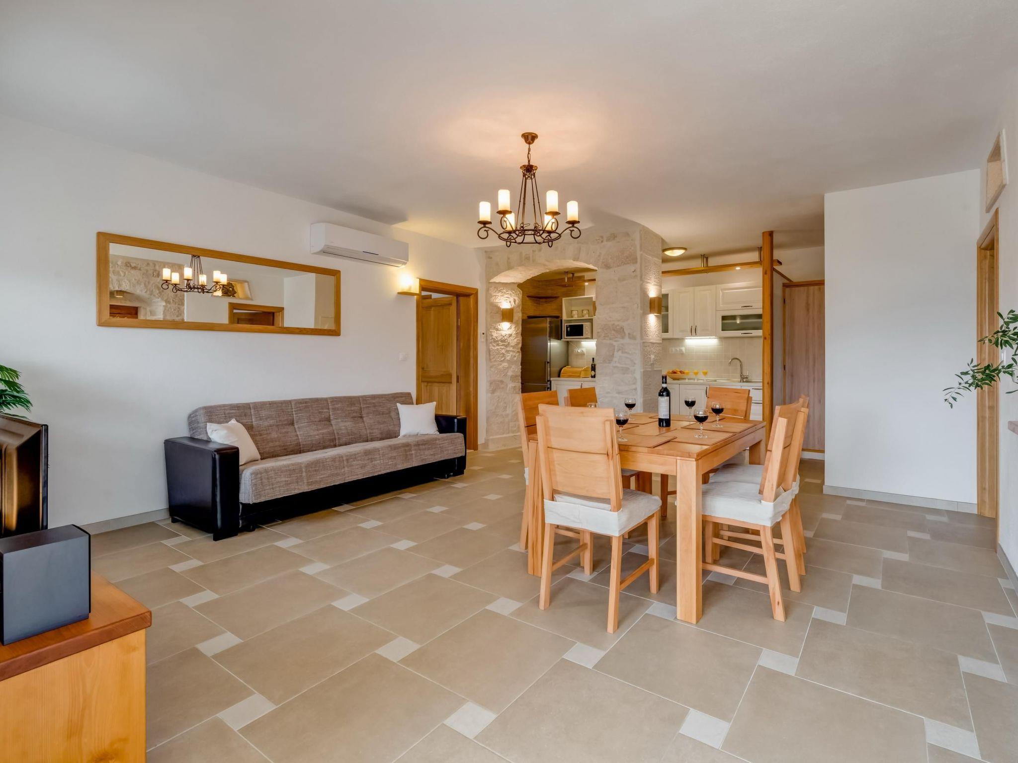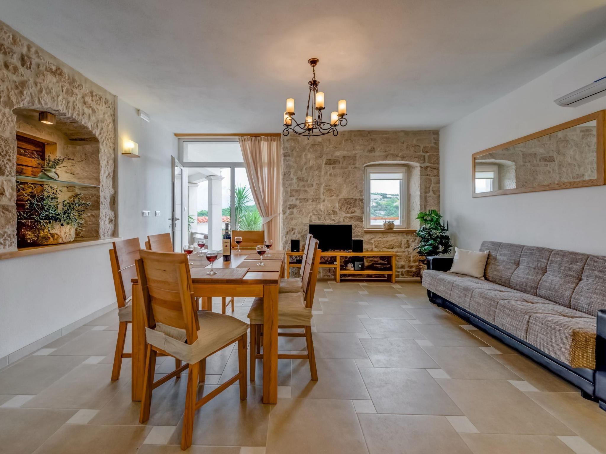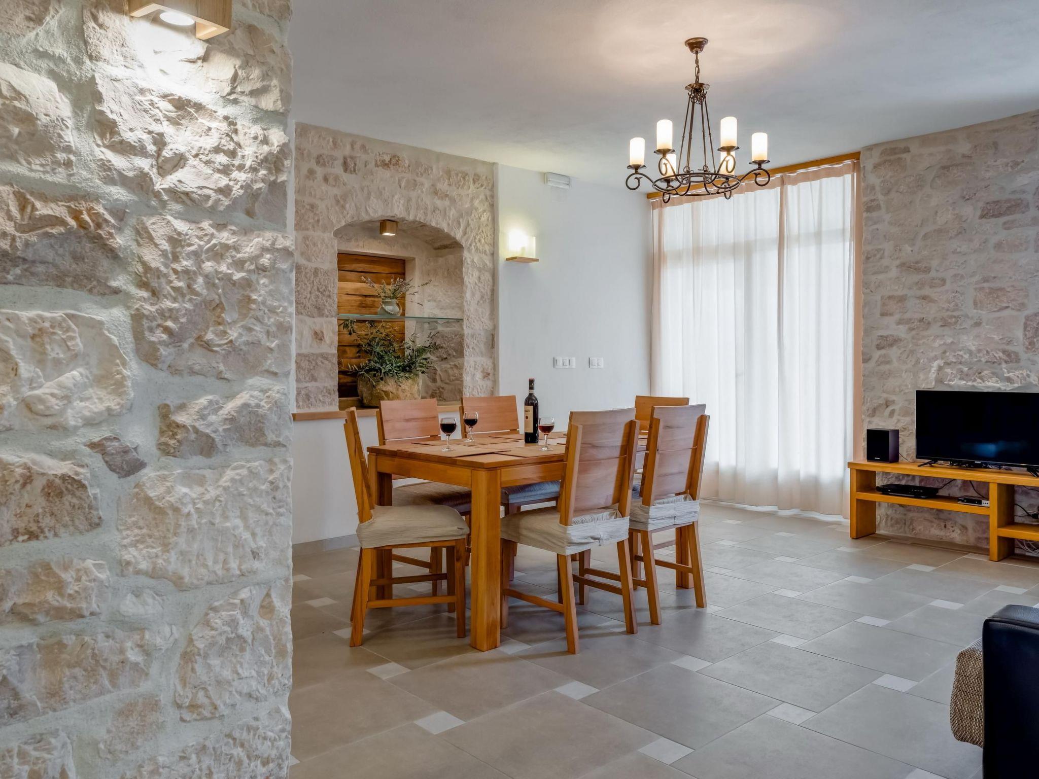 Another highlight of this villa is the generous outdoor area. It offers absolute privacy. The garden and the terrace afford a fabulous view of the mountains and the Sumartin bay. Make yourselves comfortable on the deckchairs by the pool or relax in the whirlpool. Next to the pool there is a furnished gazebo and there is also an outdoor shower. There is a grill area for sociable grill evenings with family and friends. There are five car parking spaces right by the house.