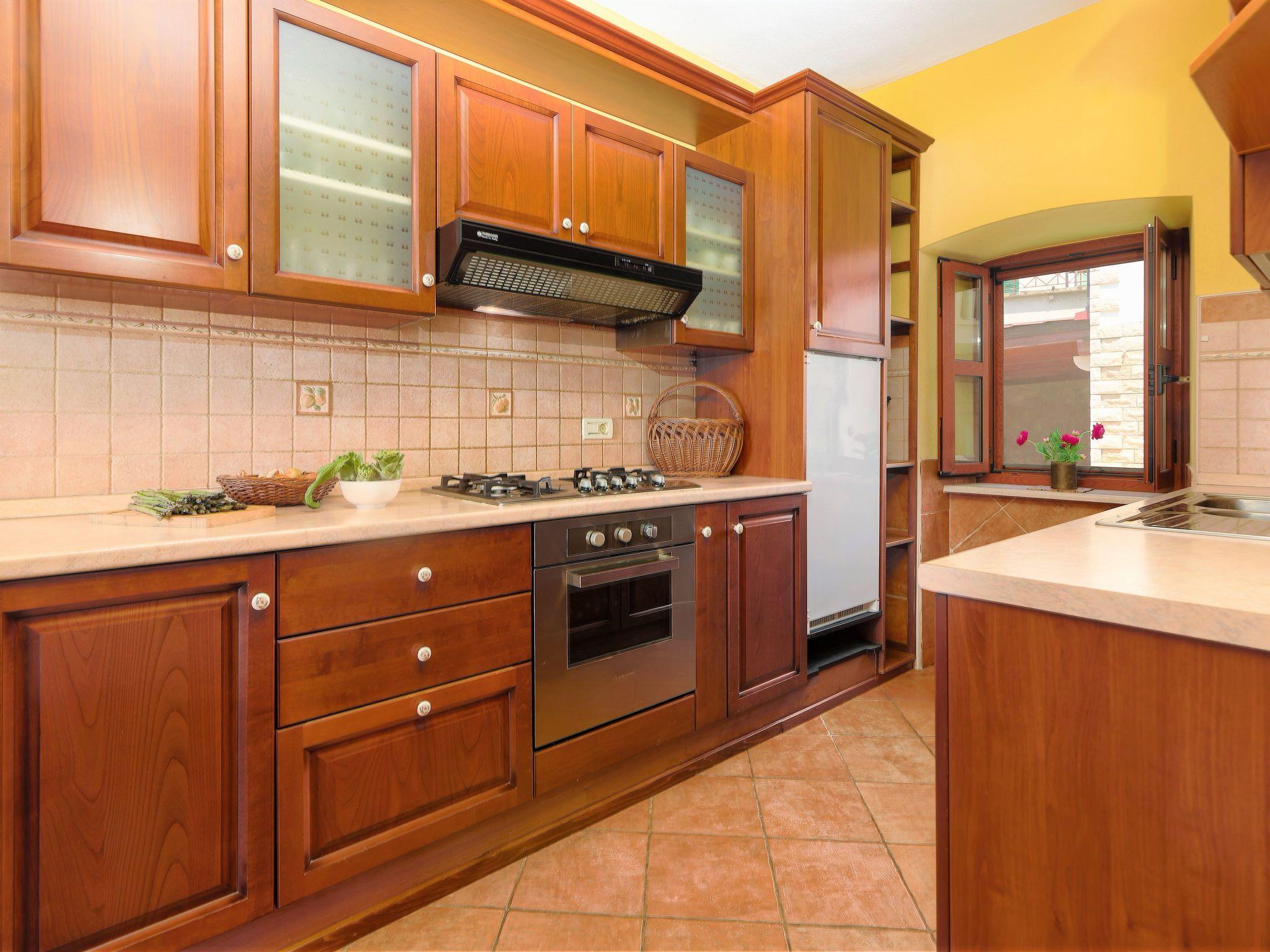 Outside, the charm of this holiday house continues. A private pool invites you to refresh and unwind in solitude, surrounded by the stunning backdrop of mountains, sea, and valley. The terraces, equipped with garden furniture and loungers, offer the perfect spot to relax and savor the outdoor beauty. The property is enclosed, making it a secure playground for children and offering peace of mind for guests without pets.