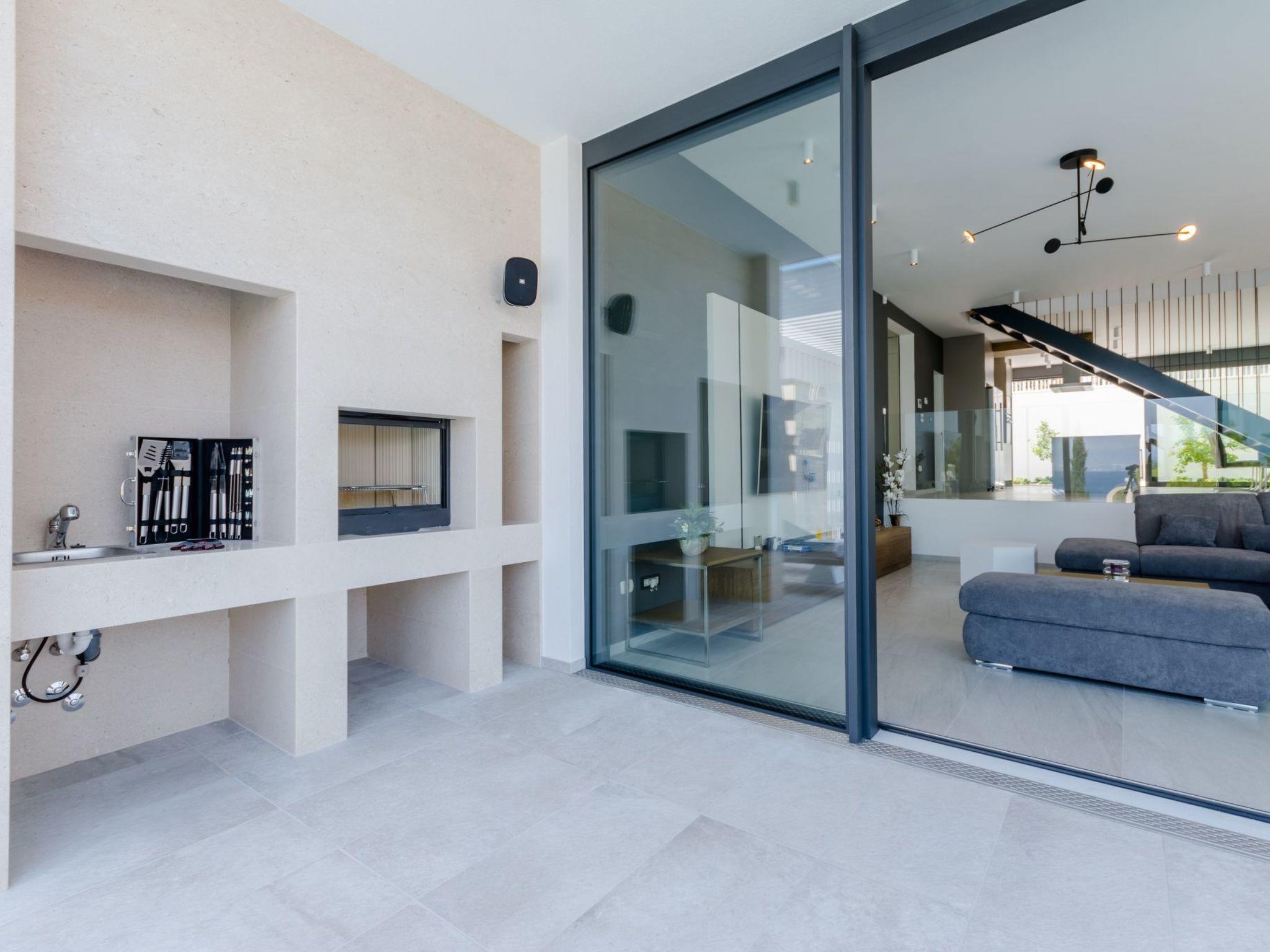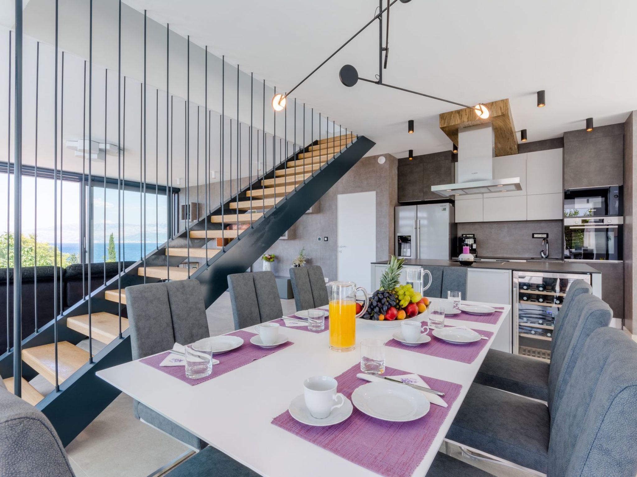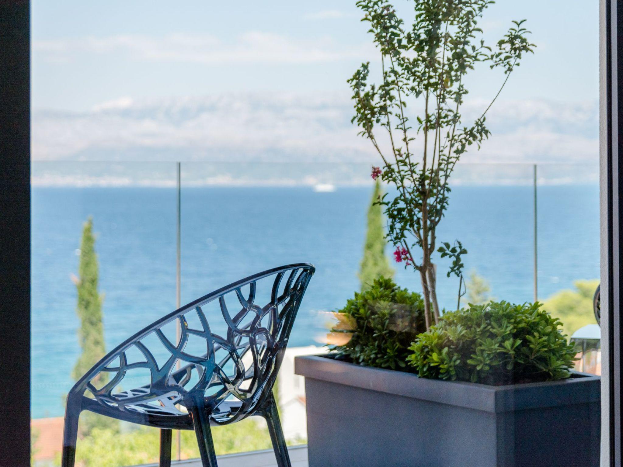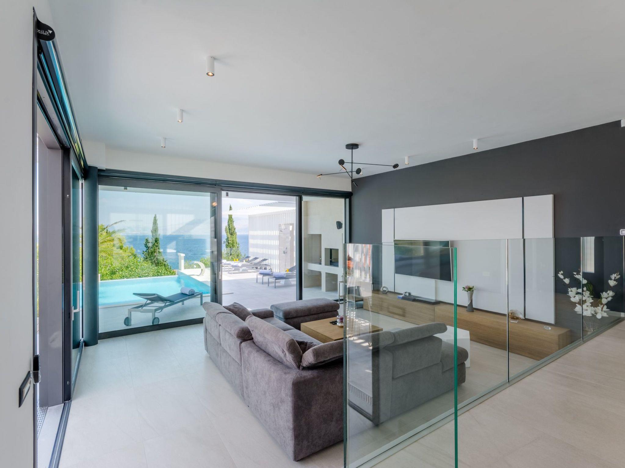 Our estate with a direct view of the Adriatic Sea was built in 2018 in compliance with cutting edge building standards, and it merges together state-of-the-art architecture and elegant luxury. You can observe the starry night sky from the seemingly edgeless heated infinity swimming pools, or enjoy the sunrise while having a delicious breakfast on one of our spacious terraces. Our stylishly furnished 620 m2 villa complex offers you two fitness rooms, as well as two ping pong tables. Six exclusively furnished bedrooms with private bathrooms and king-size beds welcome you to dreamland. We also provide you with free high-speed wireless Internet, as well as with LED smart TVs in every bedroom and in the living room.