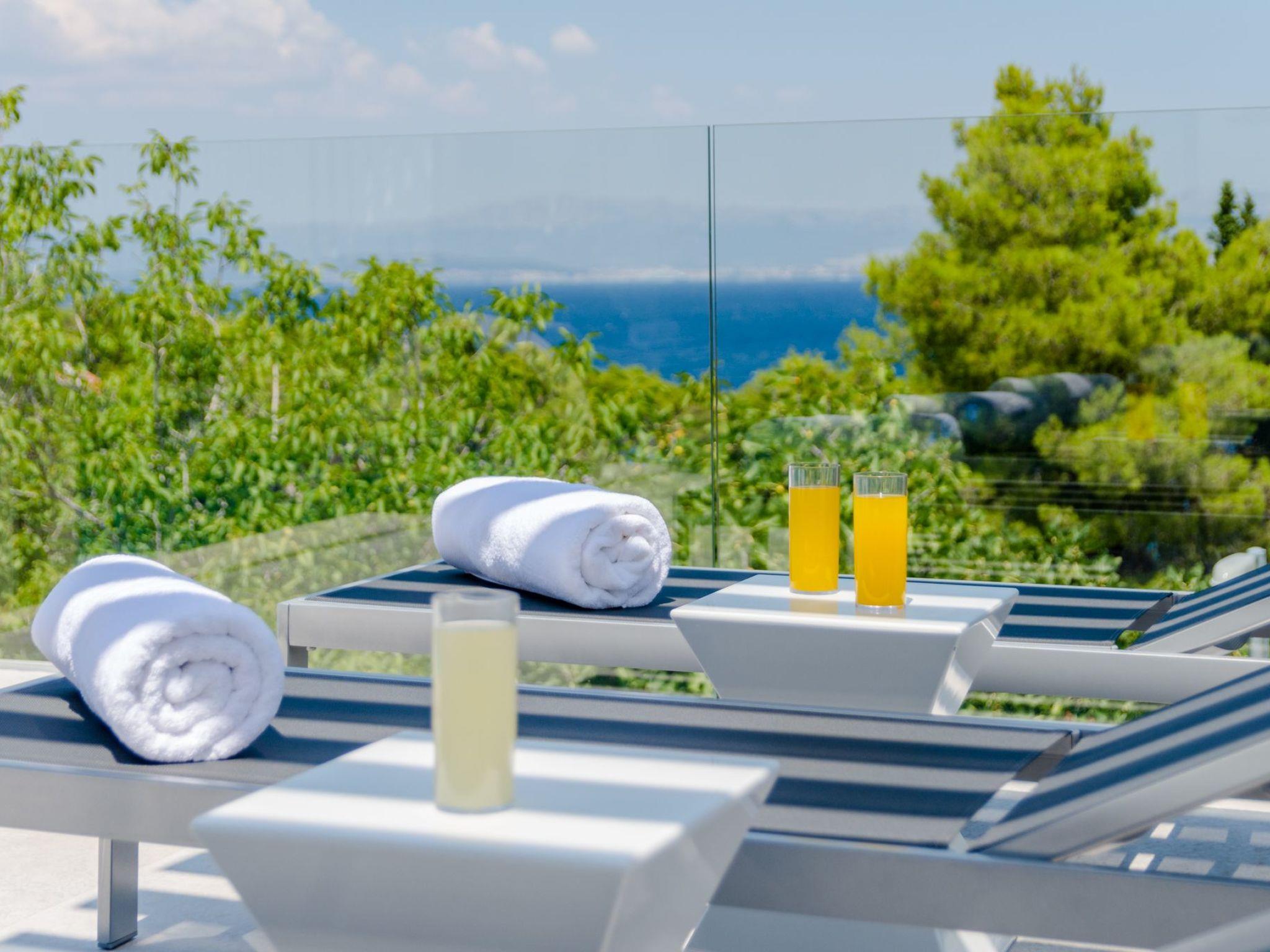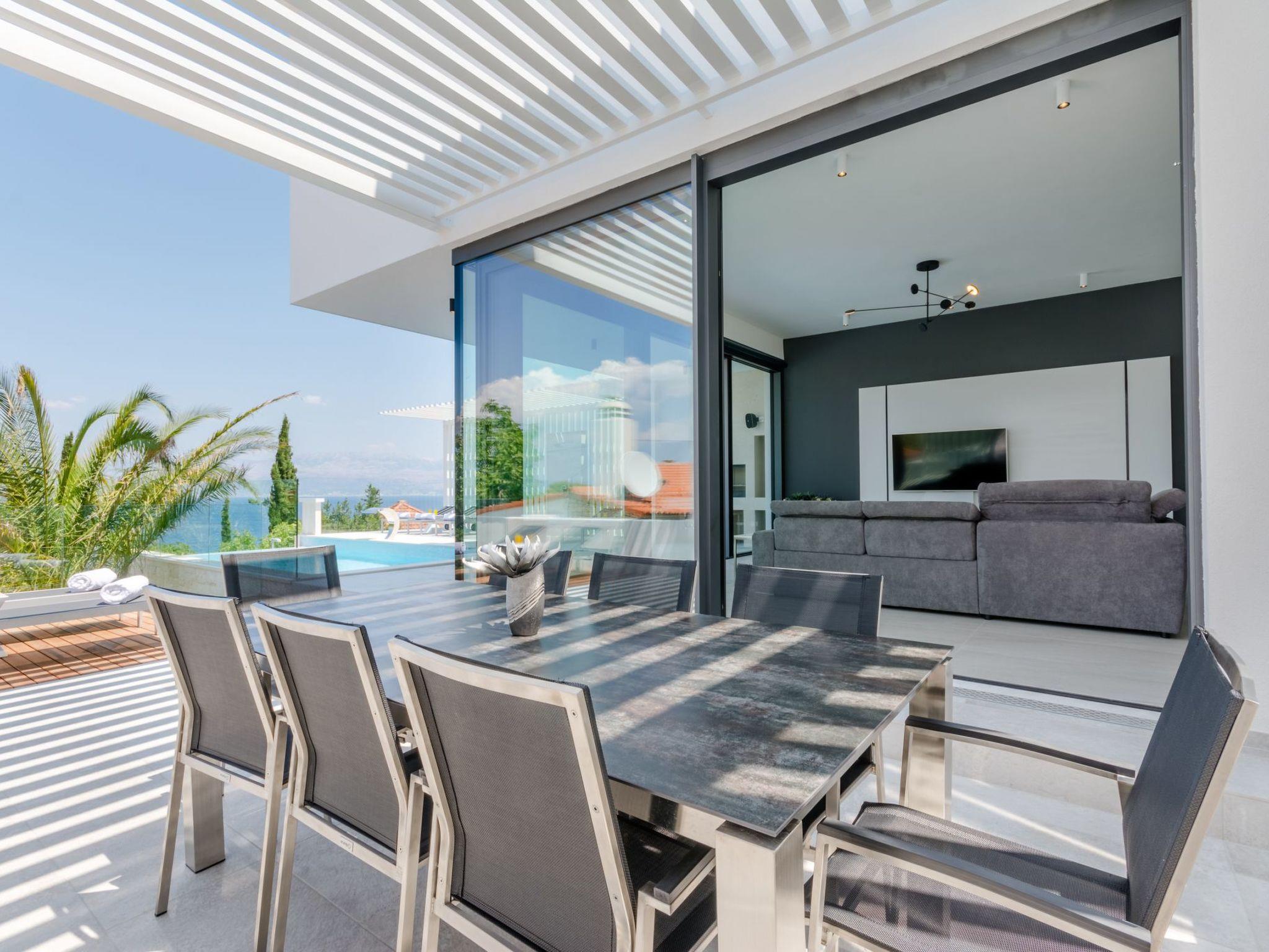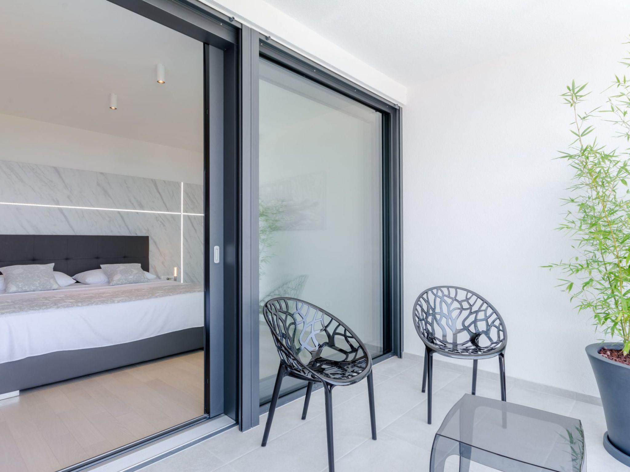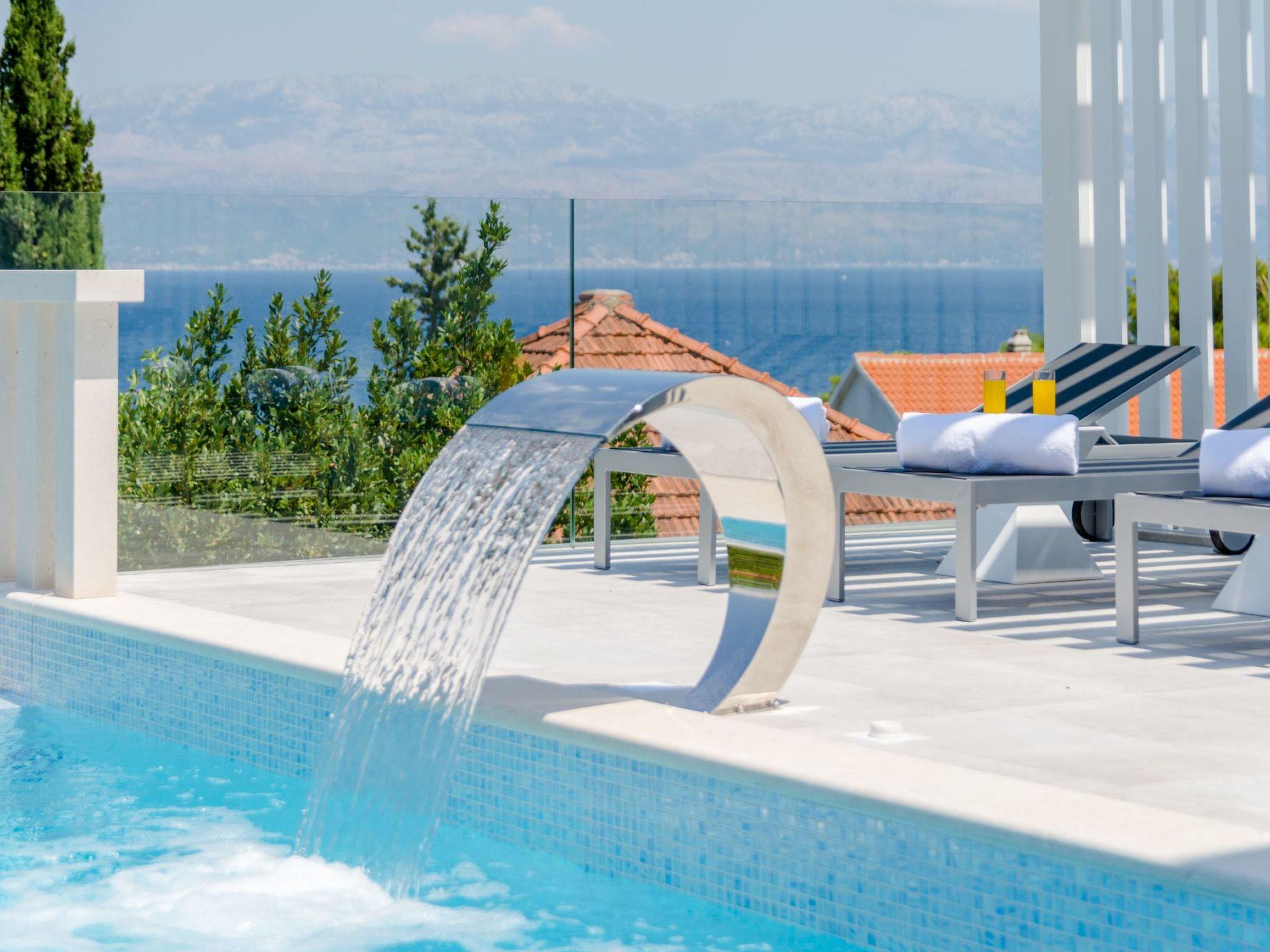 Our estate with a direct view of the Adriatic Sea was built in 2018 in compliance with cutting edge building standards, and it merges together state-of-the-art architecture and elegant luxury. You can observe the starry night sky from the seemingly edgeless heated infinity swimming pool, or enjoy the sunrise while having a delicious breakfast on the spacious terrace. Our stylishly furnished 320 m2 villa offers you a fitness room, as well as a ping pong table. Three exclusively furnished bedrooms with private bathrooms and king-size beds welcome you to dreamland. We also provide you with free high-speed wireless Internet, as well as with LED smart TVs in every bedroom and in the living room.