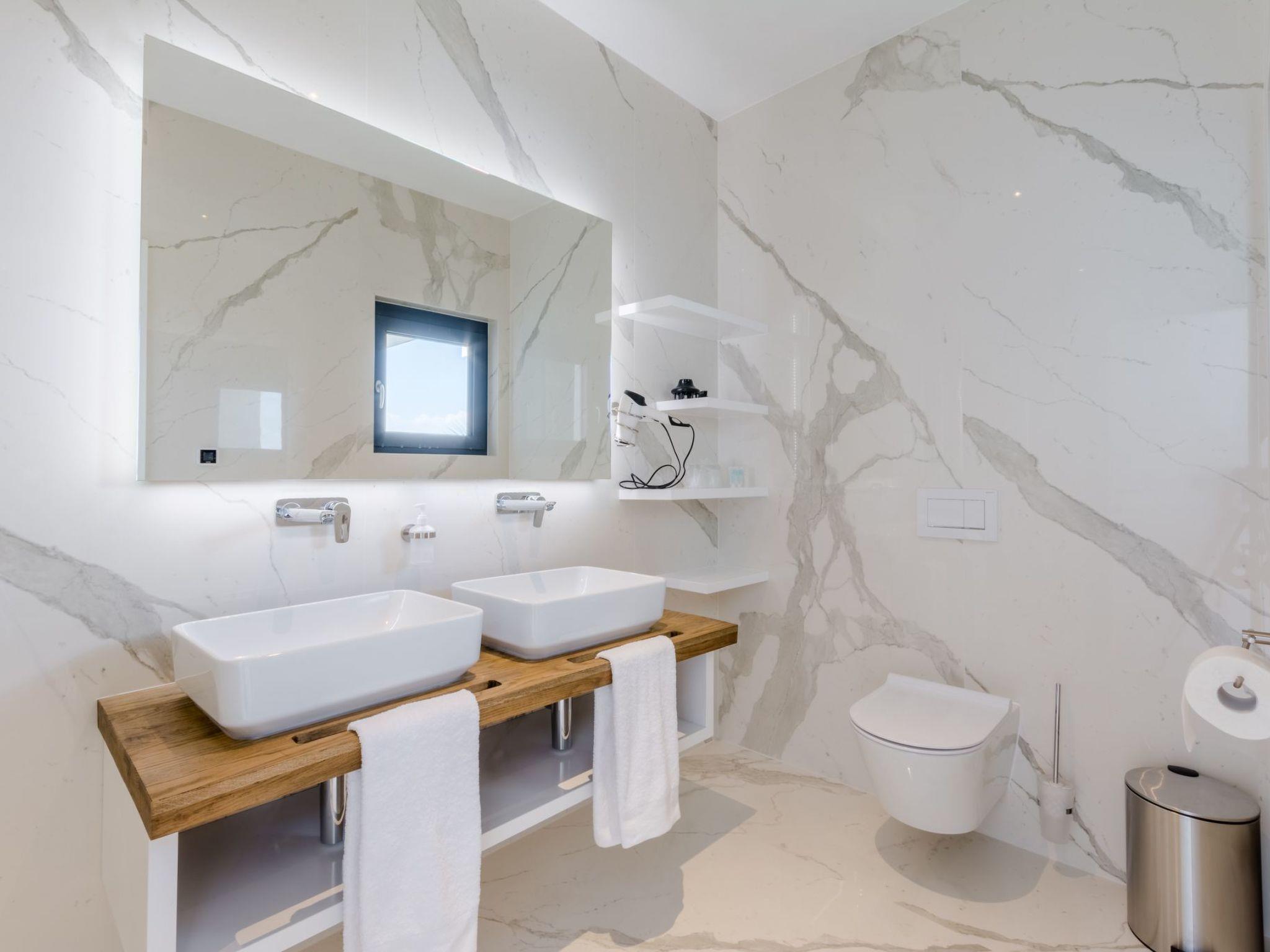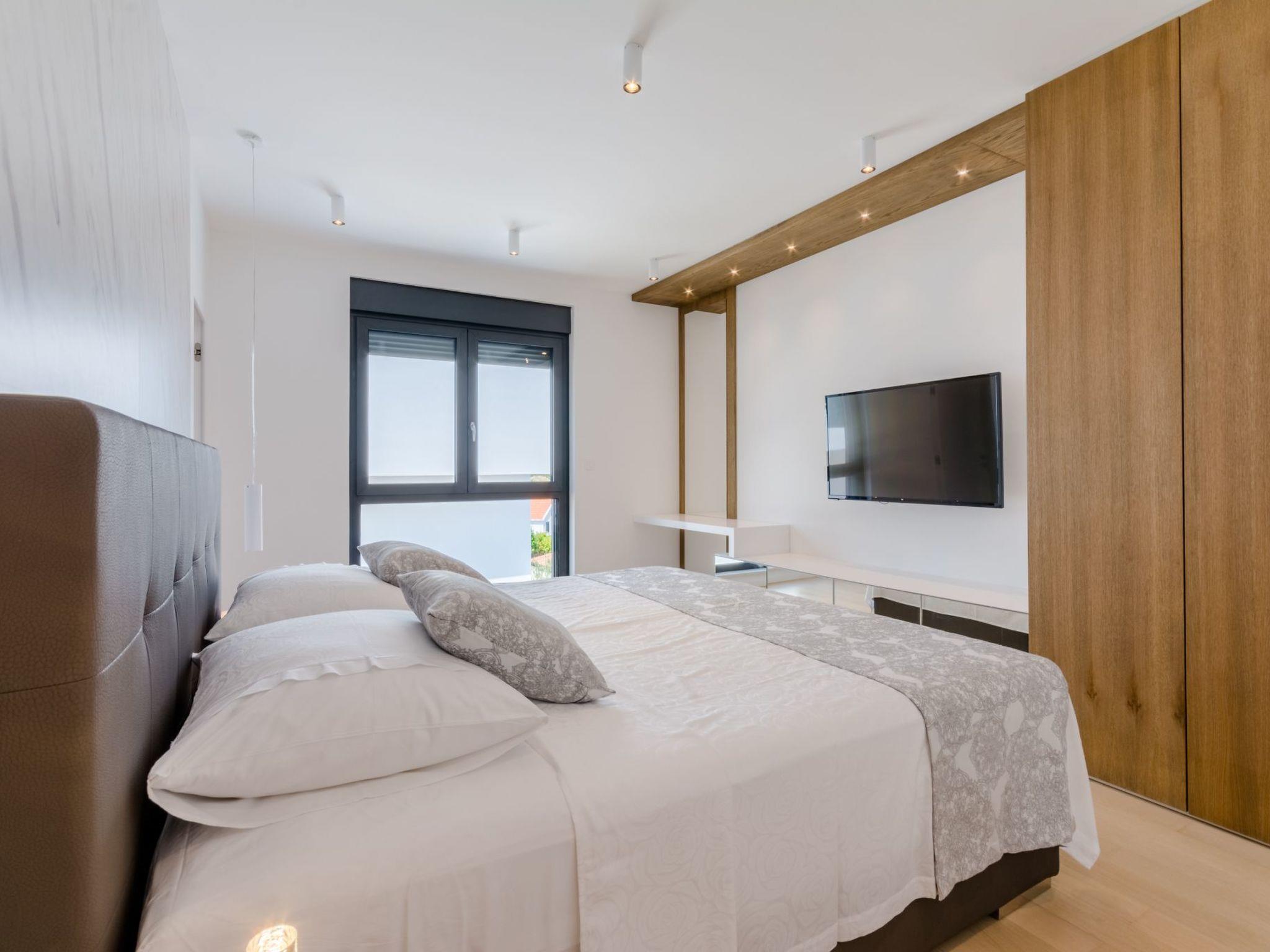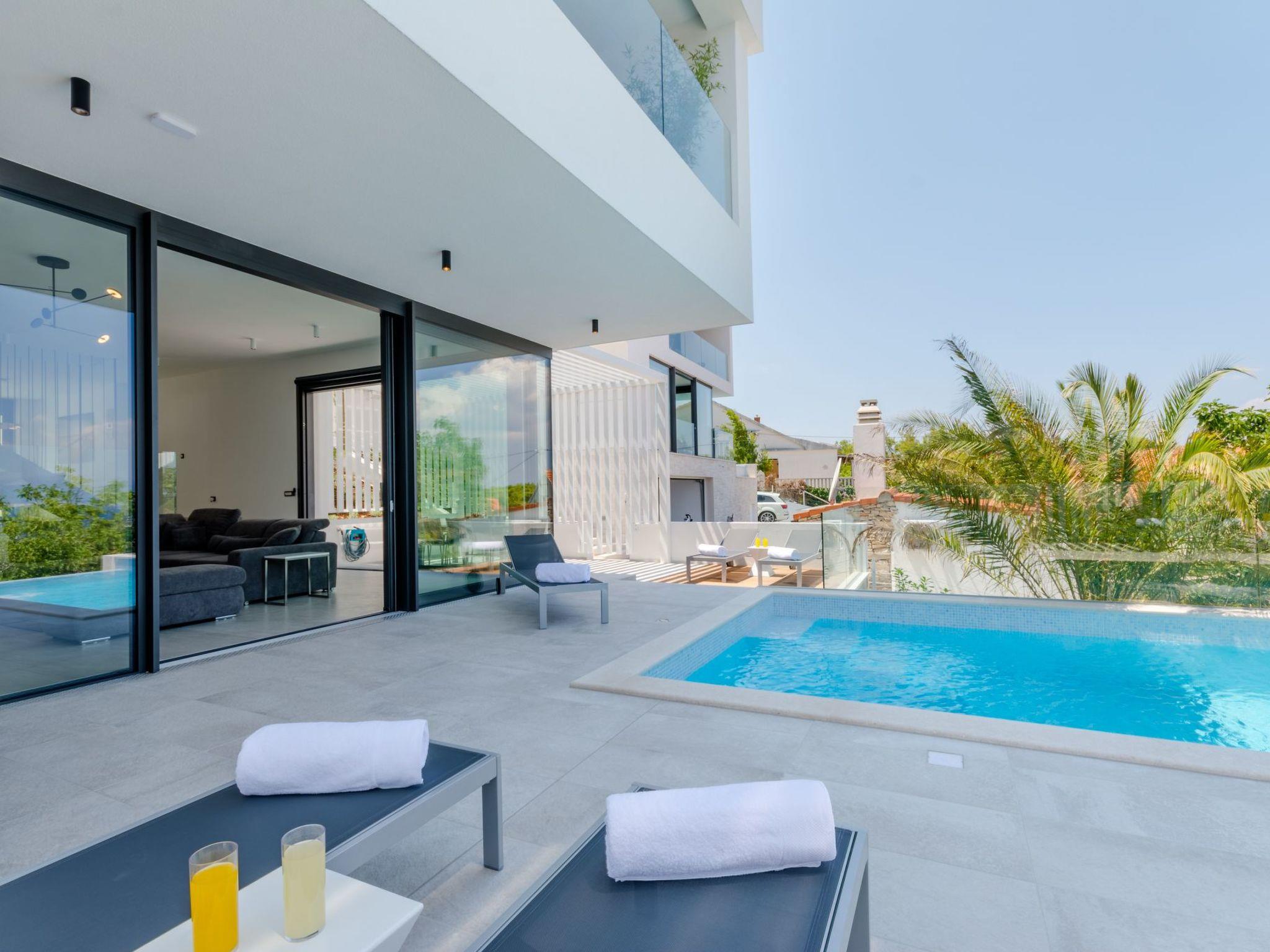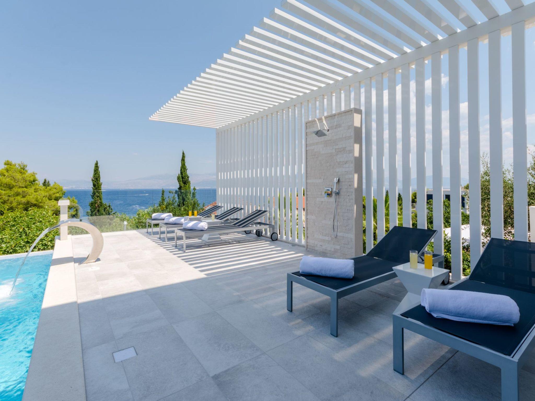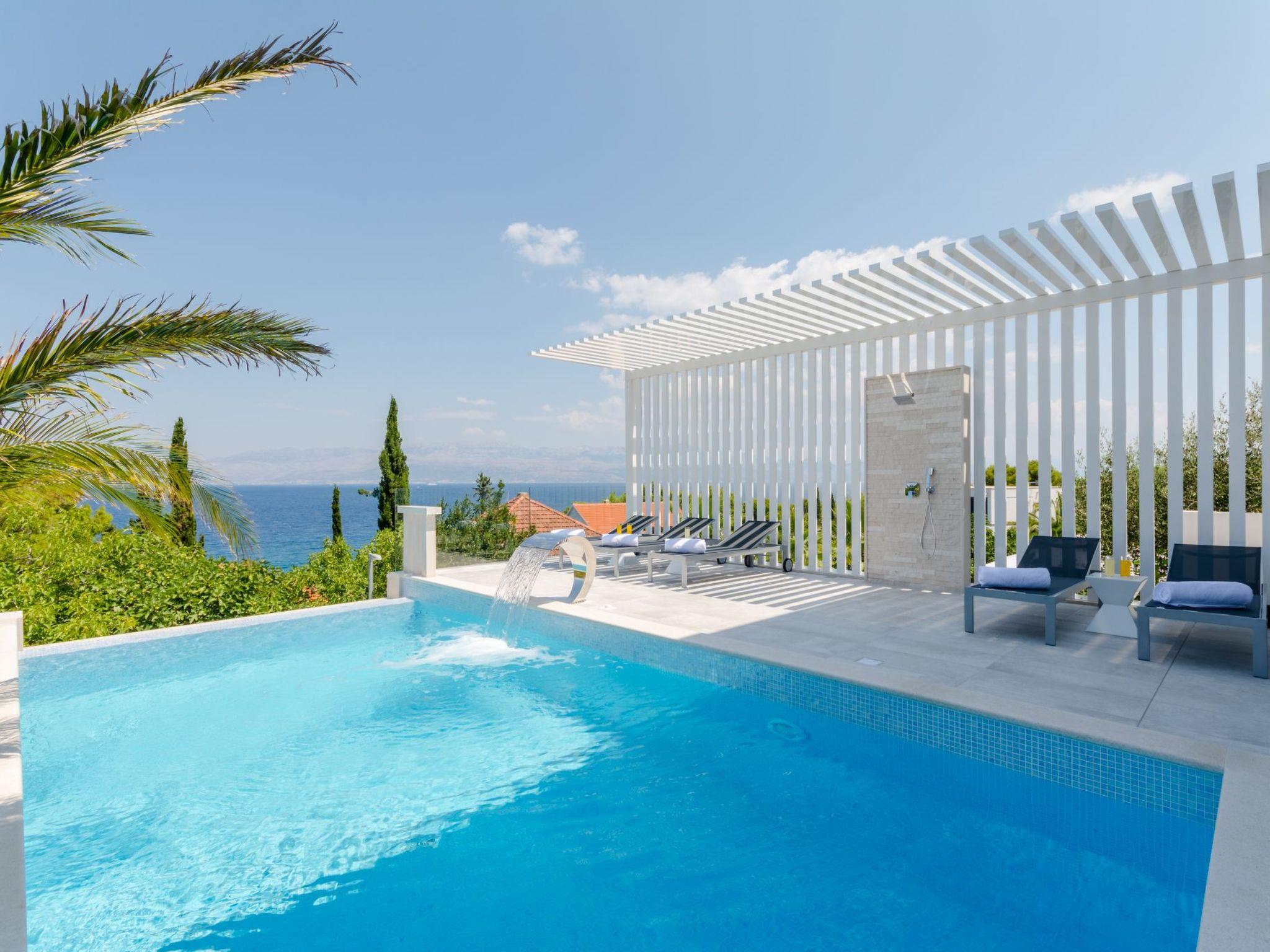 Our estate with a direct view of the Adriatic Sea was built in 2018 in compliance with cutting edge building standards, and it merges together state-of-the-art architecture and elegant luxury. You can observe the starry night sky from the seemingly edgeless heated infinity swimming pool, or enjoy the sunrise while having a delicious breakfast on the spacious terrace. Our stylishly furnished 320 m2 villa offers you a fitness room, as well as a ping pong table. Three exclusively furnished bedrooms with private bathrooms and king-size beds welcome you to dreamland. We also provide you with free high-speed wireless Internet, as well as with LED smart TVs in every bedroom and in the living room.