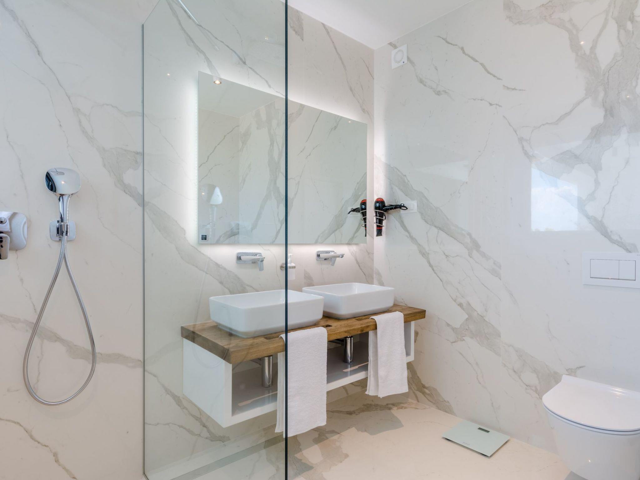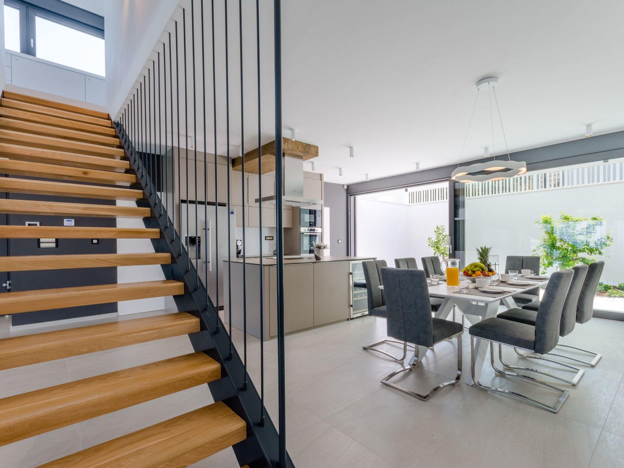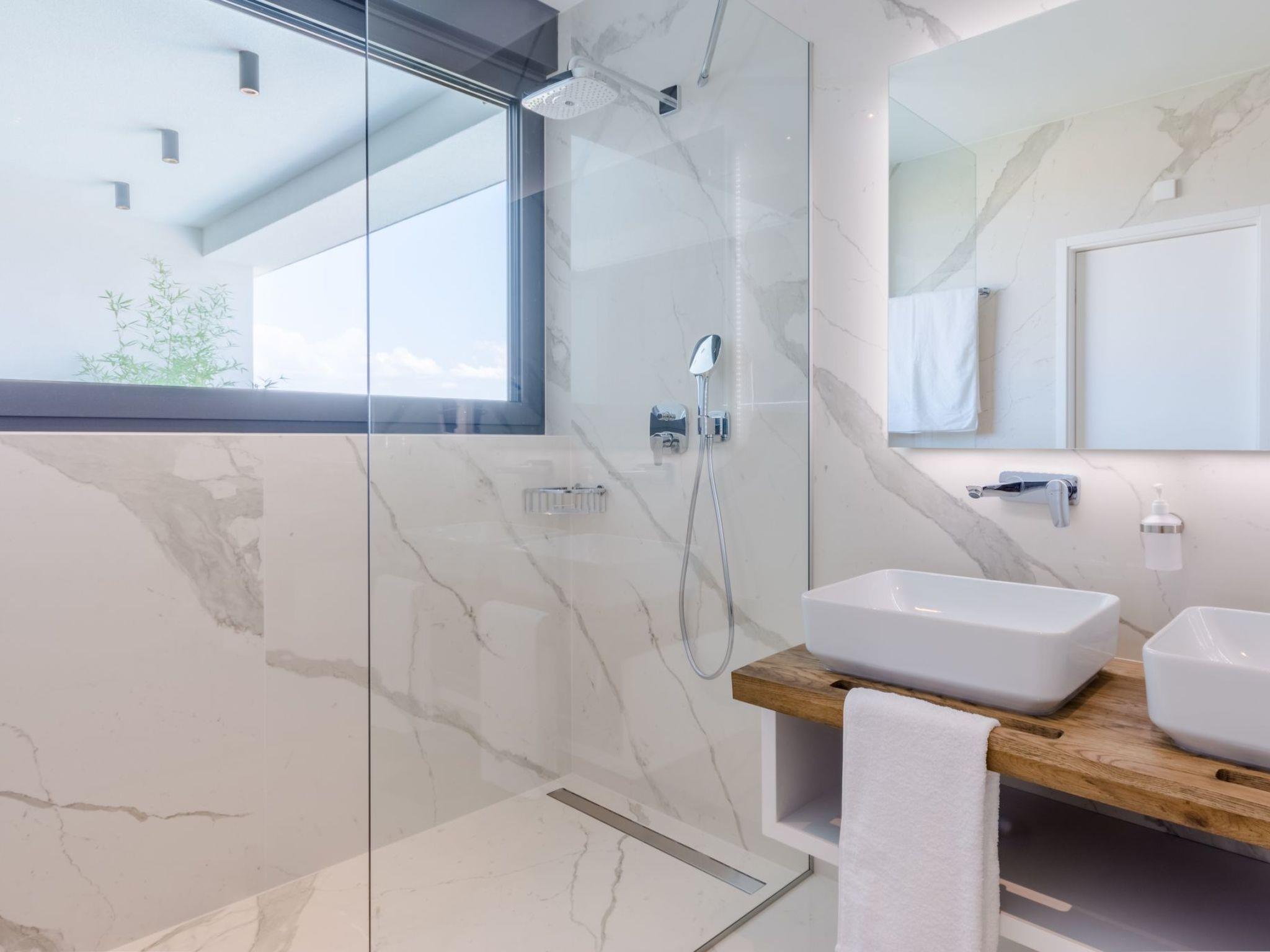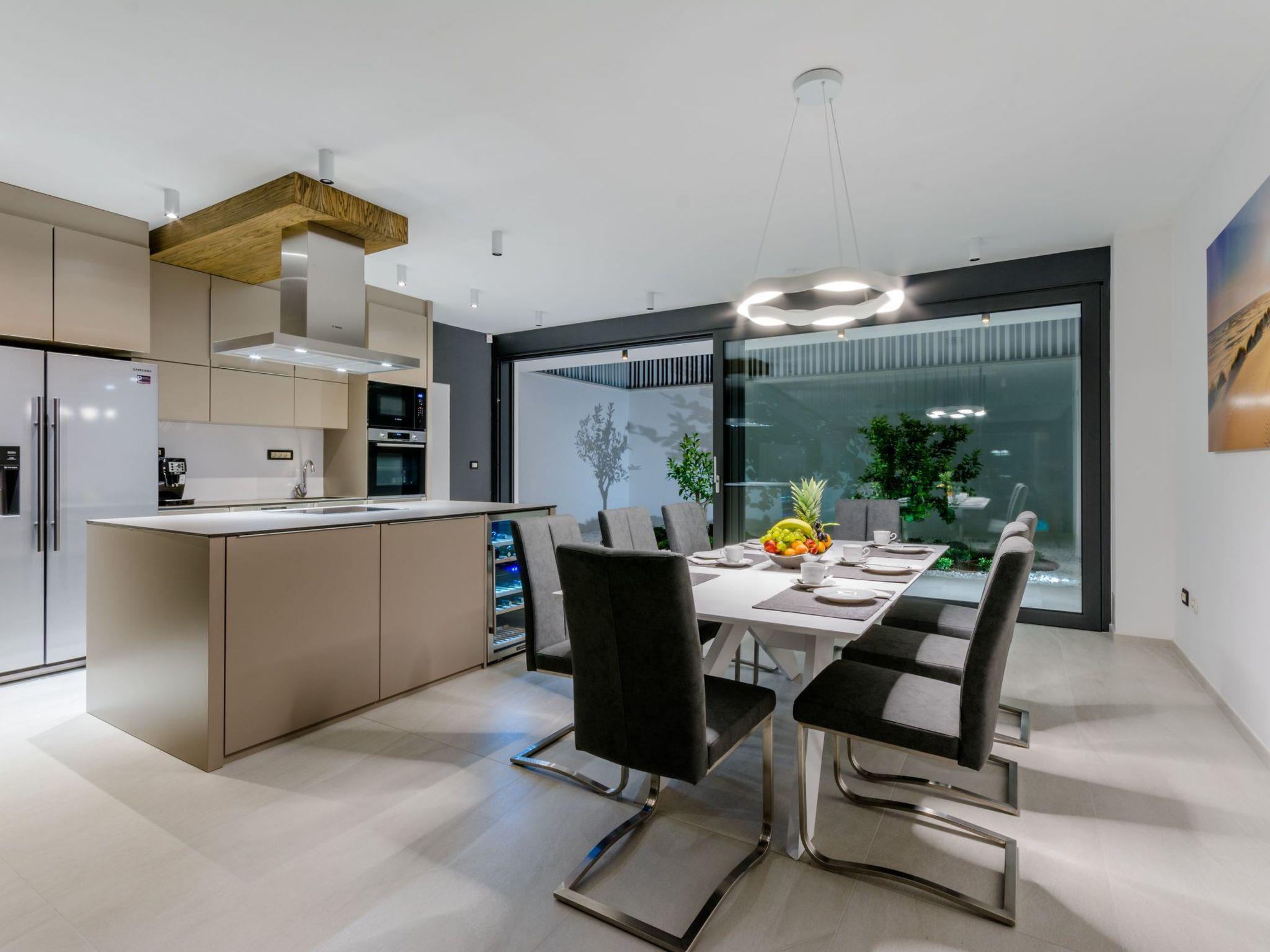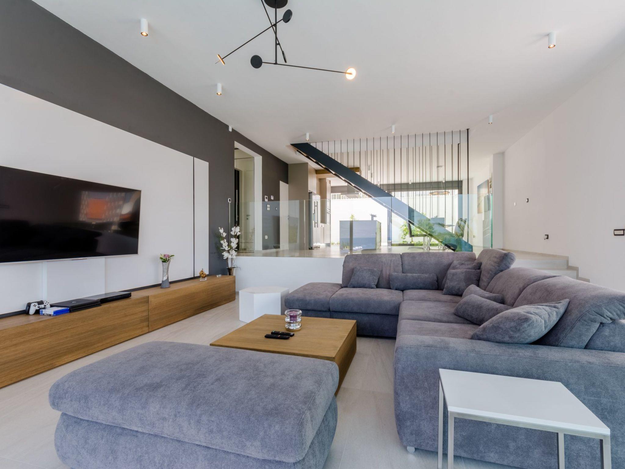 Our estate with a direct view of the Adriatic Sea was built in 2018 in compliance with cutting edge building standards, and it merges together state-of-the-art architecture and elegant luxury. You can observe the starry night sky from the seemingly edgeless heated infinity swimming pool, or enjoy the sunrise while having a delicious breakfast on the spacious terrace. Our stylishly furnished 320 m2 villa offers you a fitness room, as well as a ping pong table. Three exclusively furnished bedrooms with private bathrooms and king-size beds welcome you to dreamland. We also provide you with free high-speed wireless Internet, as well as with LED smart TVs in every bedroom and in the living room.
