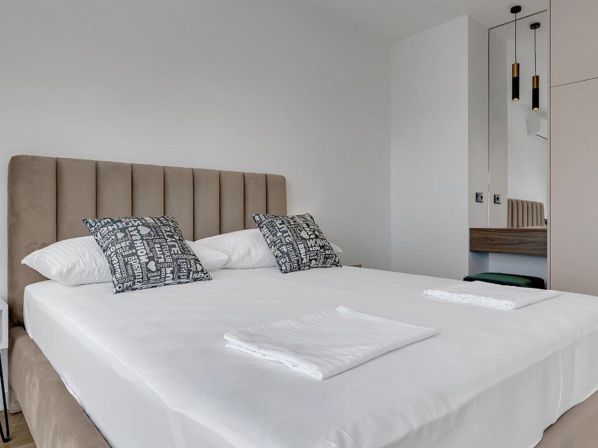 Inside, the flat offers an oasis of peace and relaxation. Each room is equipped with air conditioning to provide you with a comfortable indoor climate even on the hottest days. For your convenience, there is a fully equipped kitchen with high-quality appliances such as a dishwasher, oven, microwave, fridge, hob and kettle. The cosy sleeping ambience and an impeccably designed bathroom with a walk-in shower and hairdryer promise restful nights and a fresh start to the day.