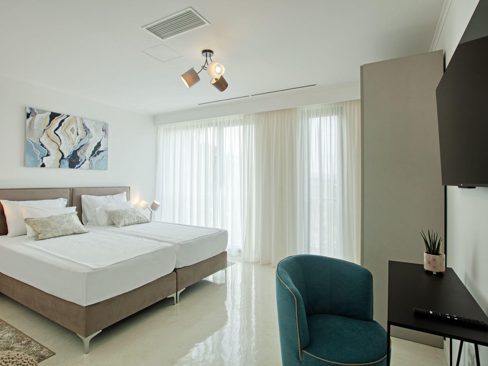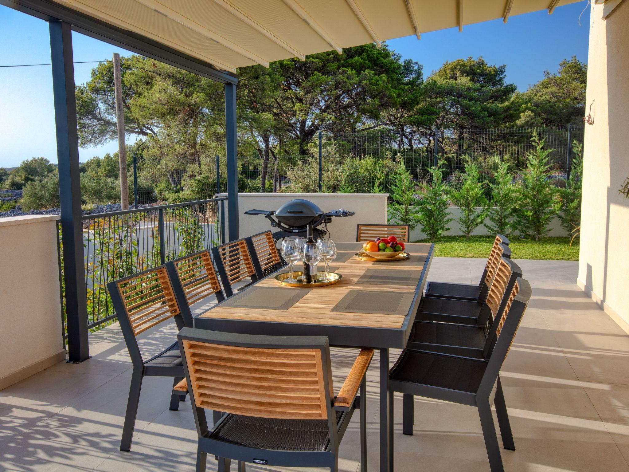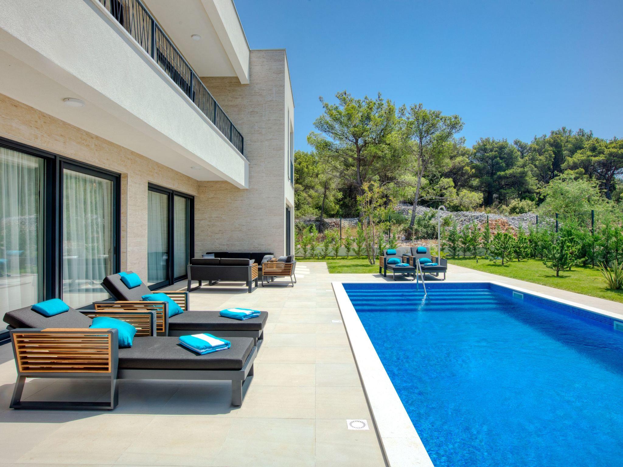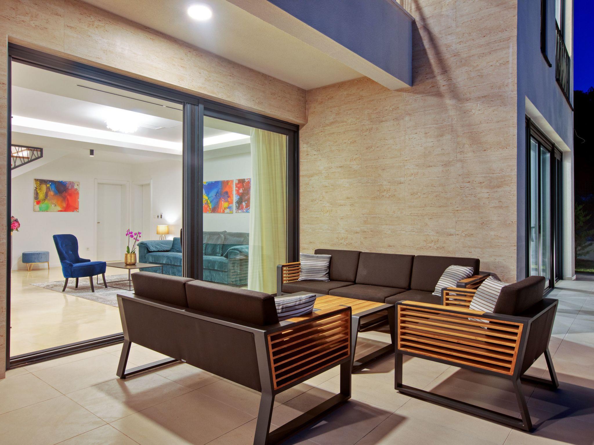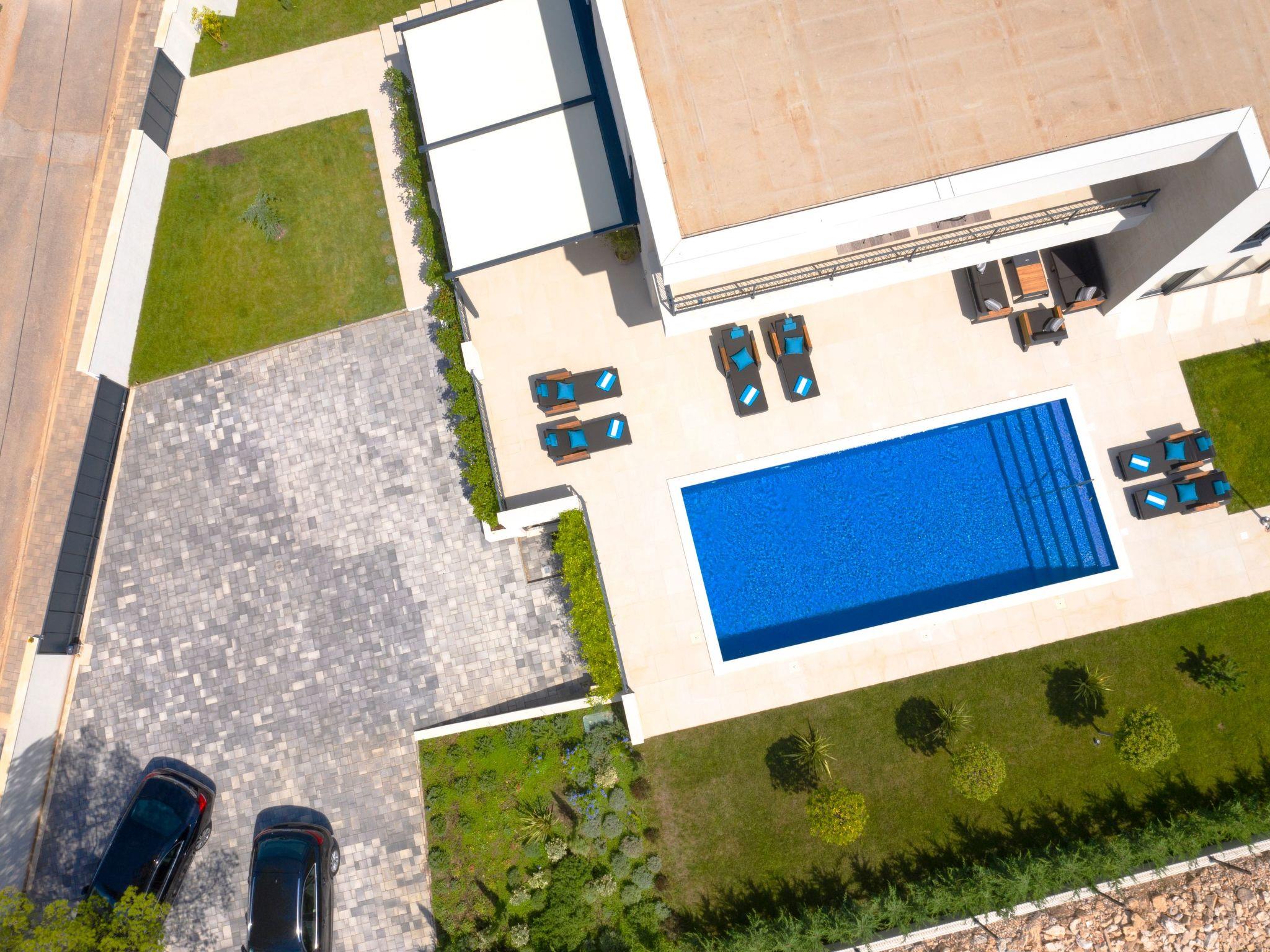 The villa is situated in a quiet area, perfect for admiring the Mediterranean surrounding. The yard is fully fenced, and the parking places are covered, so you do not have to worry about security. Garden furniture, sun loungers, and sun umbrellas are around the pool for you to enjoy the sun and relax!
