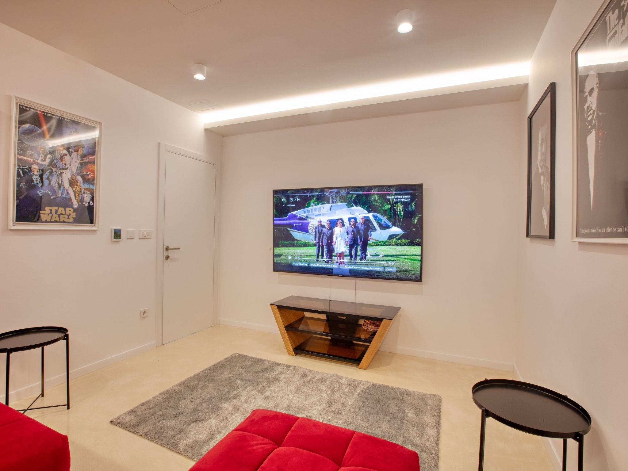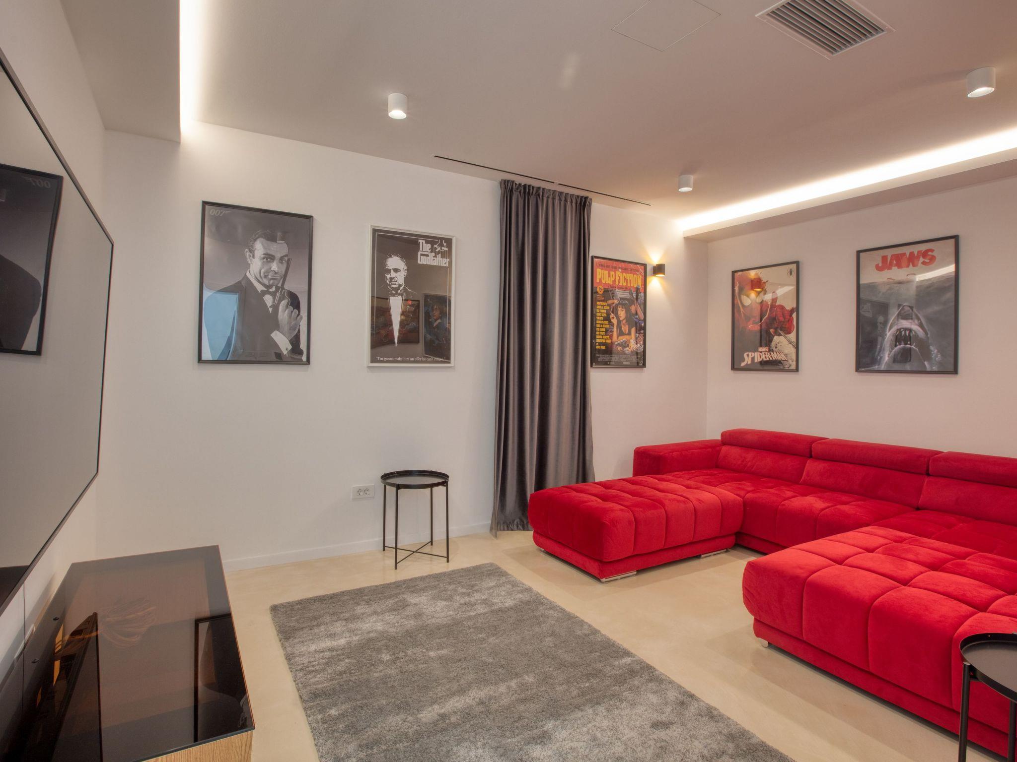 The Villa has 4 bedrooms and 5 bathrooms, perfect for 8 guests. The kitchen is fully equipped with everything one would need for a comfortable holiday, complete with an indoor dining area. The living room is perfect for entertaining friends and family, but a complete hit is the cinema!
