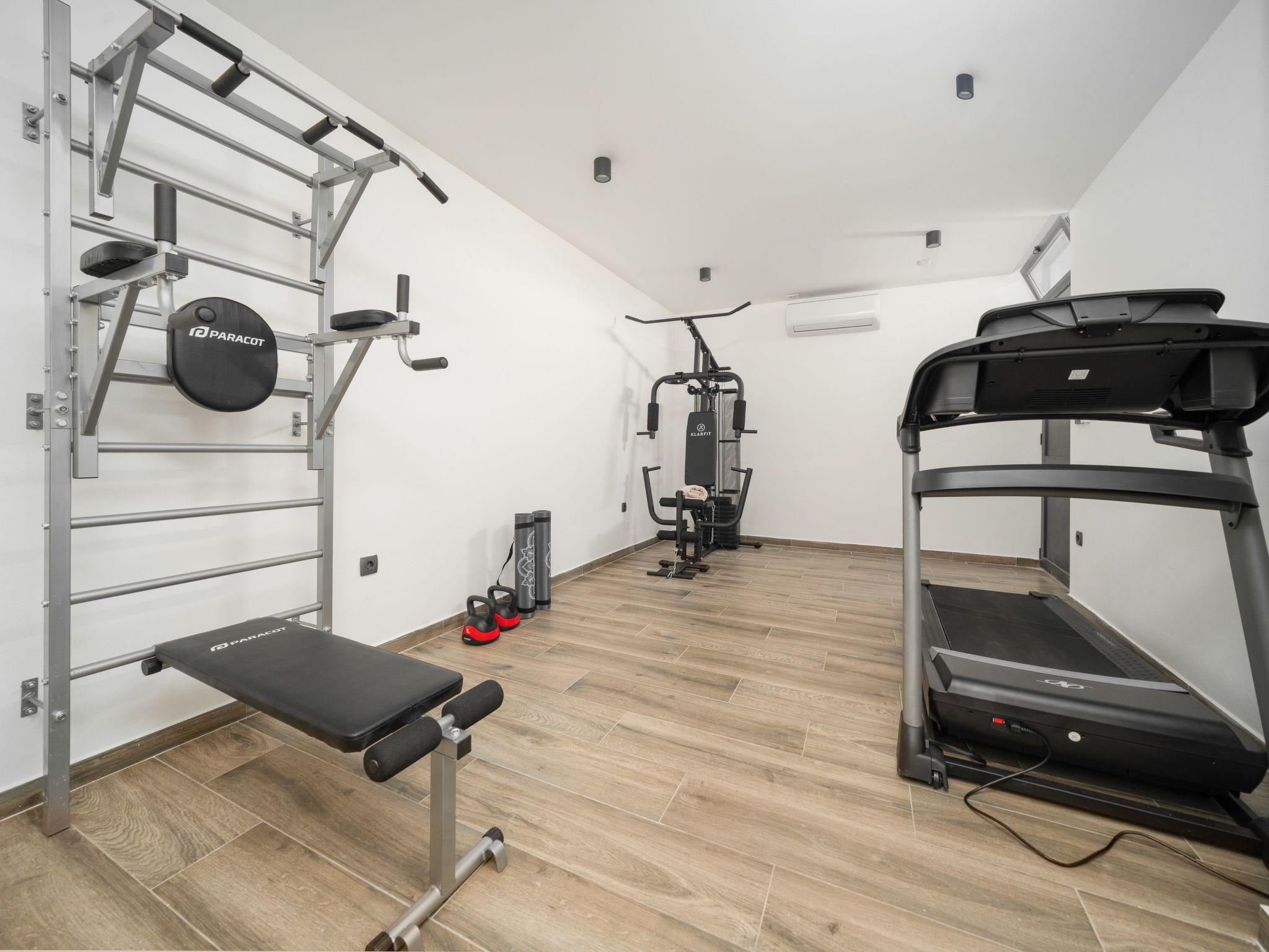 Inside Villa Suncica, you'll find a thoughtfully designed space that caters to your every need. The house features four well-appointed bedrooms, each providing a private sanctuary for rest and rejuvenation. Five bathrooms ensure convenience and privacy for all guests, complemented by modern amenities such as a washing machine and clothes dryer for exclusive use. The villa is also equipped with a coffee machine, dishwasher, and electric kettle, making daily routines effortless. The entertainment options are plentiful, with a fitness room, sauna, billiards, and table football available for guests' enjoyment.