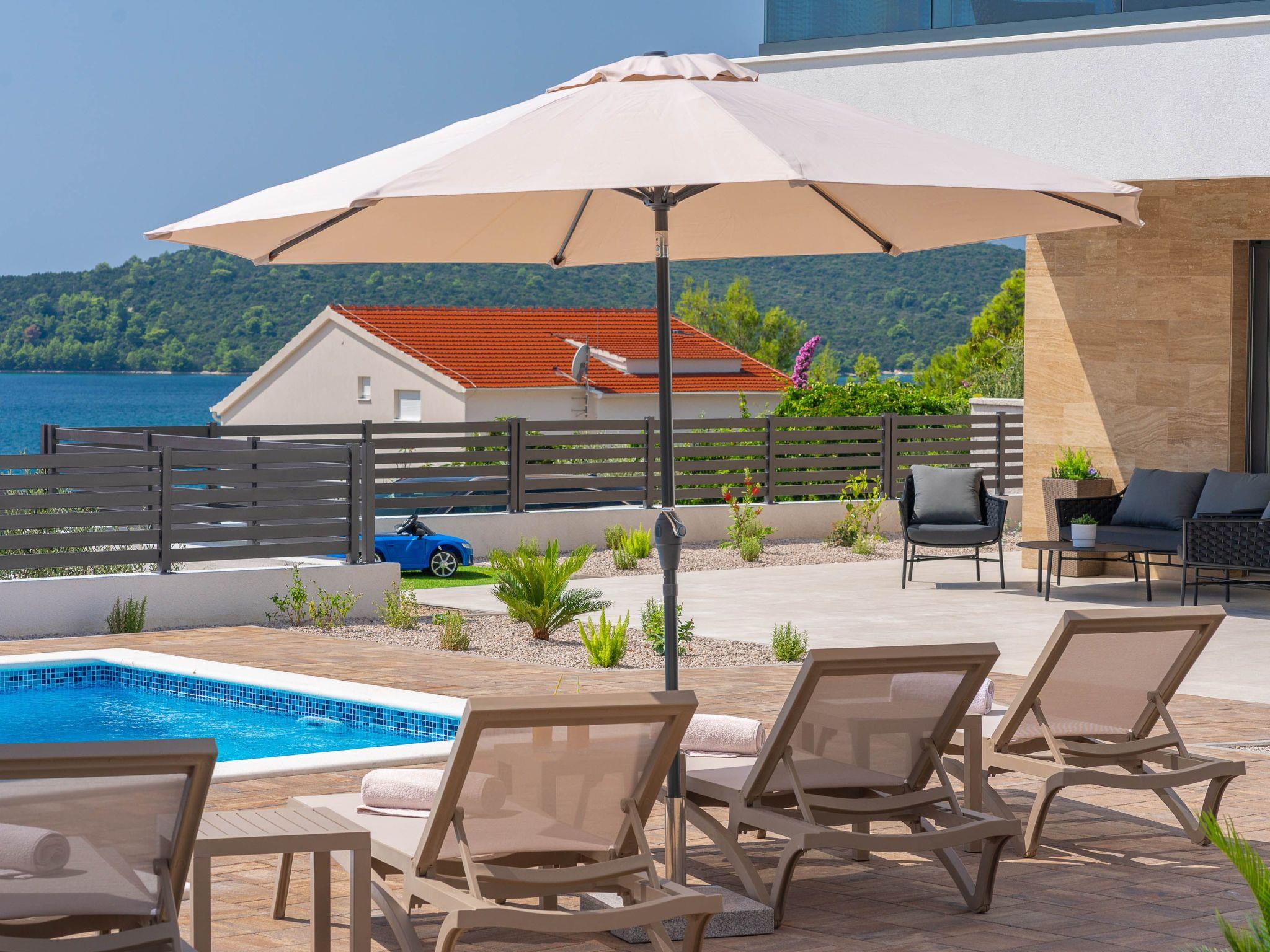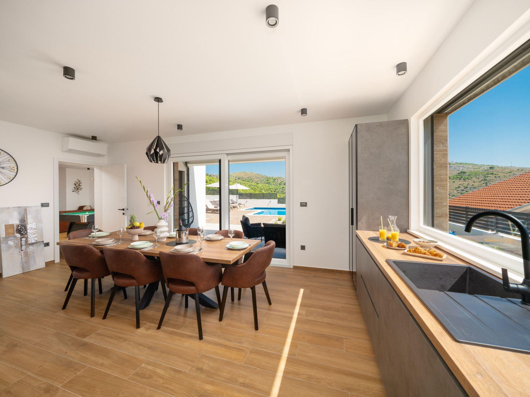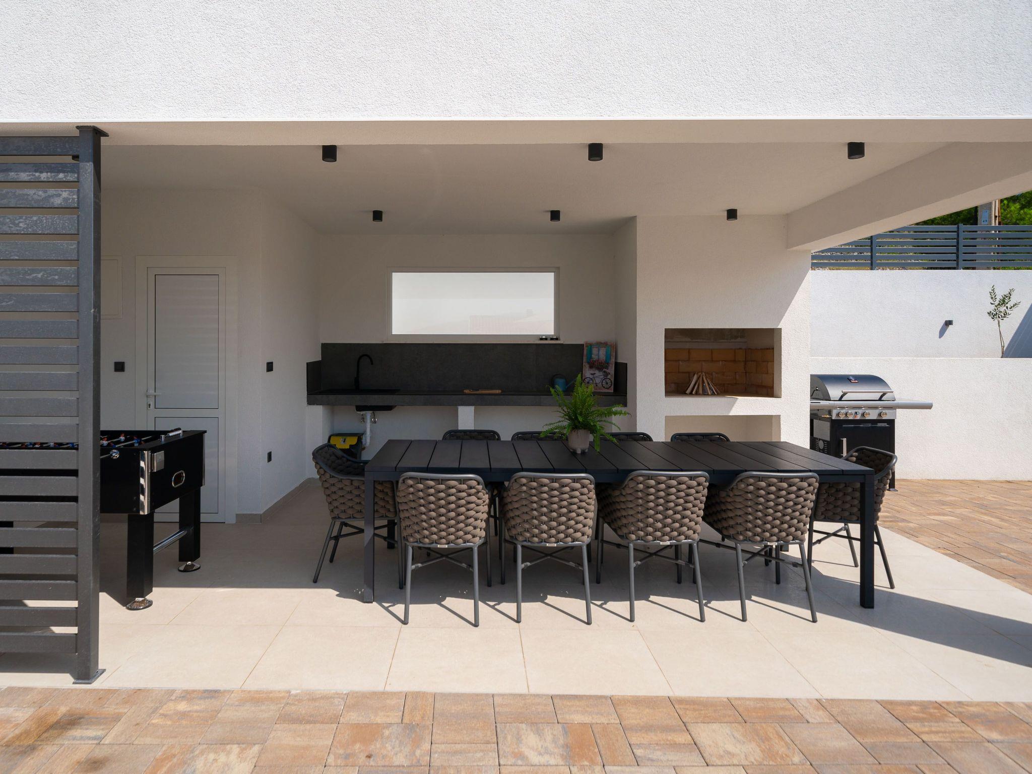 The outdoor area of Villa Suncica is equally impressive, designed to provide the ultimate in leisure and relaxation. A beautiful yard embraces a heated pool, promising endless fun and refreshment under the sun. The outdoor kitchen invites you to indulge in al fresco dining, creating memorable meals in the company of loved ones. Additionally, a private roof terrace offers a secluded spot to unwind or entertain, making every moment spent outdoors truly unforgettable.