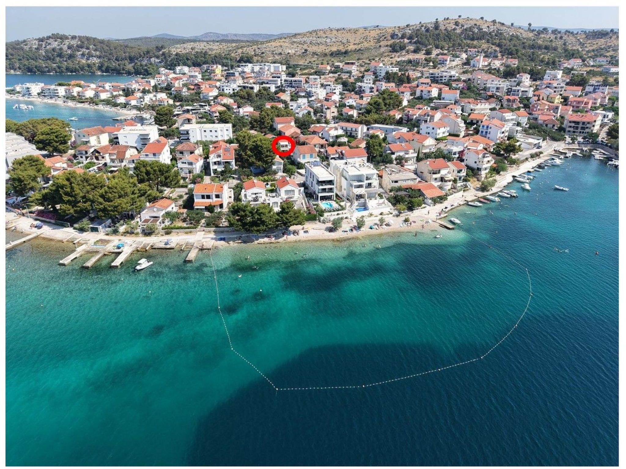 The outdoor space of this holiday house is equally inviting. A cozy balcony, accessible from one of the bedrooms, offers garden furniture and an awning, providing a peaceful spot for morning coffees or evening relaxation. The property also includes a terrace, extending the living space into the open air. A well-maintained garden and a dedicated grill area are available for guests looking to enjoy outdoor dining or simply bask in the Dalmatian sun. On-site parking ensures convenience for those exploring the area by car.