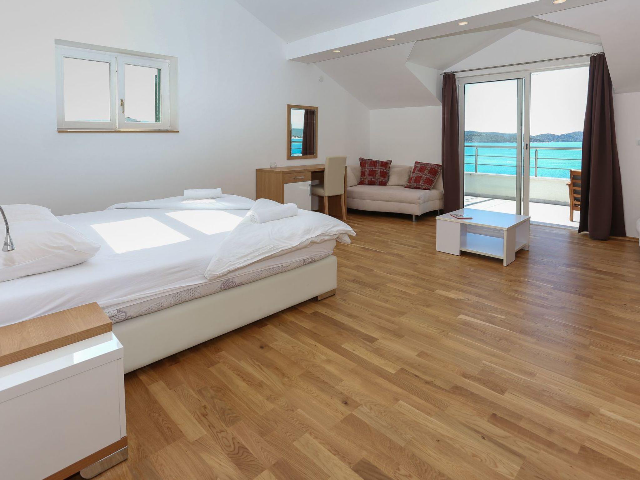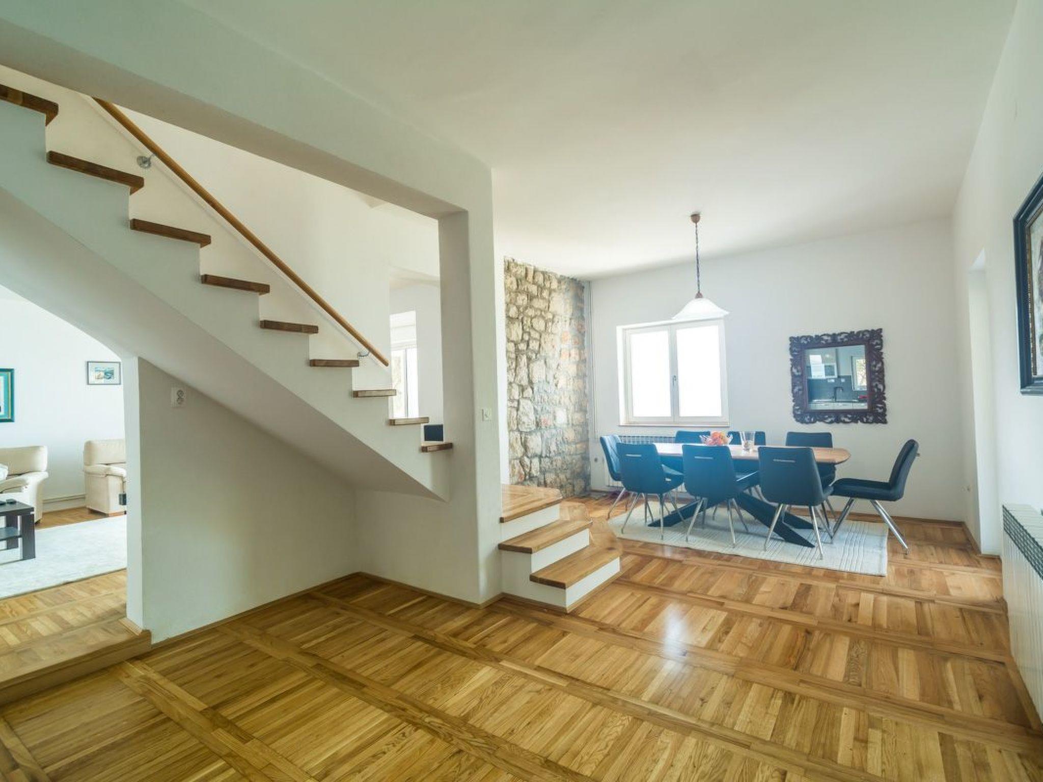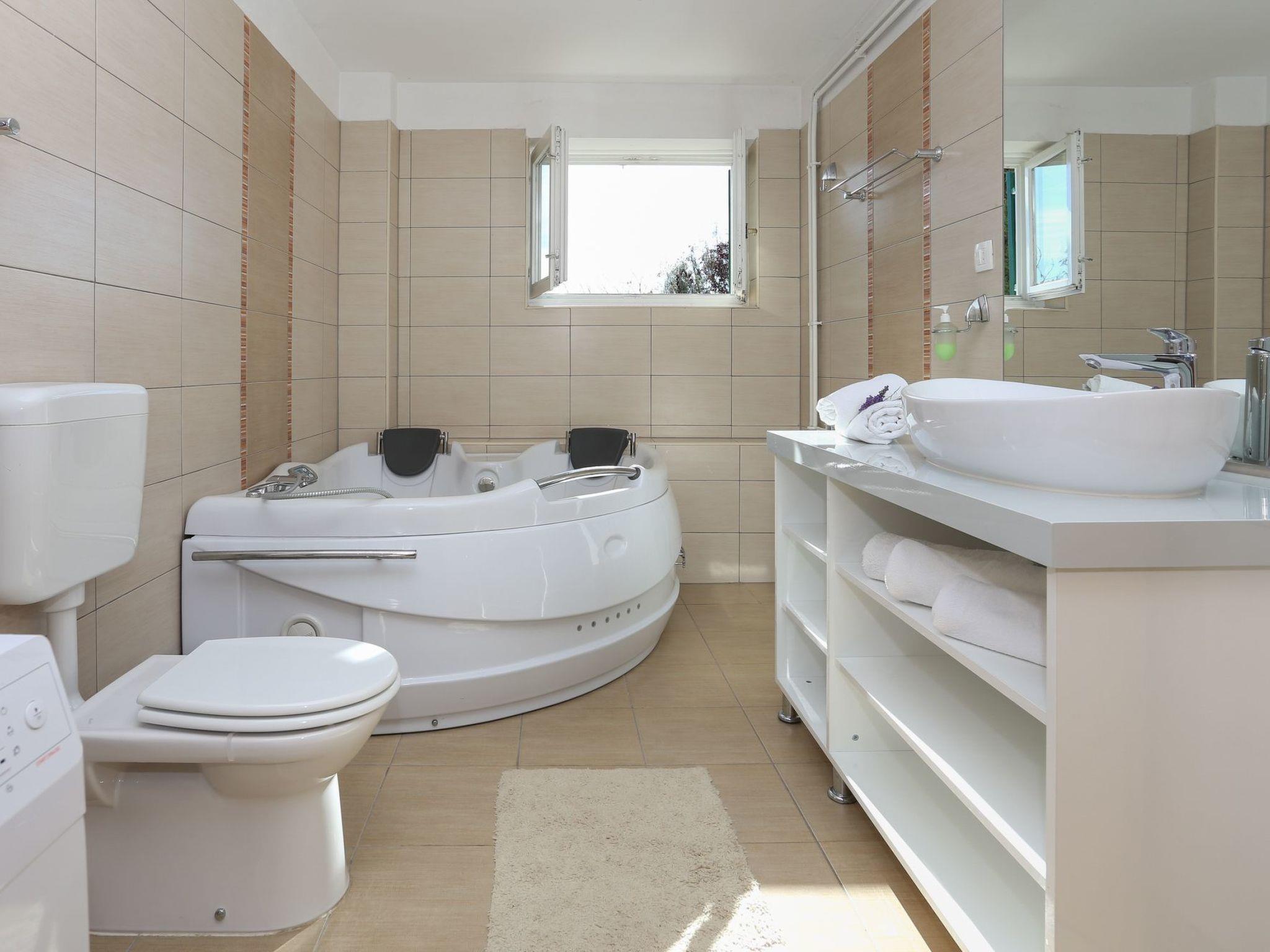Villa Exotica consists of a ground floor, the first and second floor, with 4 bedrooms, living rooms, bathrooms and dining rooms. The ground floor and first floor represent one space connected by inner stairs, while two separate rooms of 40m² are situated on the second floor. -- In the first space (ground floor and first floor), you will find a kitchen, a dining room, a living room (each floor has a separate one), two bedrooms, two toilets and a bathroom, a terrace and balcony with view of the bay … The whole space is very spacious with plenty of daylight. -- In the second space (second floor), there are two separate rooms (40m²). Each room has a bathroom. Only one of these two rooms has direct access to the balcony. -- We also like to emphasize that the villa has a berth/mooring for a boat at your disposal :)