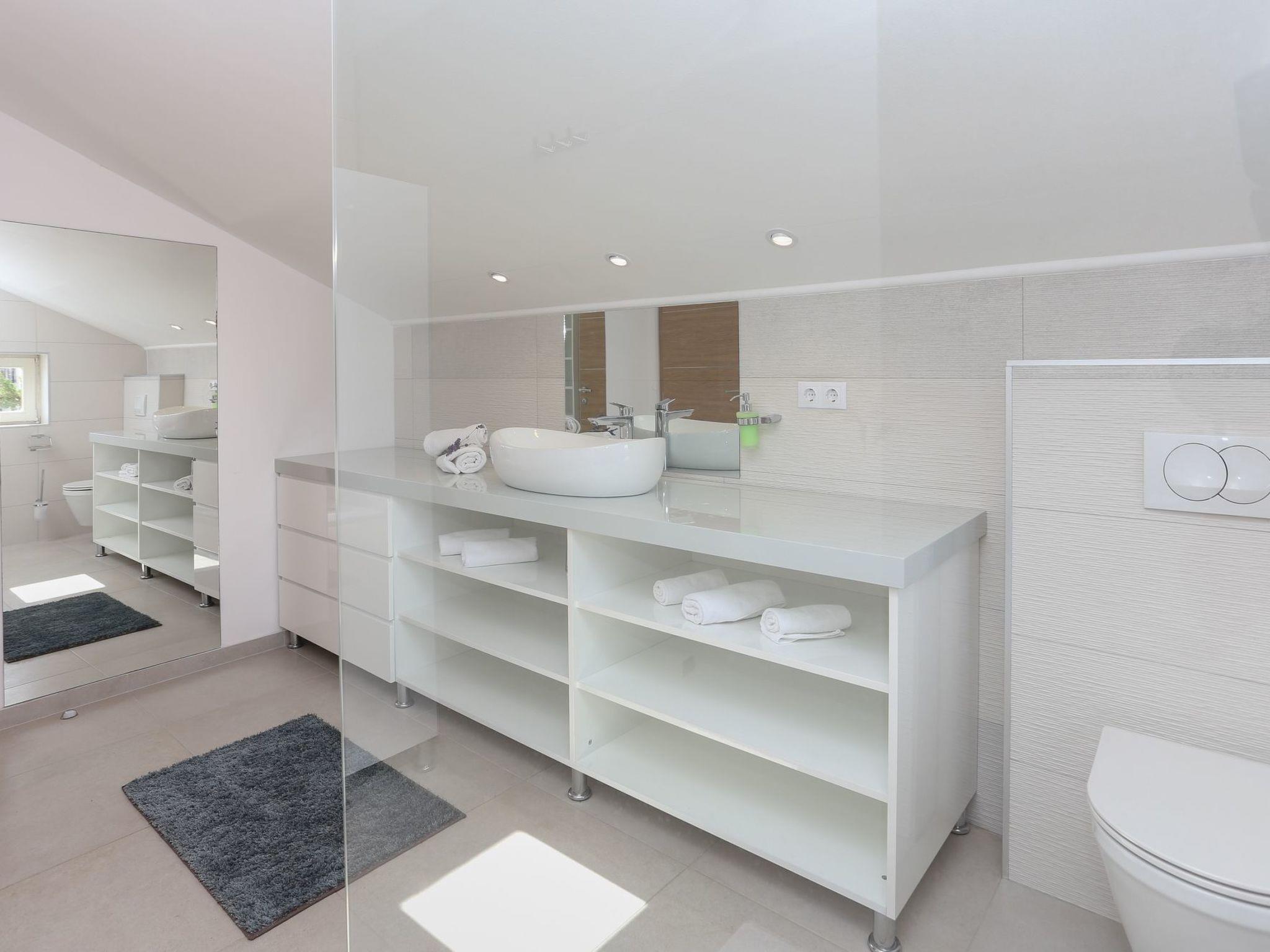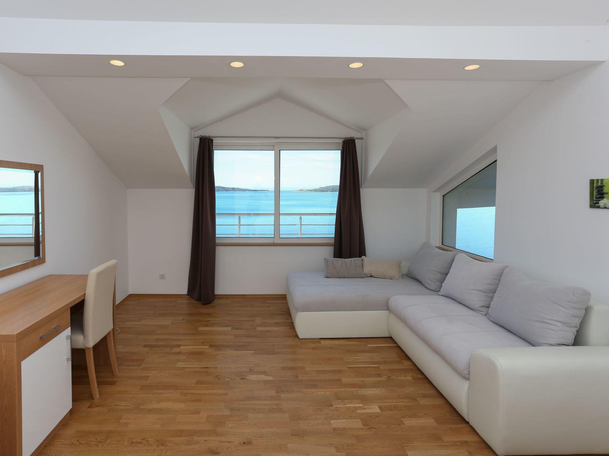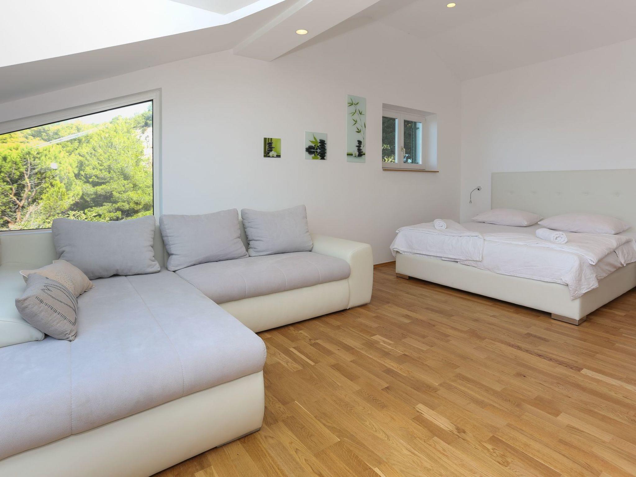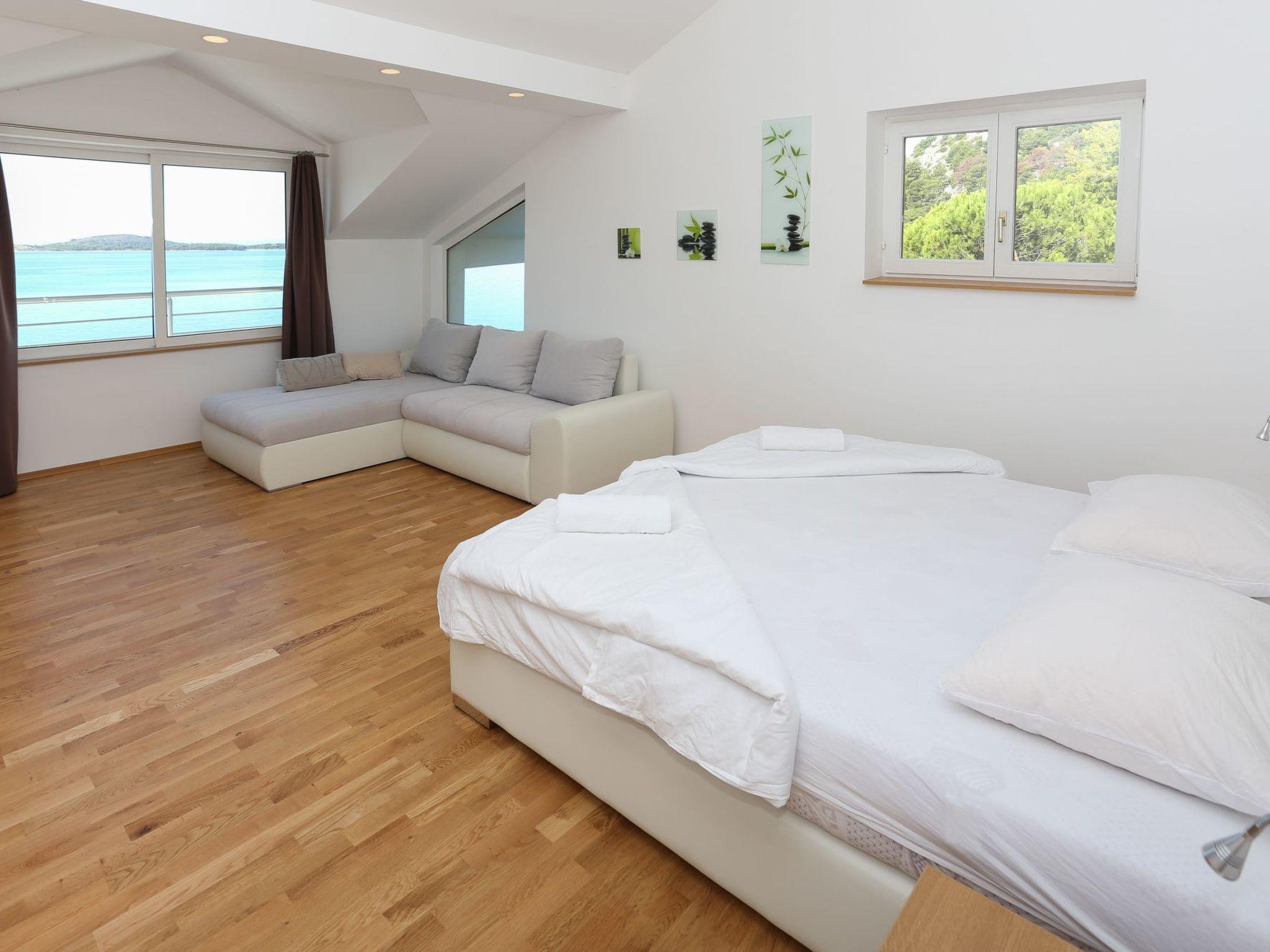 Villa Exotica consists of a ground floor, the first and second floor, with 4 bedrooms, living rooms, bathrooms and dining rooms. The ground floor and first floor represent one space connected by inner stairs, while two separate rooms of 40m² are situated on the second floor. -- In the first space (ground floor and first floor), you will find a kitchen, a dining room, a living room (each floor has a separate one), two bedrooms, two toilets and a bathroom, a terrace and balcony with view of the bay … The whole space is very spacious with plenty of daylight. -- In the second space (second floor), there are two separate rooms (40m²). Each room has a bathroom. Only one of these two rooms has direct access to the balcony. -- We also like to emphasize that the villa has a berth/mooring for a boat at your disposal :)