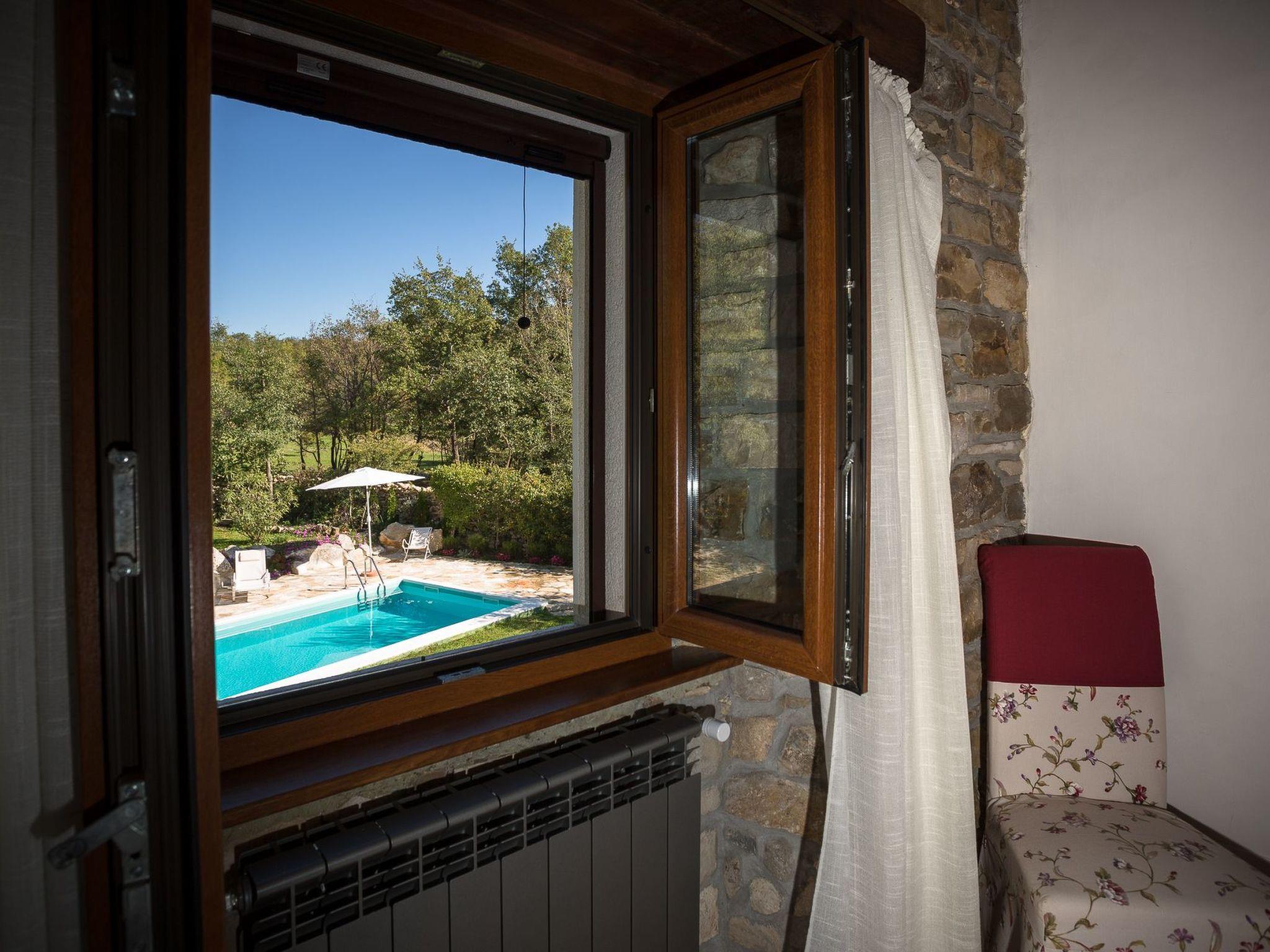 Despite its restful location, the holiday home is conveniently situated close to various attractions and amenities. Supermarkets, restaurants and cafés are only one kilometre away. For lovers of outdoor activities, there are hiking trails in the surroundings, a golf course only ten kilometres away and the sea 13 kilometres away. This area is also famous for its excellent vineyard and olive groves, ensuring an authentic taste of rural Istrian life.