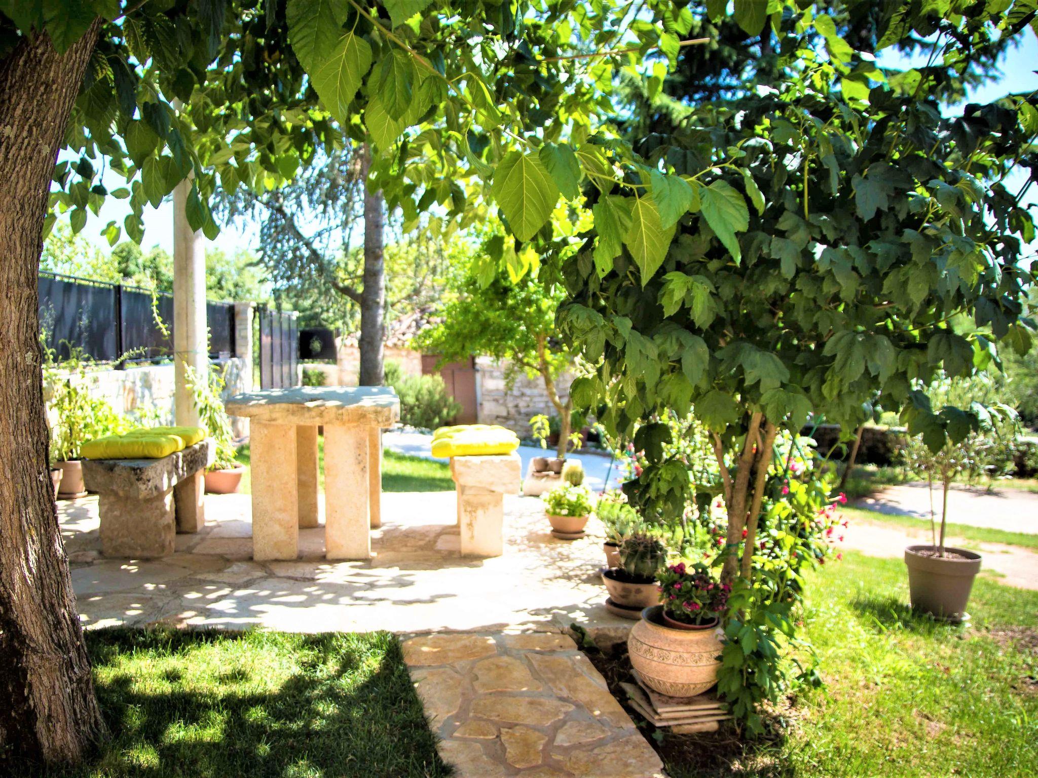 The terrace is equipped with garden furniture, table, chairs, sun umbrella and sun beds. Communal garden equipped with furniture (table with chairs, deck chairs) in the shade of mulberry trees. The property is fenced.
