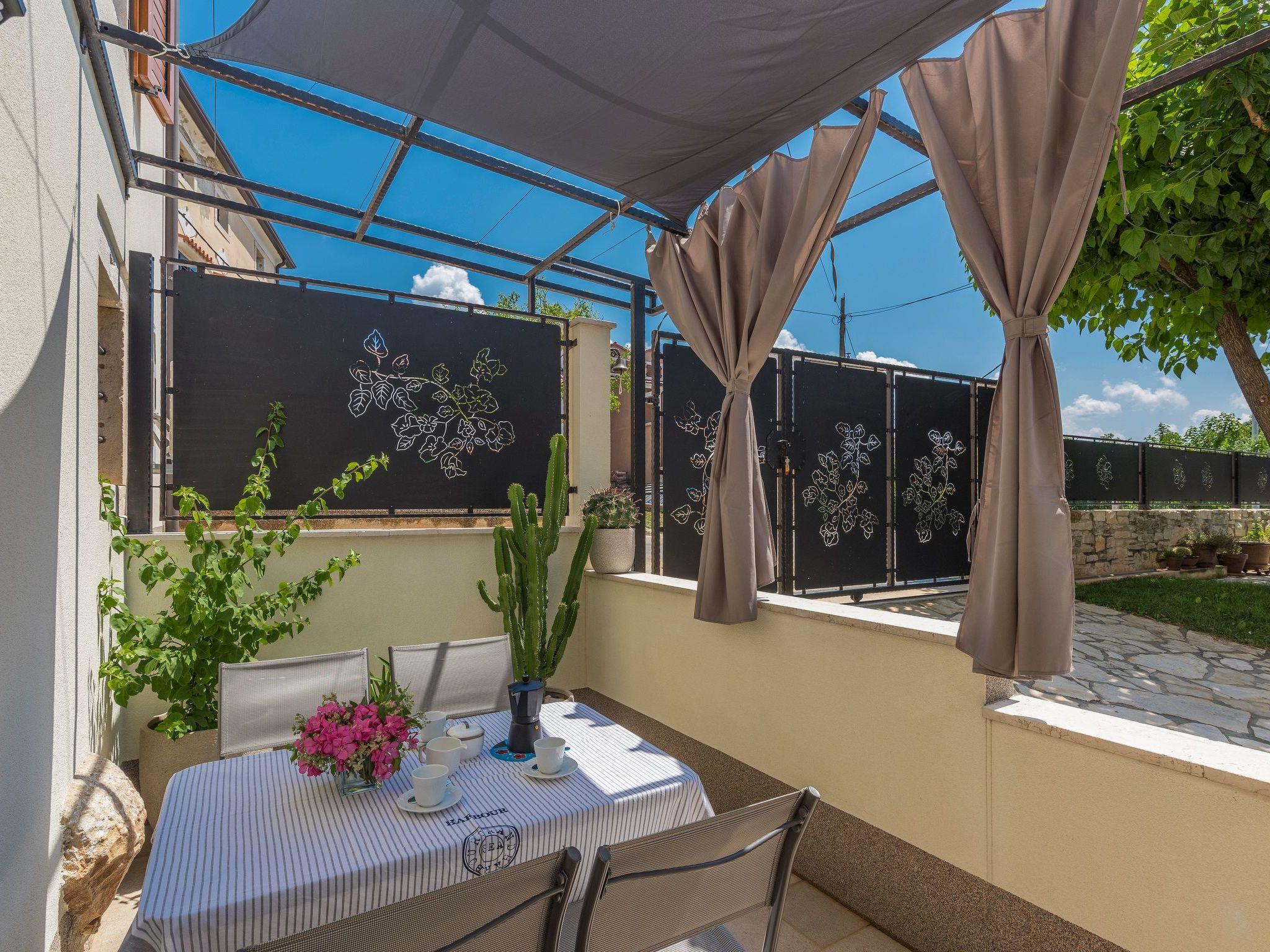 Flat in a typical Istrian country house with garden for shared use The flat is located on the first floor of a typical Istrian country house, completely renovated in 2015. The small village is 30 km from the Italian border, a few minutes from Umag, Savudrija, Novigrad, Porec.