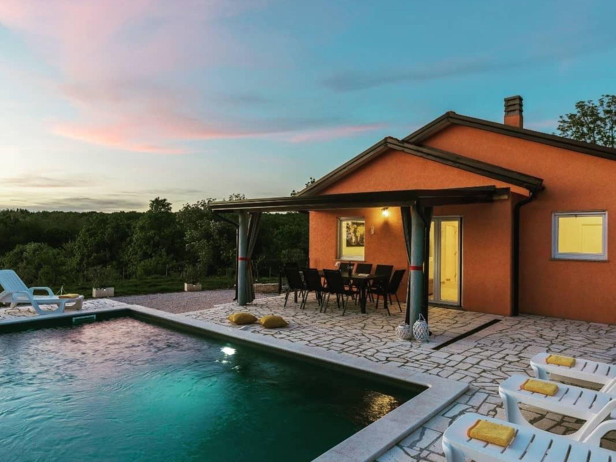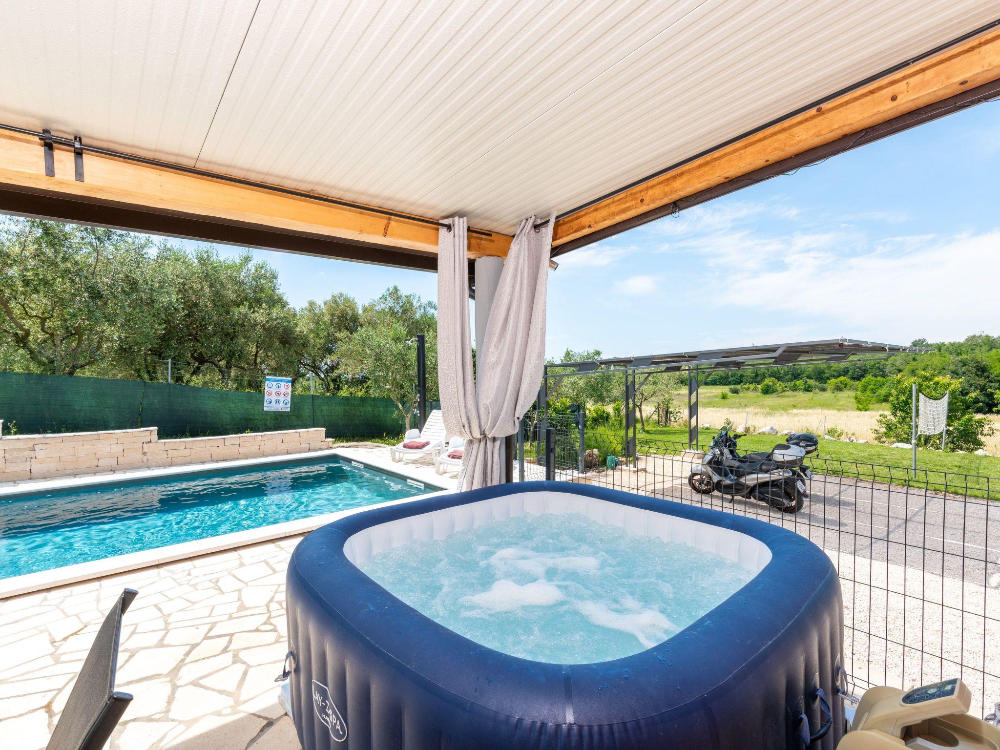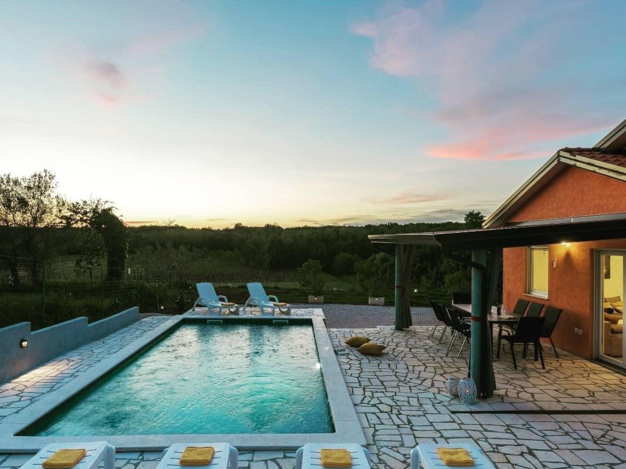 Villa Pendolina is a modernly furnished villa that can accommodate up to 7 guests, offering you everything you need for a relaxing holiday with family and friends. The Villa is completely new and was built in 2021. The indoor area spreads on over 100 square meters and consists of 3 comfortable bedrooms each with a double bed, a bathroom with a shower, a separate toilette, a cosy living room with a convertible sofa bed for one additional guest, an equipped kitchen with kitchen utensils and a dining area. There is also a small storage room with a washing machine and a drier. The living room has access to the covered terrace with a seating area, which is ideal for relaxing evenings by the pool. The outdoor area offers you a private garden with BBQ, a Jacuzzi, and a pool with sunbeds. There is also a trampoline for kids and a volleyball court. Private parking for two cars is in front of the house. The location of the villa offers you a peaceful and relaxing holiday away from the city noise since the house is surrounded by nature.