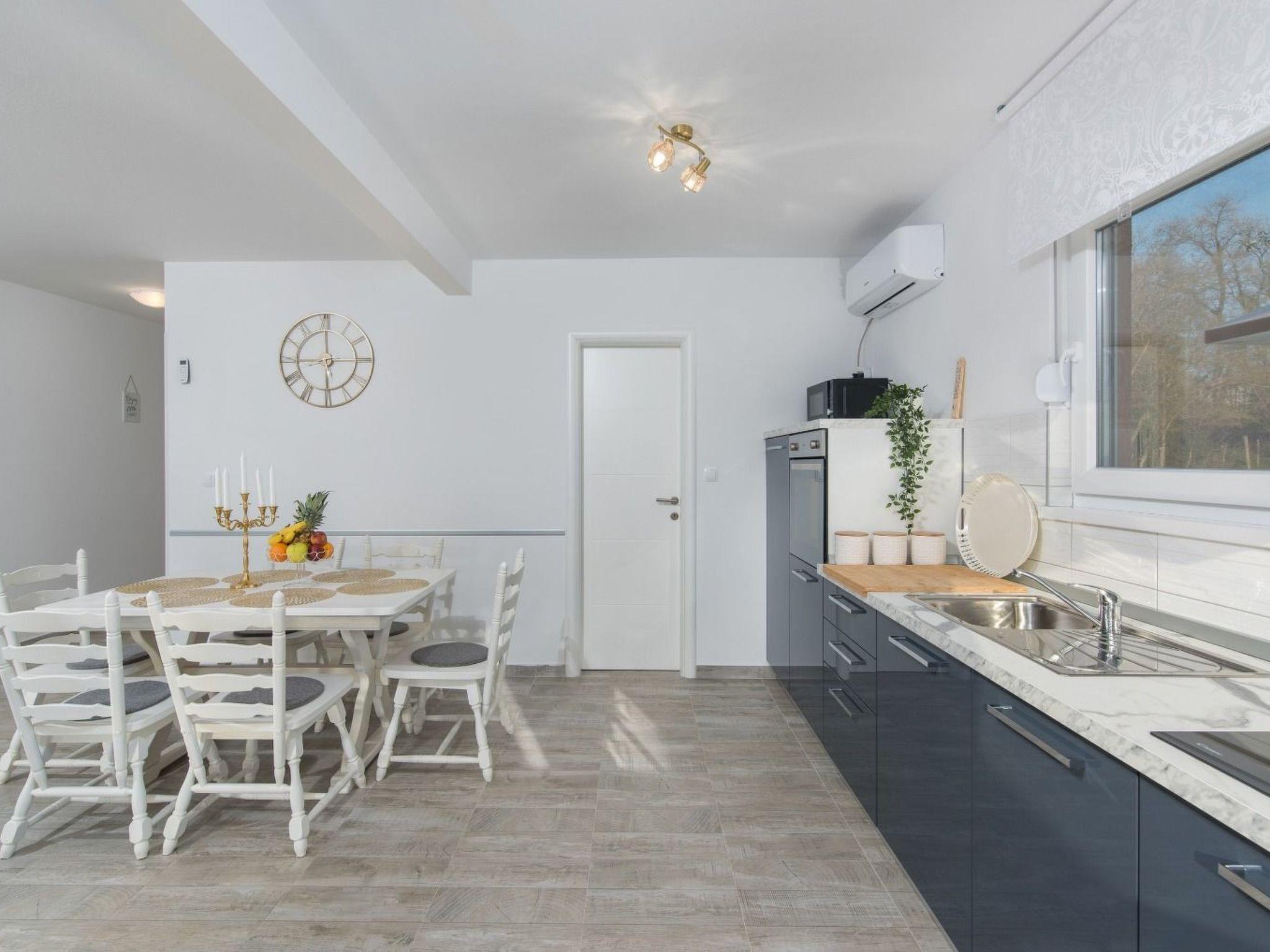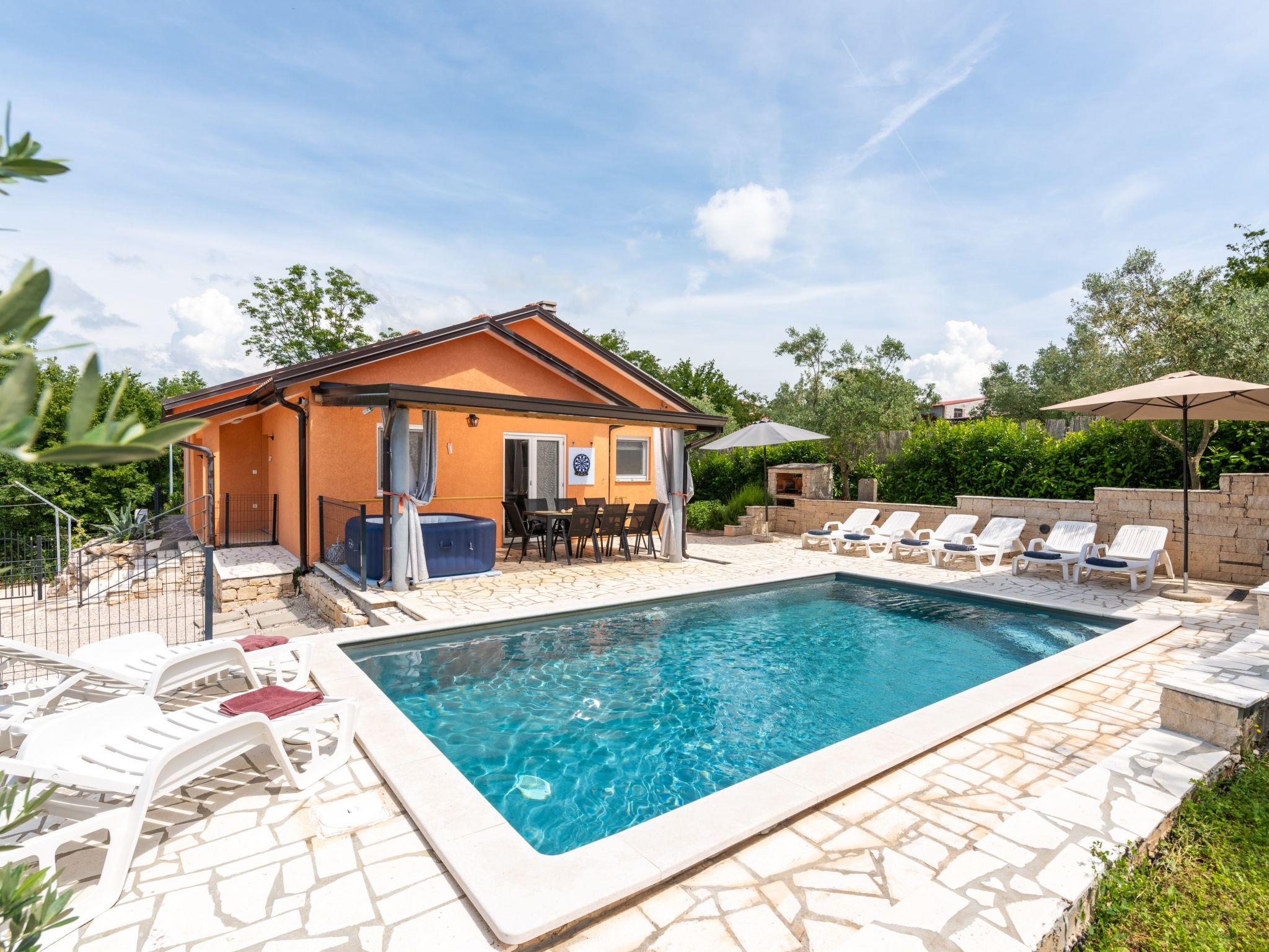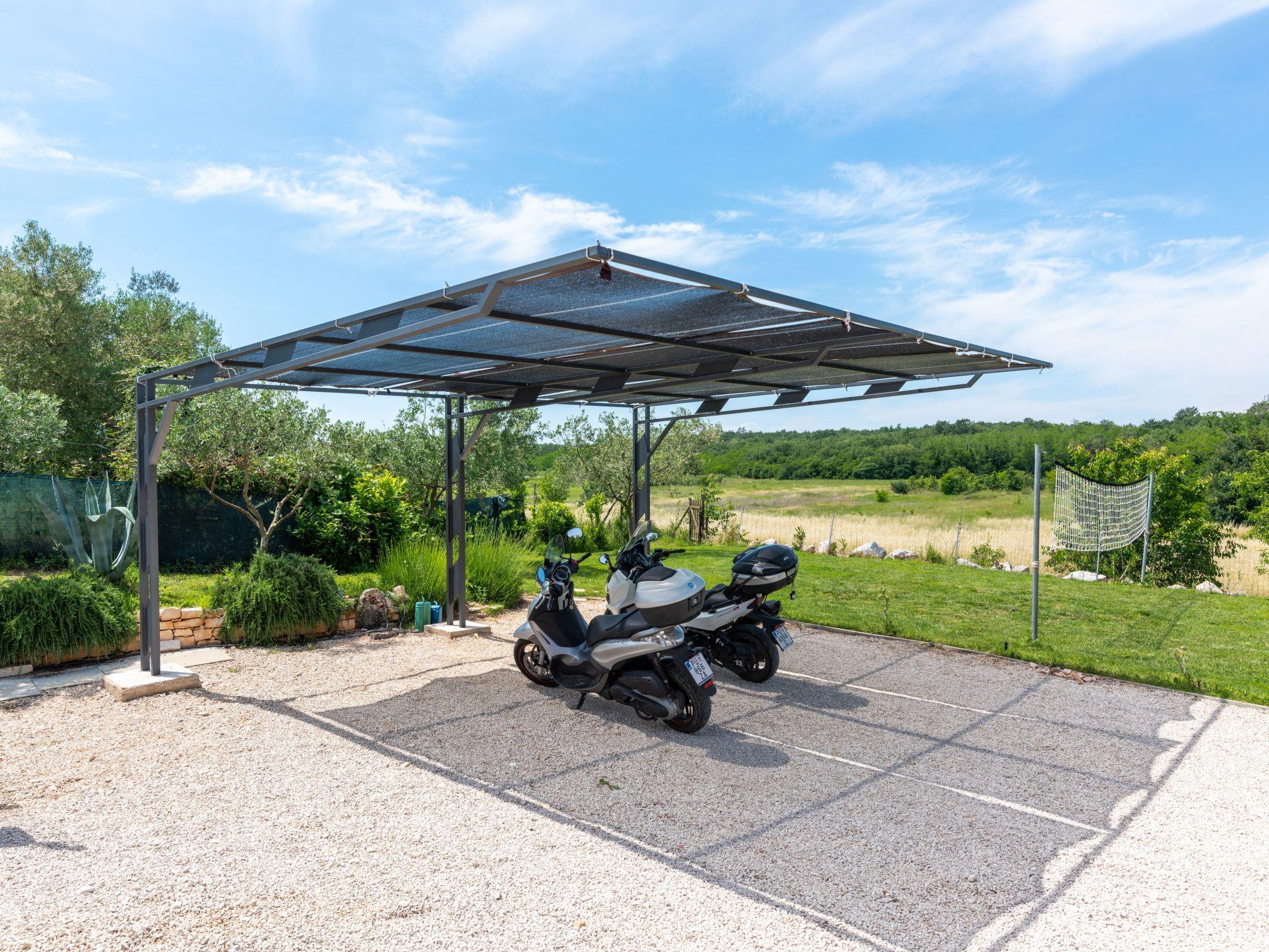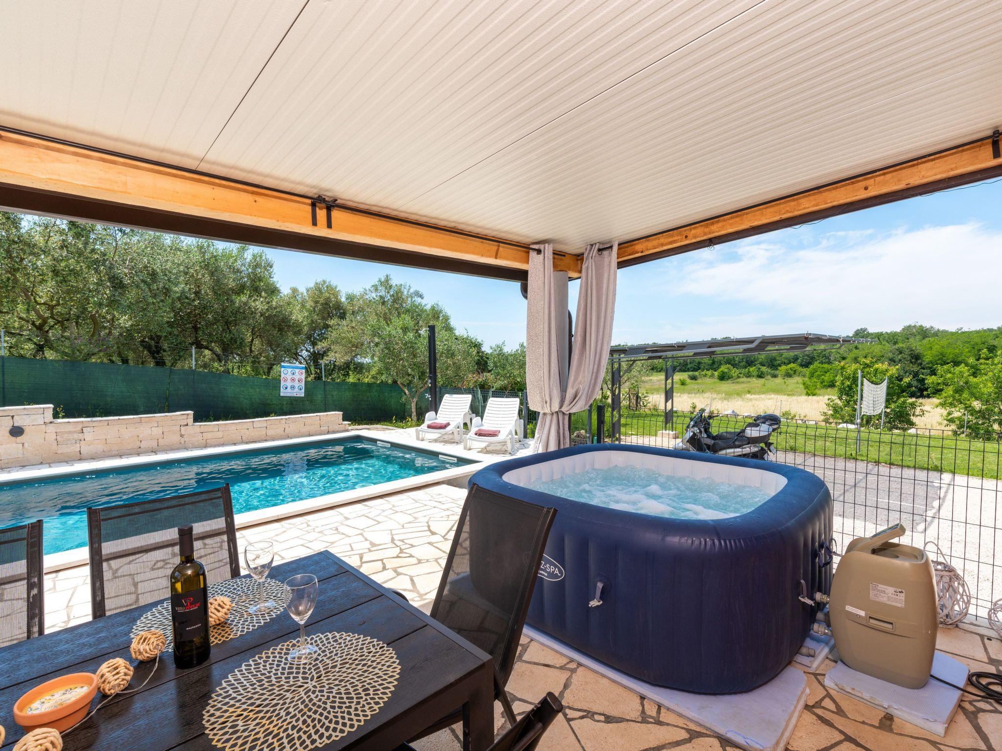 Villa Pendolina is a modernly furnished villa that can accommodate up to 7 guests, offering you everything you need for a relaxing holiday with family and friends. The Villa is completely new and was built in 2021. The indoor area spreads on over 100 square meters and consists of 3 comfortable bedrooms each with a double bed, a bathroom with a shower, a separate toilette, a cosy living room with a convertible sofa bed for one additional guest, an equipped kitchen with kitchen utensils and a dining area. There is also a small storage room with a washing machine and a drier. The living room has access to the covered terrace with a seating area, which is ideal for relaxing evenings by the pool. The outdoor area offers you a private garden with BBQ, a Jacuzzi, and a pool with sunbeds. There is also a trampoline for kids and a volleyball court. Private parking for two cars is in front of the house. The location of the villa offers you a peaceful and relaxing holiday away from the city noise since the house is surrounded by nature.