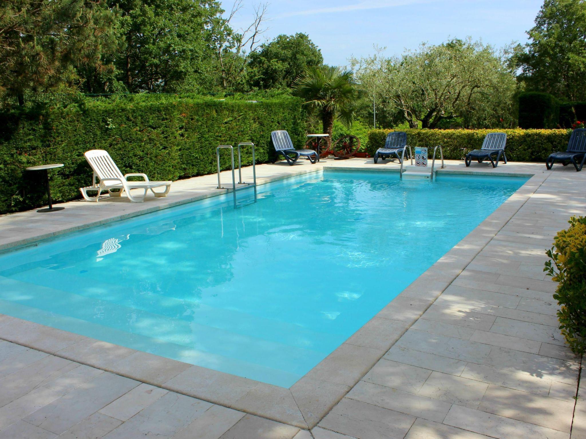 In the garden is a large private pool surrounded by sundeck with sun beds and furnished terrace with tables, benches and a fireplace for grill.