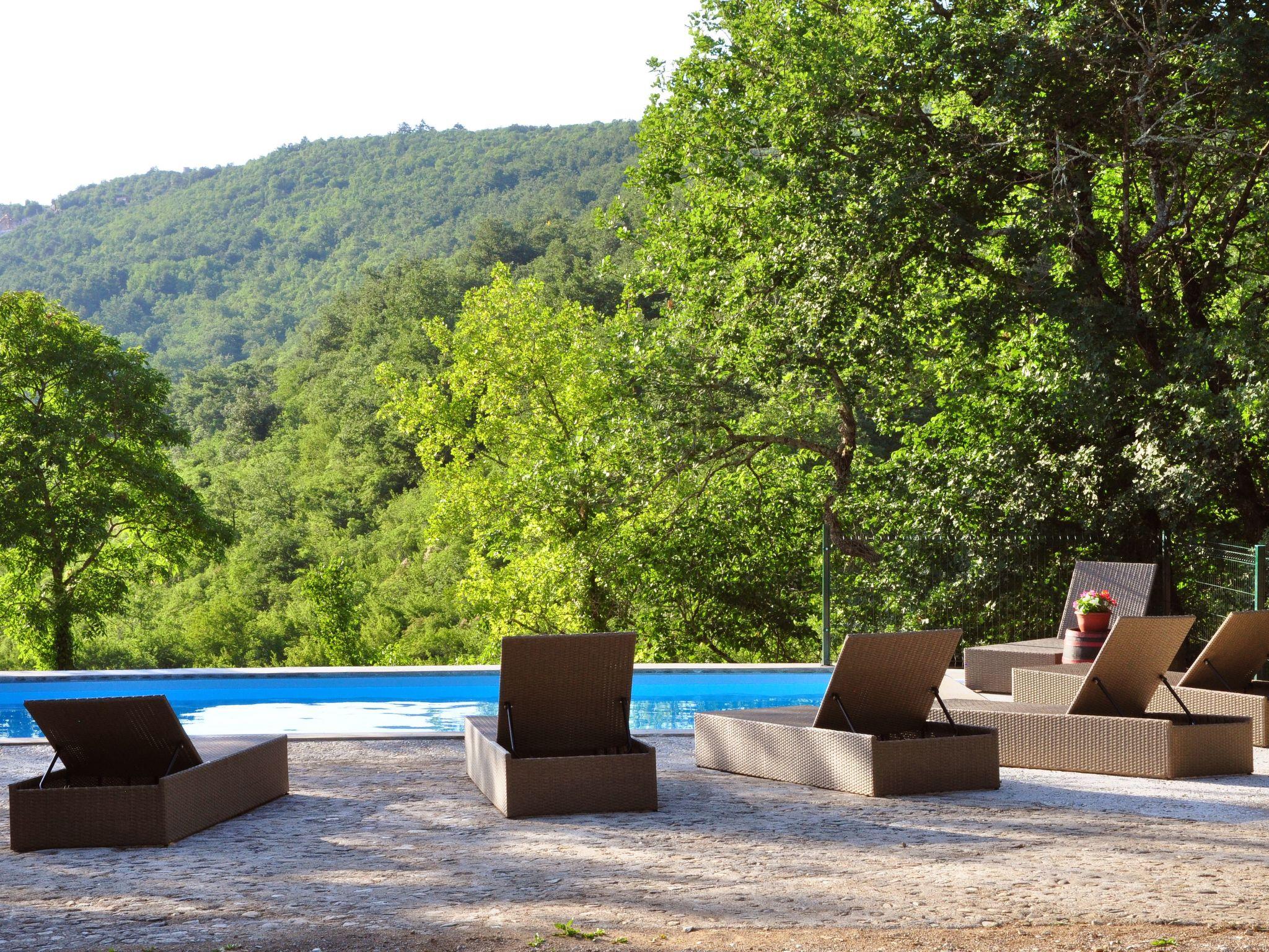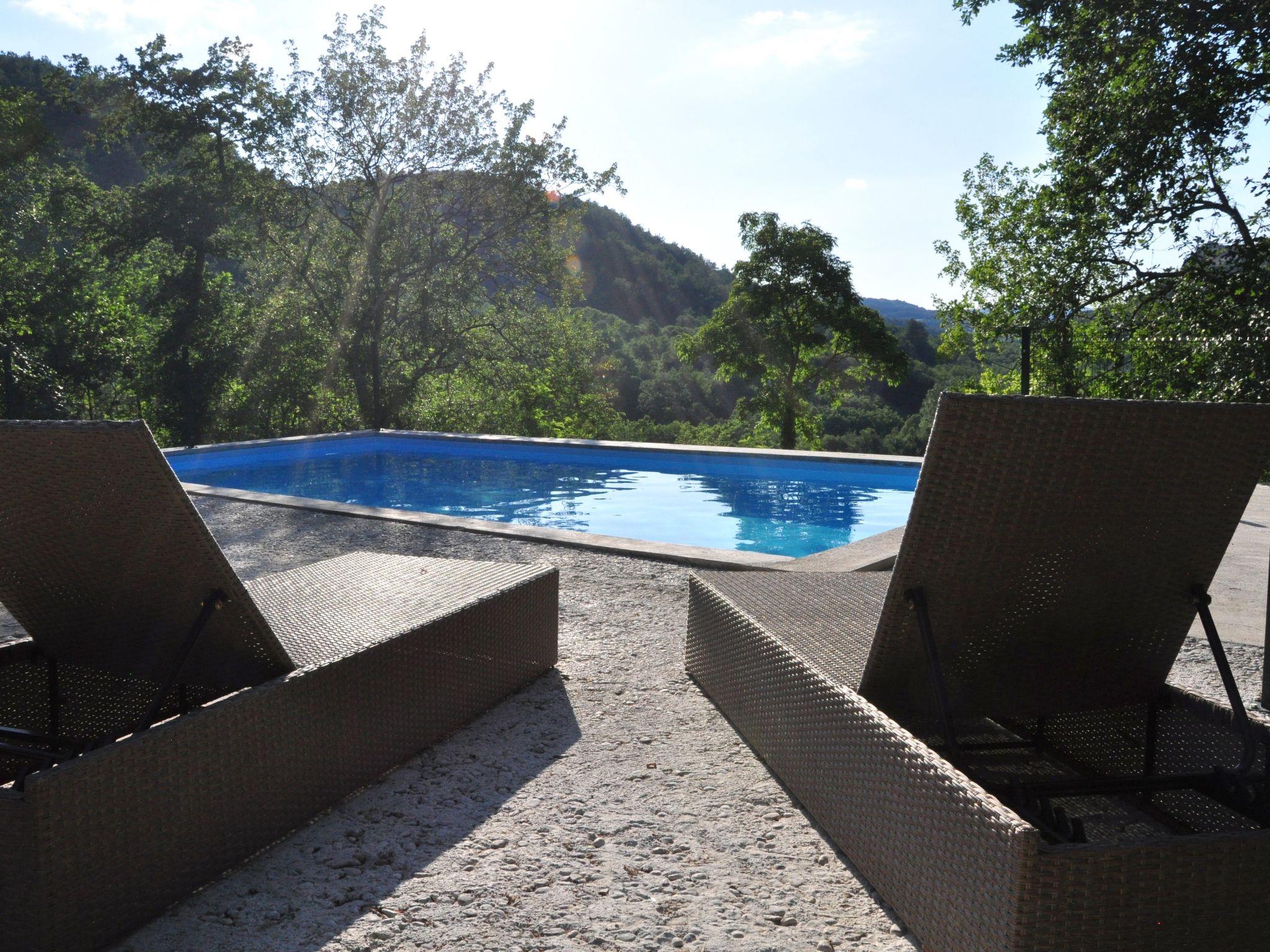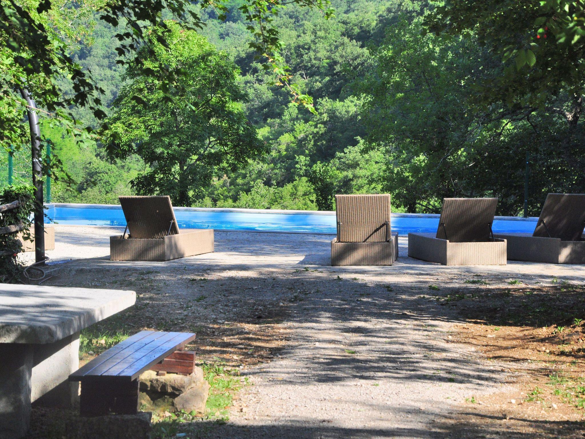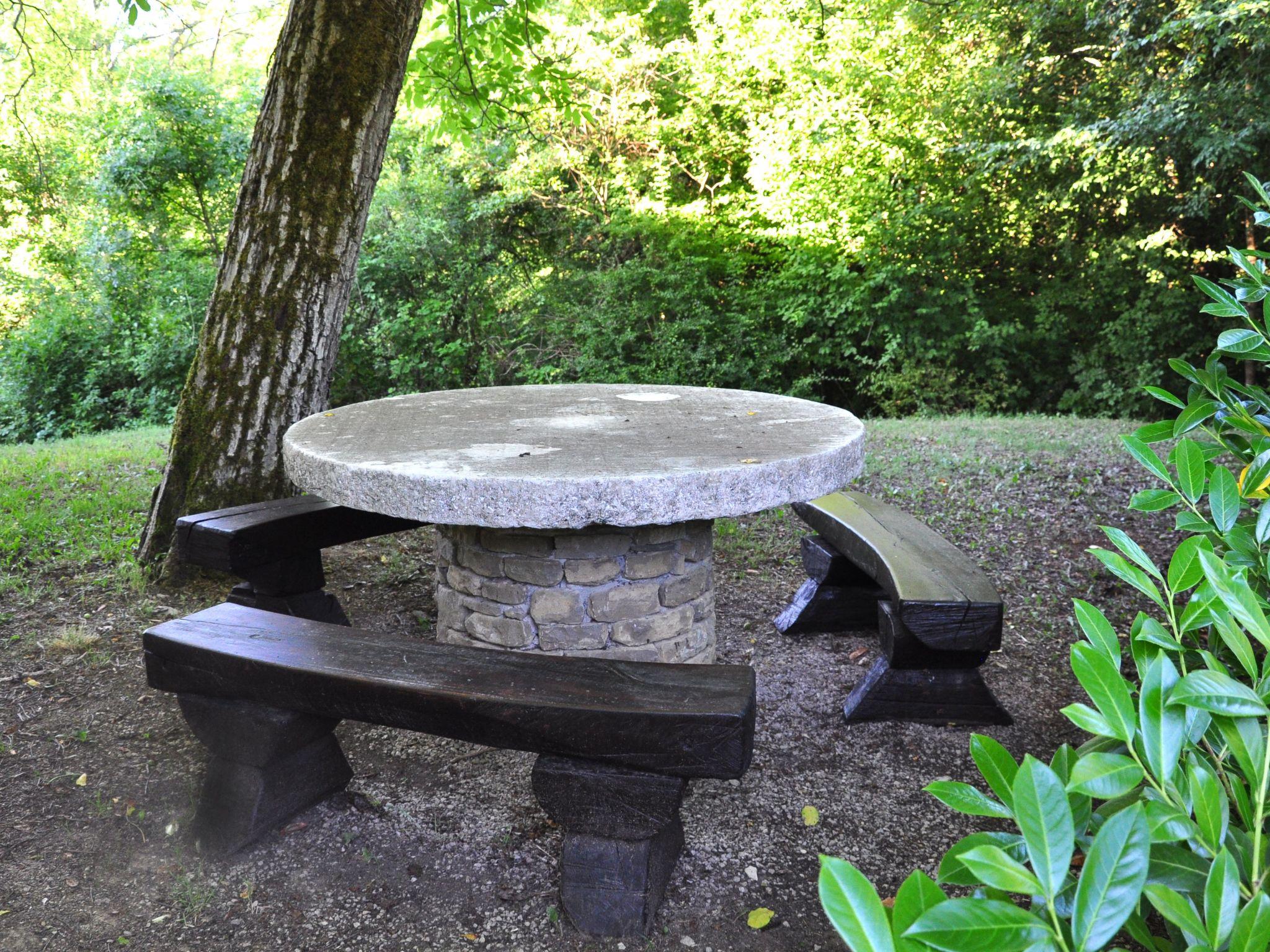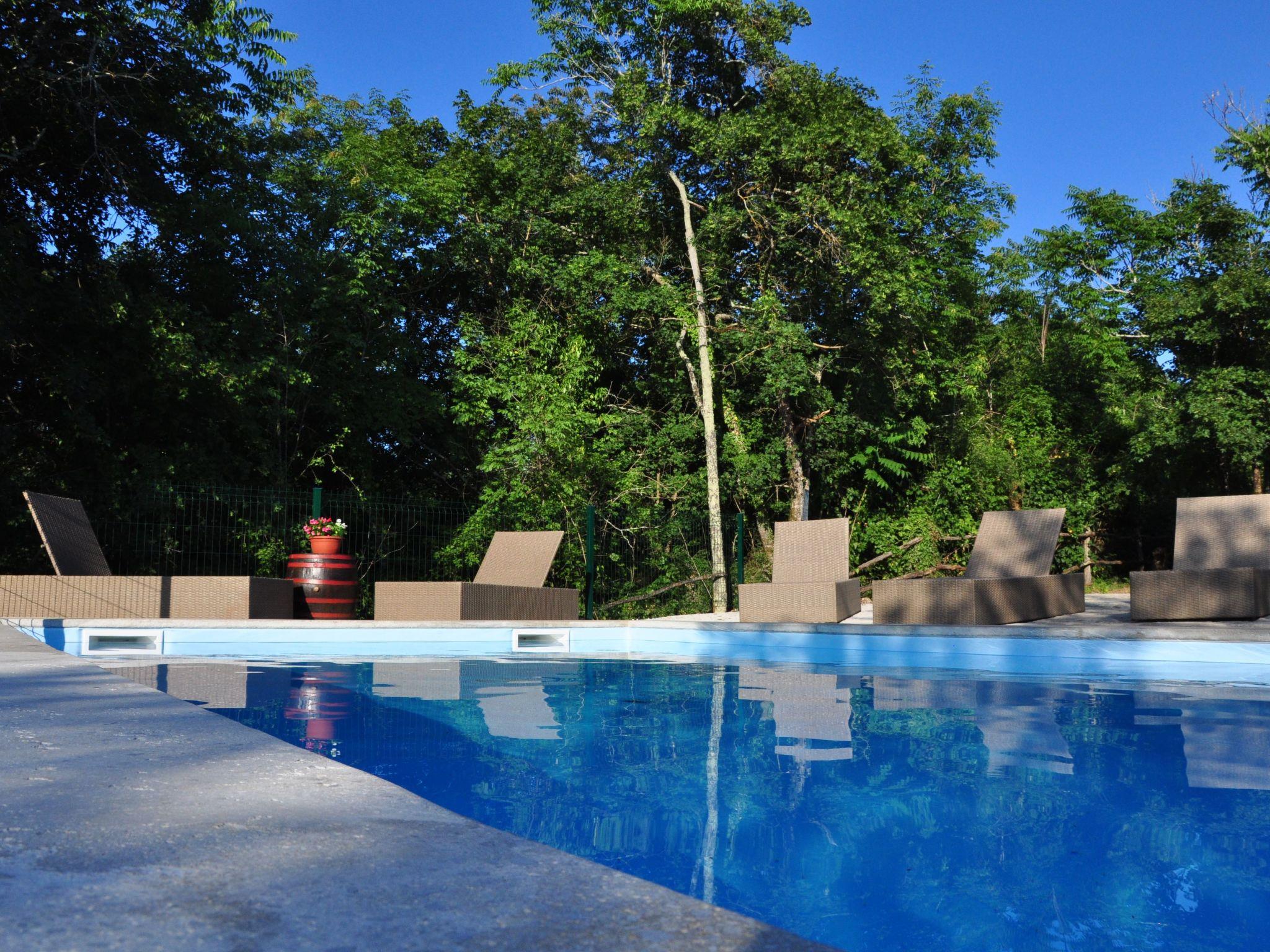 Stepping outside, you're greeted with well-preserved courtyards, outer staircases, arched passages, and picturesque chimneys that evoke a sense of time standing still. The garden is adorned with furniture, a grill for those delightful BBQ sessions, and playground equipment for younger guests. Amongst these outdoor features, you'll also find a splendid swimming pool shared for communal use, promising refreshing dips under the open sky. The River Mirna's gentle flow and the scenic waterfalls create a tranquil backdrop for relaxation and leisure.