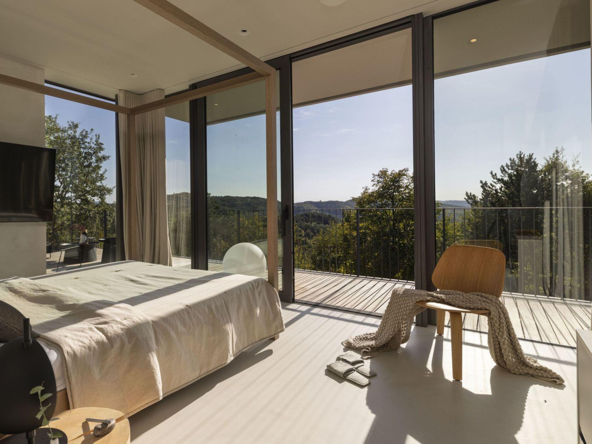 Adding to the charm is a fireplace that provides a warm ambiance during the cooler evenings. The house is uniquely positioned directly at the edge of the woods, offering a serene getaway from the hustle and bustle. Outside, the garden is exclusively yours to enjoy, complete with a private pool for soaking up the sun or taking leisurely swims. The outdoor area is completed with a terrace and a balcony, perfect for relaxing moments in the fresh air.