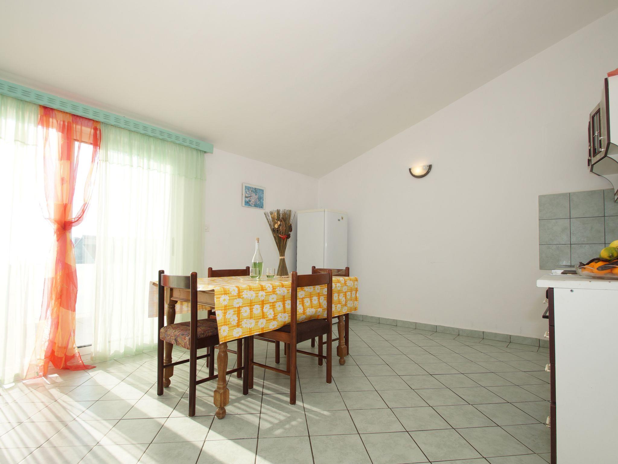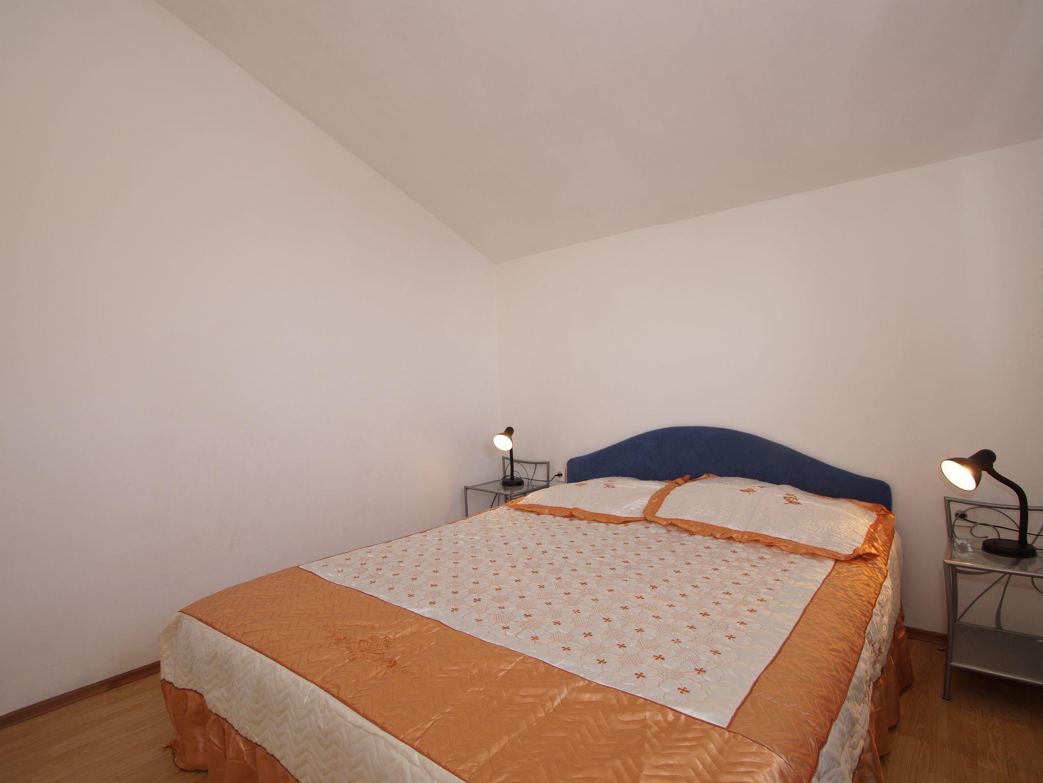 Ferienwohnung bietet Platz für 5 Gäste. Die Betten sind in Schlafzimmern, die es 2 gibt, und in Wohnzimmer, innerhalb einer Gesamtfläche von 52m2, angeordnet. Die Gäste haben eine eigene Terrasse zur Verfügung, auf der sie in warmen Sommernächten genießen können. Das Apartment bietet Meerblick. Es ist erlaubt, Speisen auf dem Gemeinschafts-Grill vorzubereiten. In der Unterkunftseinheit besteht die Möglichkeit des Mitbringens von Haustieren gegen Aufpreis. IM PREIS INBEGRIFFEN: Kurtaxe, Endreinigung, Klimatisierung, Parkplatz, Internet, Bootsanlegeplatz, Bügeleisen. VERBINDLICHE ZUSÄTZLICHE KOSTEN: Aufzahlung für Kurzaufenthalte (prozentualer Zuschlag pro Nächtigungsanzahl: 30% - 1, 20% - 2, 10% - 3). UNVERBINDLICHE ZUSÄTZLICHE KOSTEN: Wäschewaschen (5,00 € Waschen), Boot (60,00 € pro Nacht), Haustiere (3,00 € pro Nacht). Die Verfügbarkeit zusätzlicher Dienstleistungen in Ihrem reservierten Termin und die Preise derselben (falls nicht aufgeführt) müssen im Voraus überprüft werden. Zusätzliche Dienstleistungen die in der Zahlungsaufforderung nicht aufgeführt sind werden direkt beim Vermieter bezahlt, angenommen der Gast nutzt auch diese.