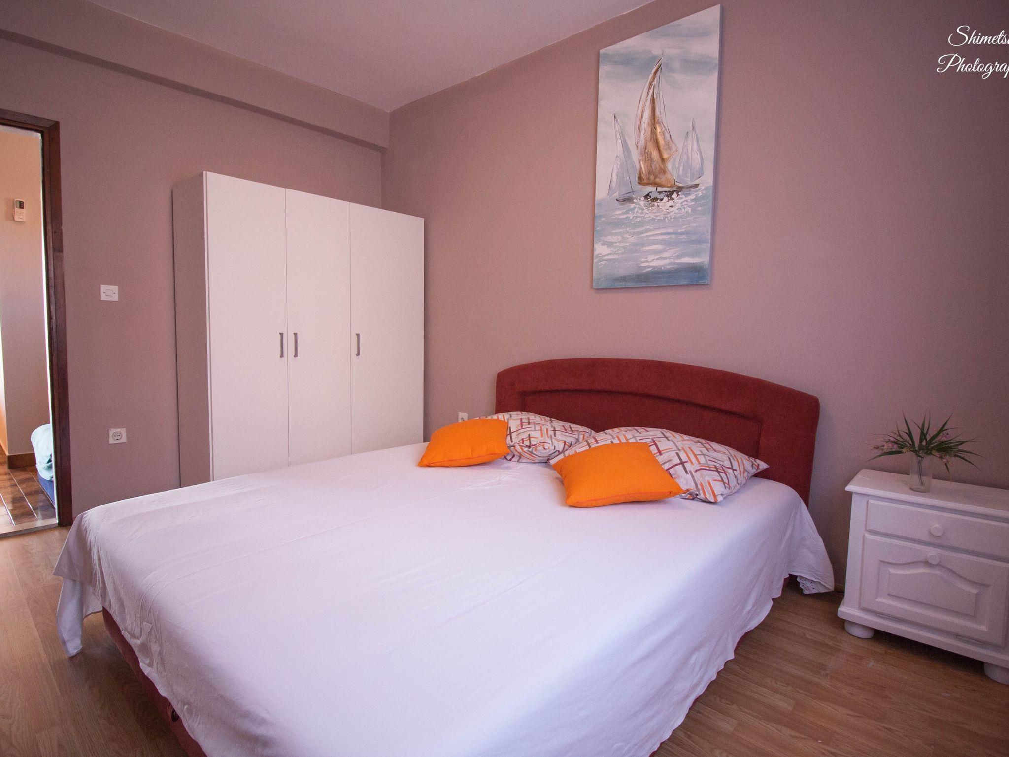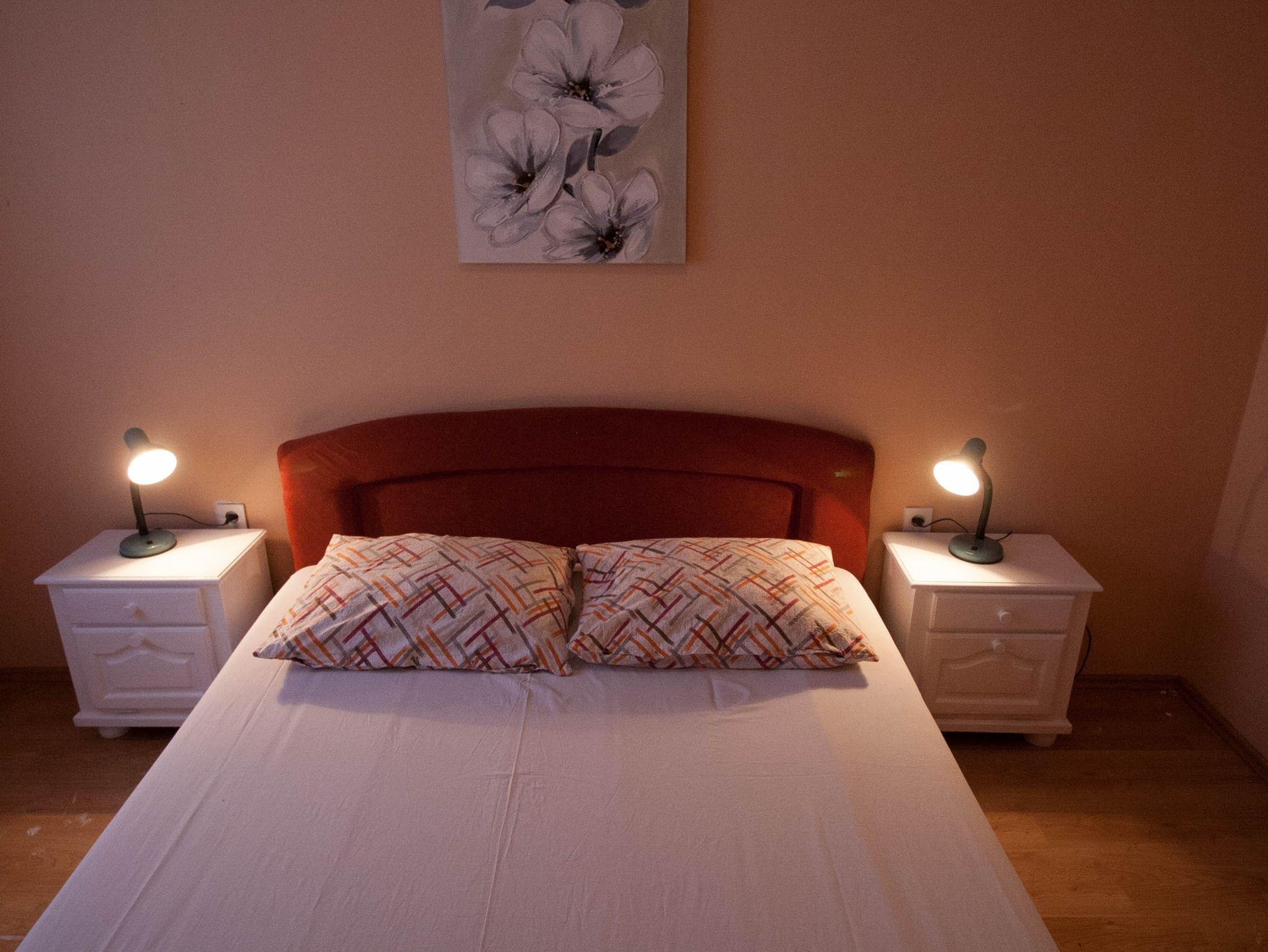 Ferienwohnung bietet Platz für 5 Gäste. Die Betten sind in Schlafzimmern, die es 2 gibt, und in Esszimmer, innerhalb einer Gesamtfläche von 45m2, angeordnet. Die Gäste haben eine eigene Terrasse zur Verfügung, auf der sie in warmen Sommernächten genießen können. Das Apartment bietet Meerblick. Es ist erlaubt, Speisen auf dem Gemeinschafts-Grill vorzubereiten. In der Unterkunftseinheit besteht die Möglichkeit des Mitbringens von Haustieren gegen Aufpreis. IM PREIS INBEGRIFFEN: Kurtaxe, Endreinigung, Klimatisierung, Parkplatz, Internet, Bootsanlegeplatz, Bügeleisen. VERBINDLICHE ZUSÄTZLICHE KOSTEN: Aufzahlung für Kurzaufenthalte (prozentualer Zuschlag pro Nächtigungsanzahl: 30% - 1, 20% - 2, 10% - 3). UNVERBINDLICHE ZUSÄTZLICHE KOSTEN: Wäschewaschen (5,00 € Waschen), Boot (60,00 € pro Nacht), Haustiere (3,00 € pro Nacht), Zusatzbett (8,00 € pro Nacht). Die Verfügbarkeit zusätzlicher Dienstleistungen in Ihrem reservierten Termin und die Preise derselben (falls nicht aufgeführt) müssen im Voraus überprüft werden. Zusätzliche Dienstleistungen die in der Zahlungsaufforderung nicht aufgeführt sind werden direkt beim Vermieter bezahlt, angenommen der Gast nutzt auch diese.