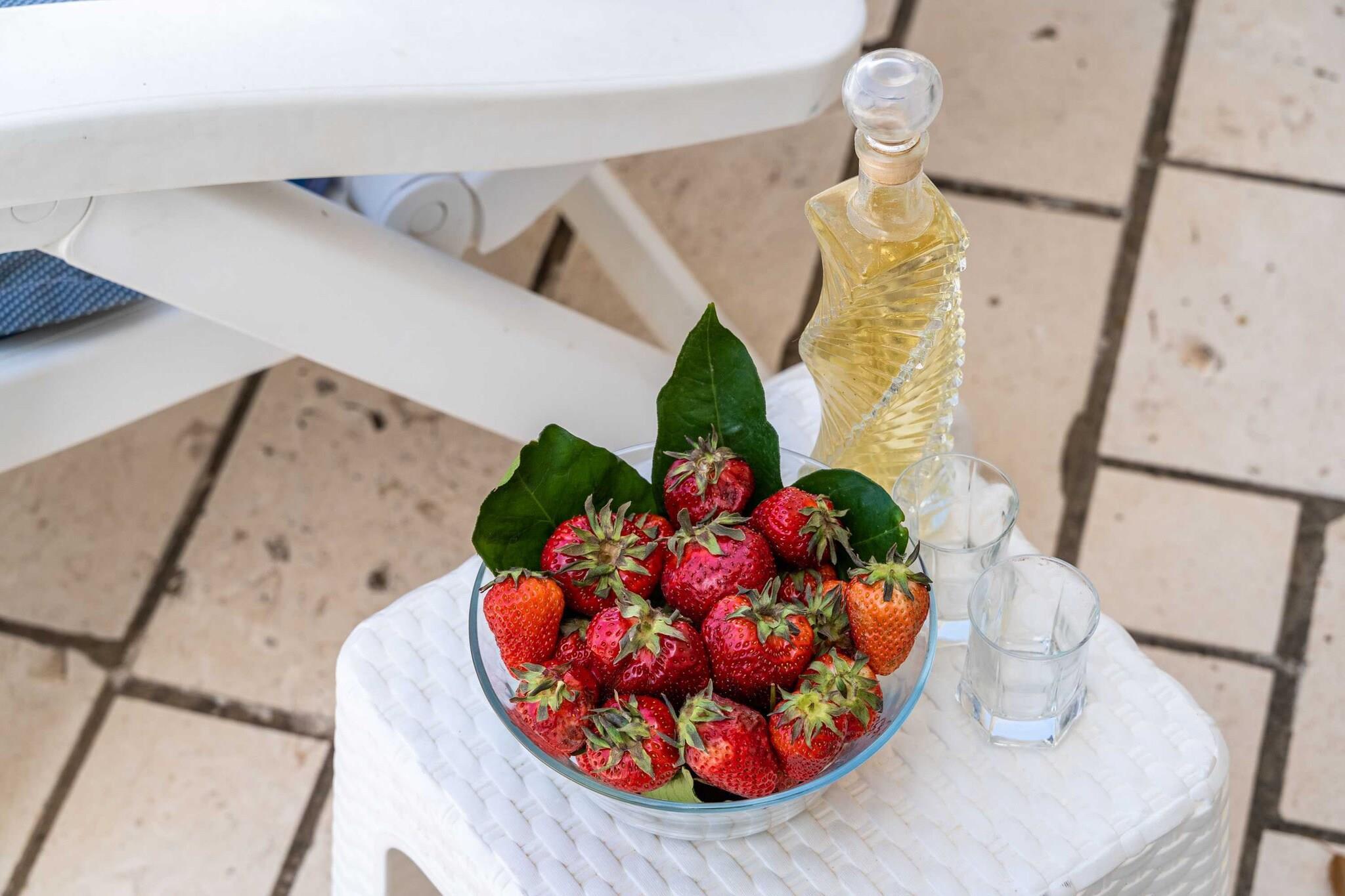Ground floor: (Kitchen(dining table, electric kettle, toaster, coffee machine, microwave, fridge), Living/bed room(single sofa bed, TV, seating area), bedroom(double bed), bedroom(double bed), bathroom(toilet, shower)) cot, washing machine, air conditioning, terrace, garden, BBQ, parking, tennis court, ironing board, iron, hairdryer