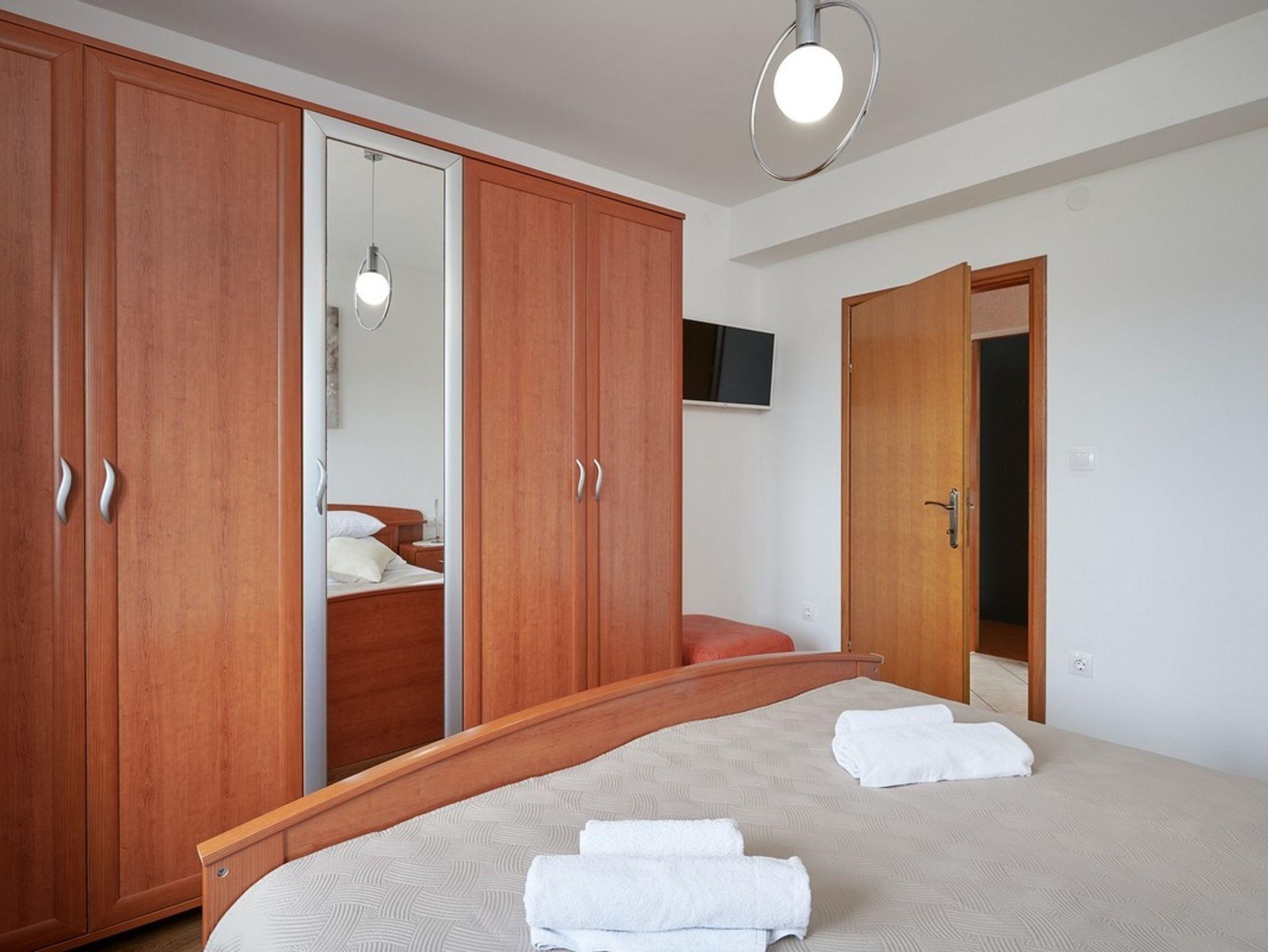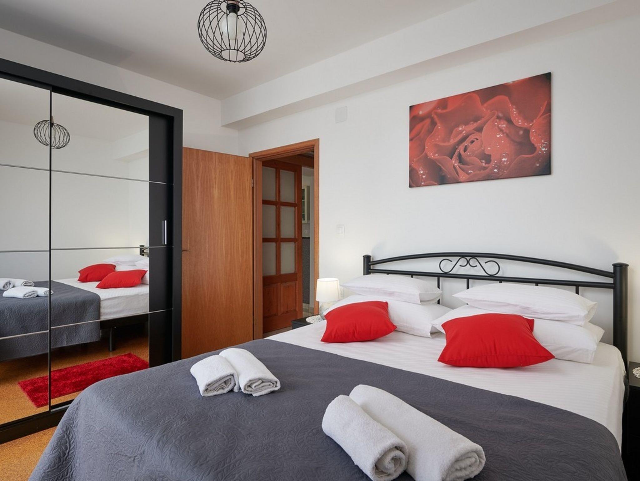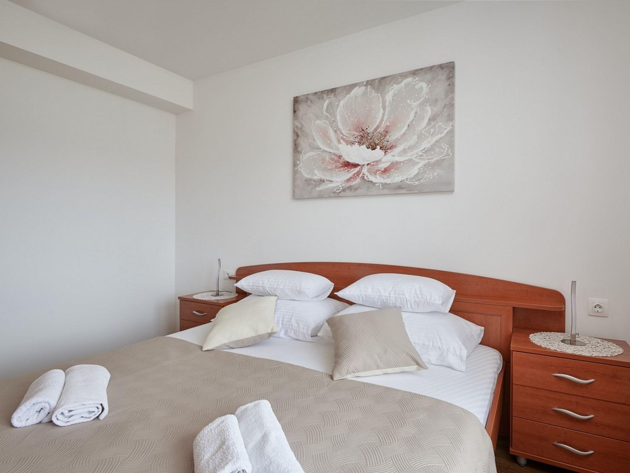 Ferienwohnung bietet Platz für 8 Gäste. Die Betten sind in Schlafzimmern, die es 3 gibt, und in Wohnzimmer, innerhalb einer Gesamtfläche von 114m2, angeordnet. Die Gäste haben einen eigenen Balkon zur Verfügung, auf der sie in warmen Sommernächten genießen können. Das Apartment bietet Meerblick. Für vollen Genuss und Entspannung gibt es einen privaten Grill für Gäste dieser Unterkunft. Während ihres Aufenthalts können sich Gäste im privaten Schwimmbad entspannen. IM PREIS INBEGRIFFEN: Kurtaxe, Endreinigung, Klimatisierung, Pool, Parkplatz, Internet, Kinderbett, Bügeleisen, Bügelbrett, Föhn, Liegestühle. Die Verfügbarkeit zusätzlicher Dienstleistungen in Ihrem reservierten Termin und die Preise derselben (falls nicht aufgeführt) müssen im Voraus überprüft werden. Zusätzliche Dienstleistungen die in der Zahlungsaufforderung nicht aufgeführt sind werden direkt beim Vermieter bezahlt, angenommen der Gast nutzt auch diese.