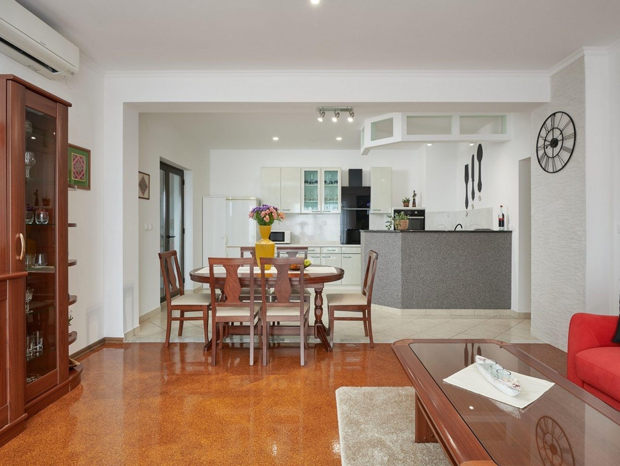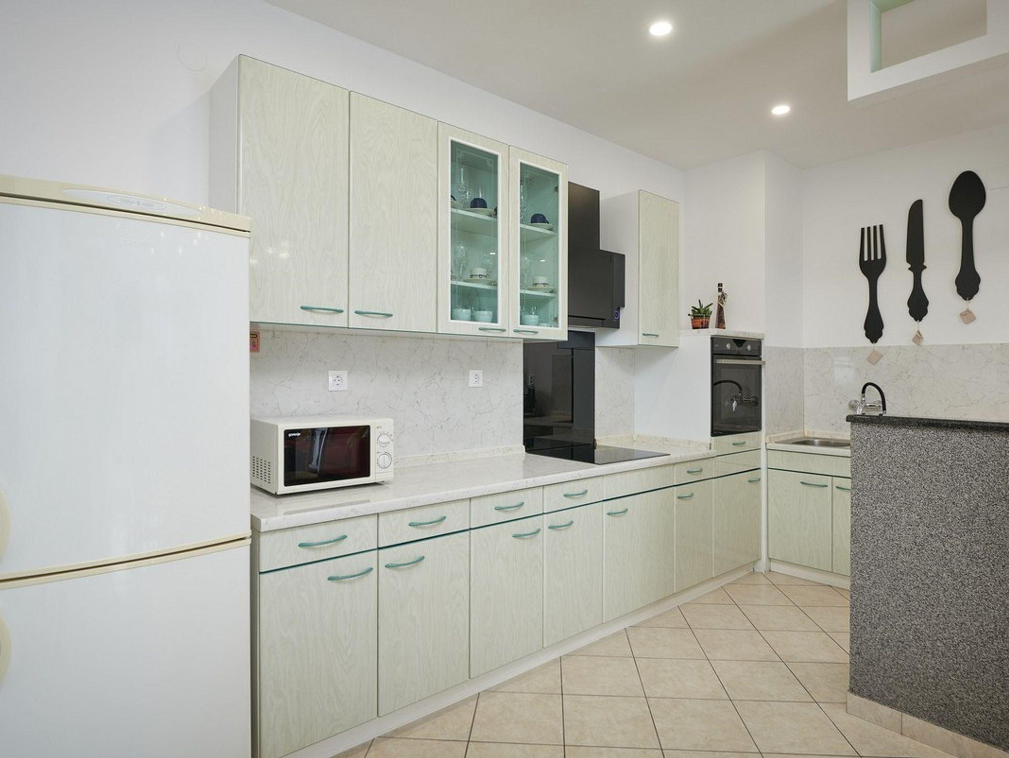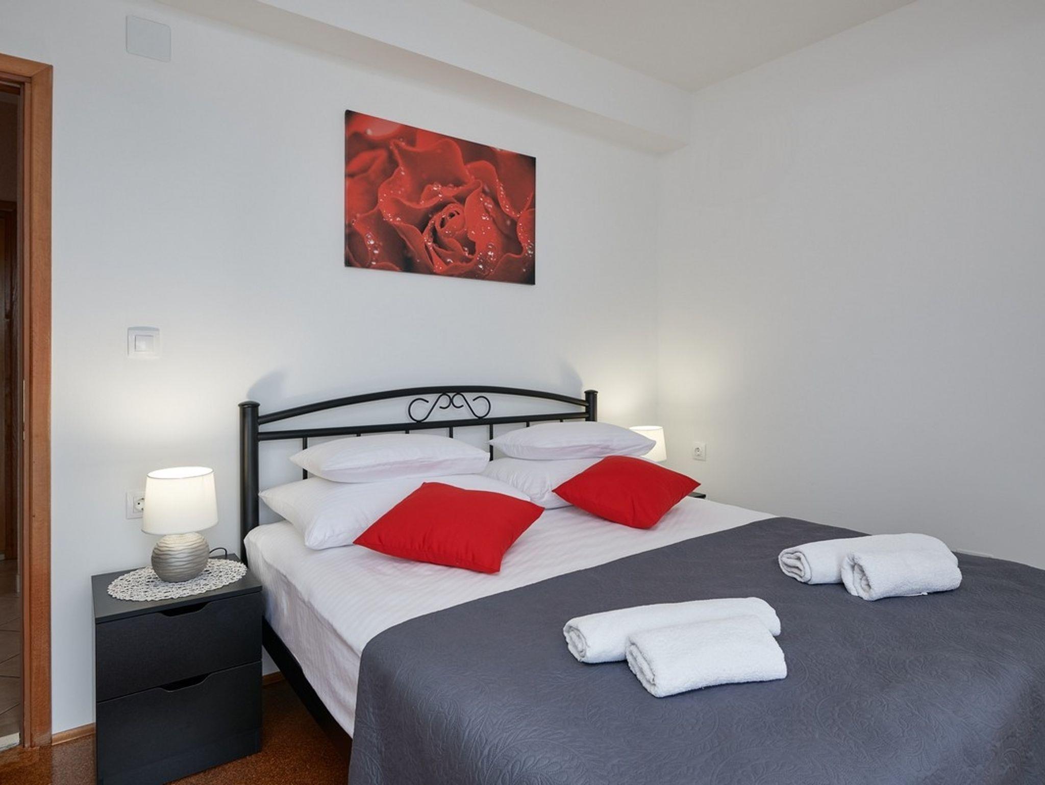 Ferienwohnung bietet Platz für 8 Gäste. Die Betten sind in Schlafzimmern, die es 3 gibt, und in Wohnzimmer, innerhalb einer Gesamtfläche von 114m2, angeordnet. Die Gäste haben einen eigenen Balkon zur Verfügung, auf der sie in warmen Sommernächten genießen können. Das Apartment bietet Meerblick. Für vollen Genuss und Entspannung gibt es einen privaten Grill für Gäste dieser Unterkunft. Während ihres Aufenthalts können sich Gäste im privaten Schwimmbad entspannen. IM PREIS INBEGRIFFEN: Kurtaxe, Endreinigung, Klimatisierung, Pool, Parkplatz, Internet, Kinderbett, Bügeleisen, Bügelbrett, Föhn, Liegestühle. Die Verfügbarkeit zusätzlicher Dienstleistungen in Ihrem reservierten Termin und die Preise derselben (falls nicht aufgeführt) müssen im Voraus überprüft werden. Zusätzliche Dienstleistungen die in der Zahlungsaufforderung nicht aufgeführt sind werden direkt beim Vermieter bezahlt, angenommen der Gast nutzt auch diese.