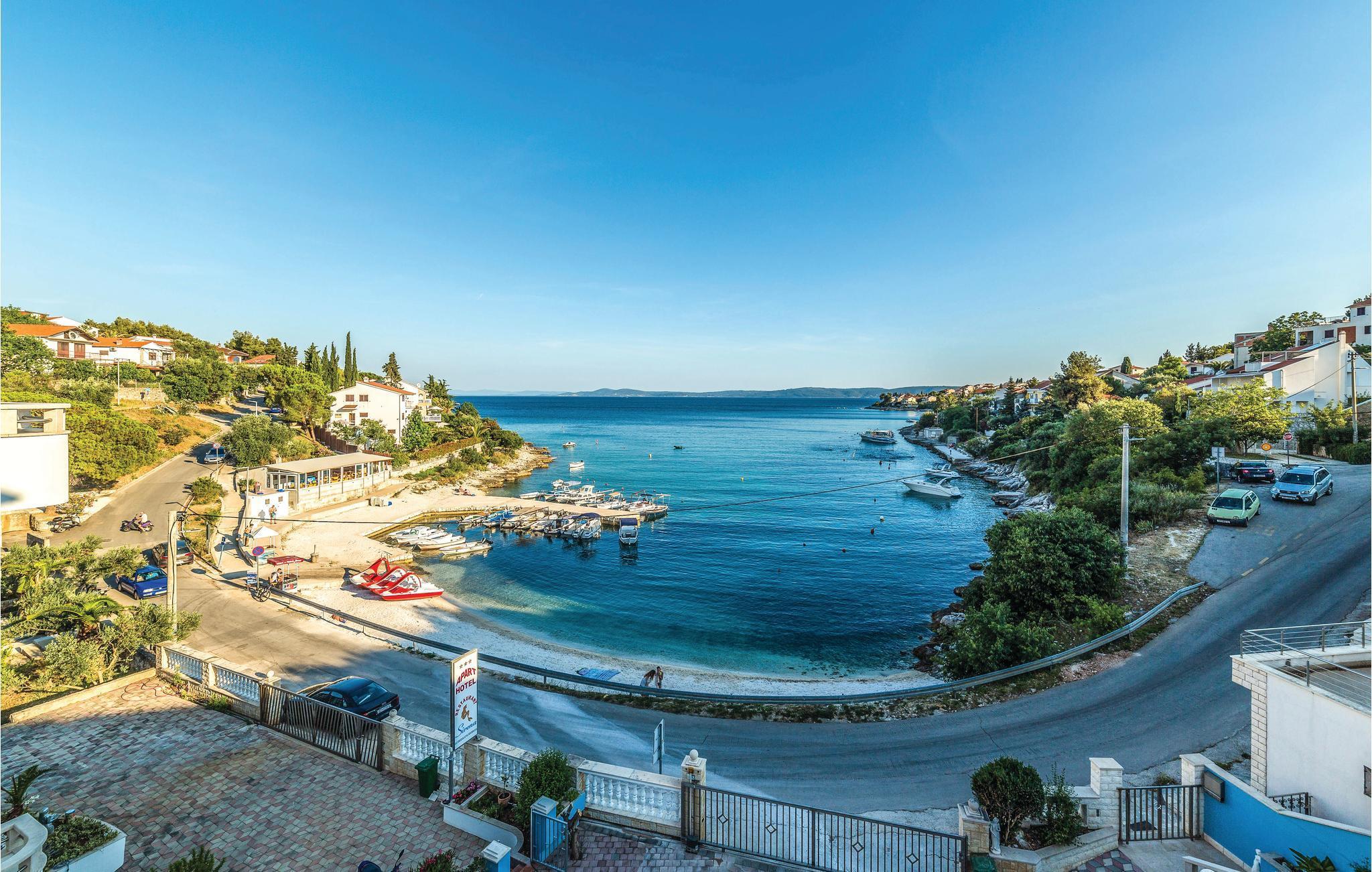 På øen Ciovo og lige ved kiesstranden ligger dette komfortable og rummelige feriehus med swimmingpool. Fra huset er der en skøn panoramaudsigt ud over havet, som I kan nyde fra terrassen. I stueplan ligger det store professionelle køkken, den komfortable stue og spisestue, samt den store terrasse. På første sal er der i alt otte soveværelser, hver med eget badeværelse. På de hede sommerdage kan I tage en svømmetur i poolen med skøn havudsigt. I byen Okrug Gornji er der utallige badestrande. Takket være broen kommer I nemt til og fra fastlandet, hvor I kan besøge den historiske by Trogir med mange historiske seværdigheder, samt meget at se og opleve.
