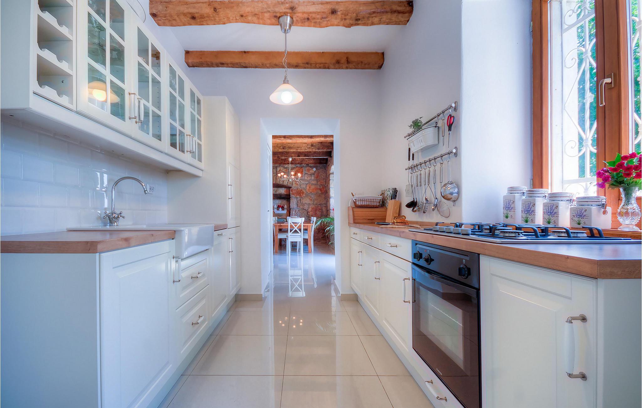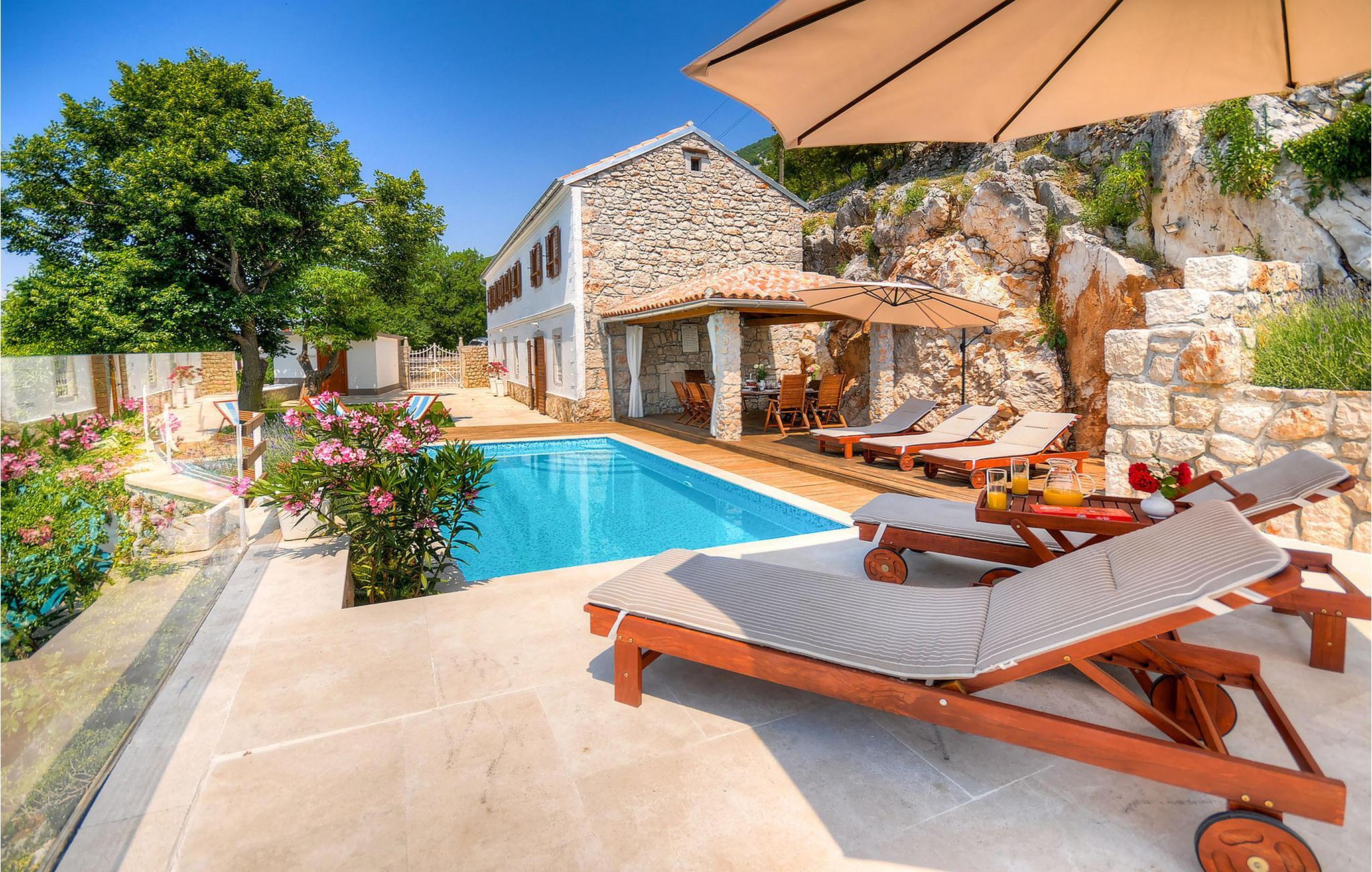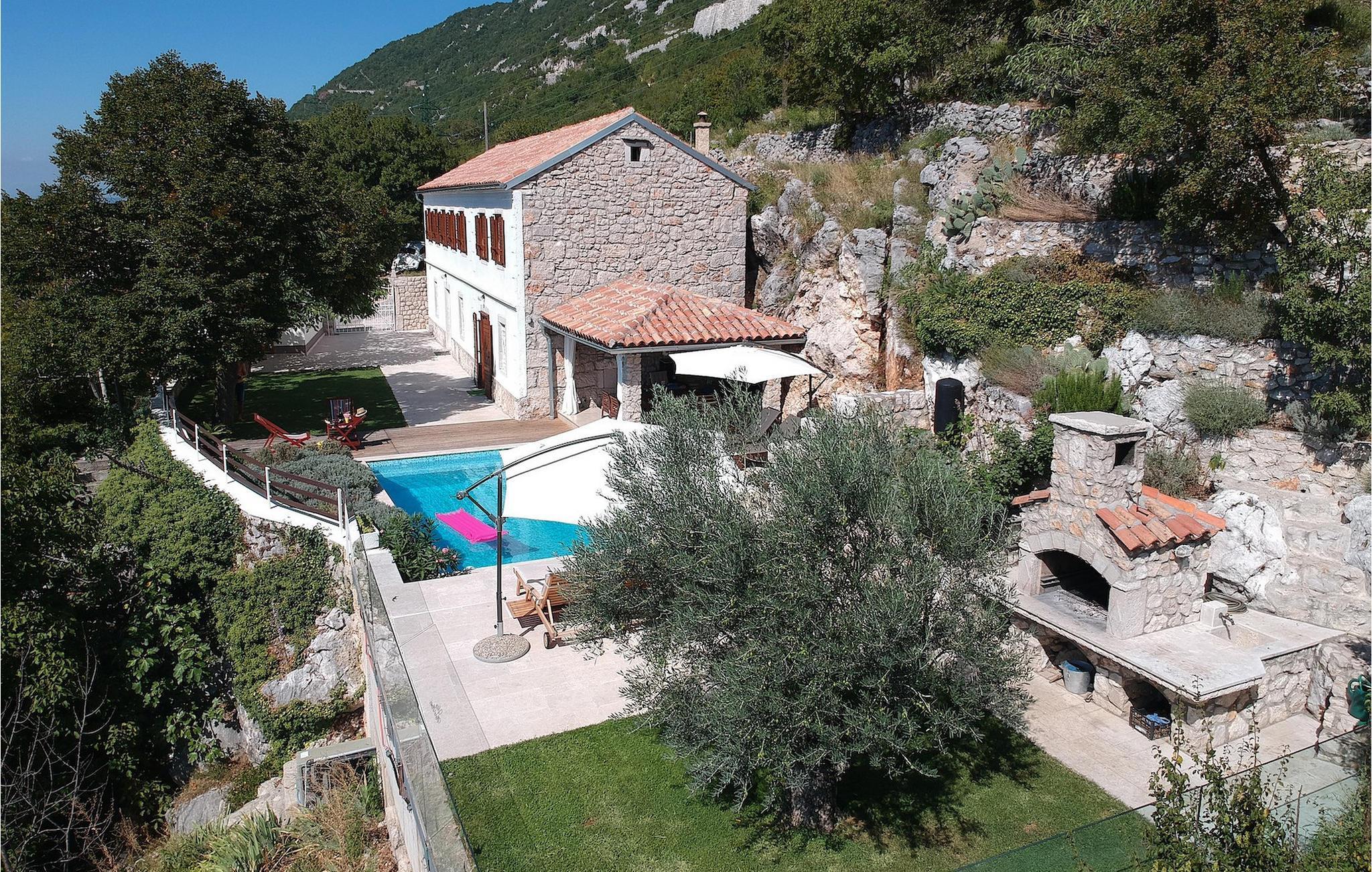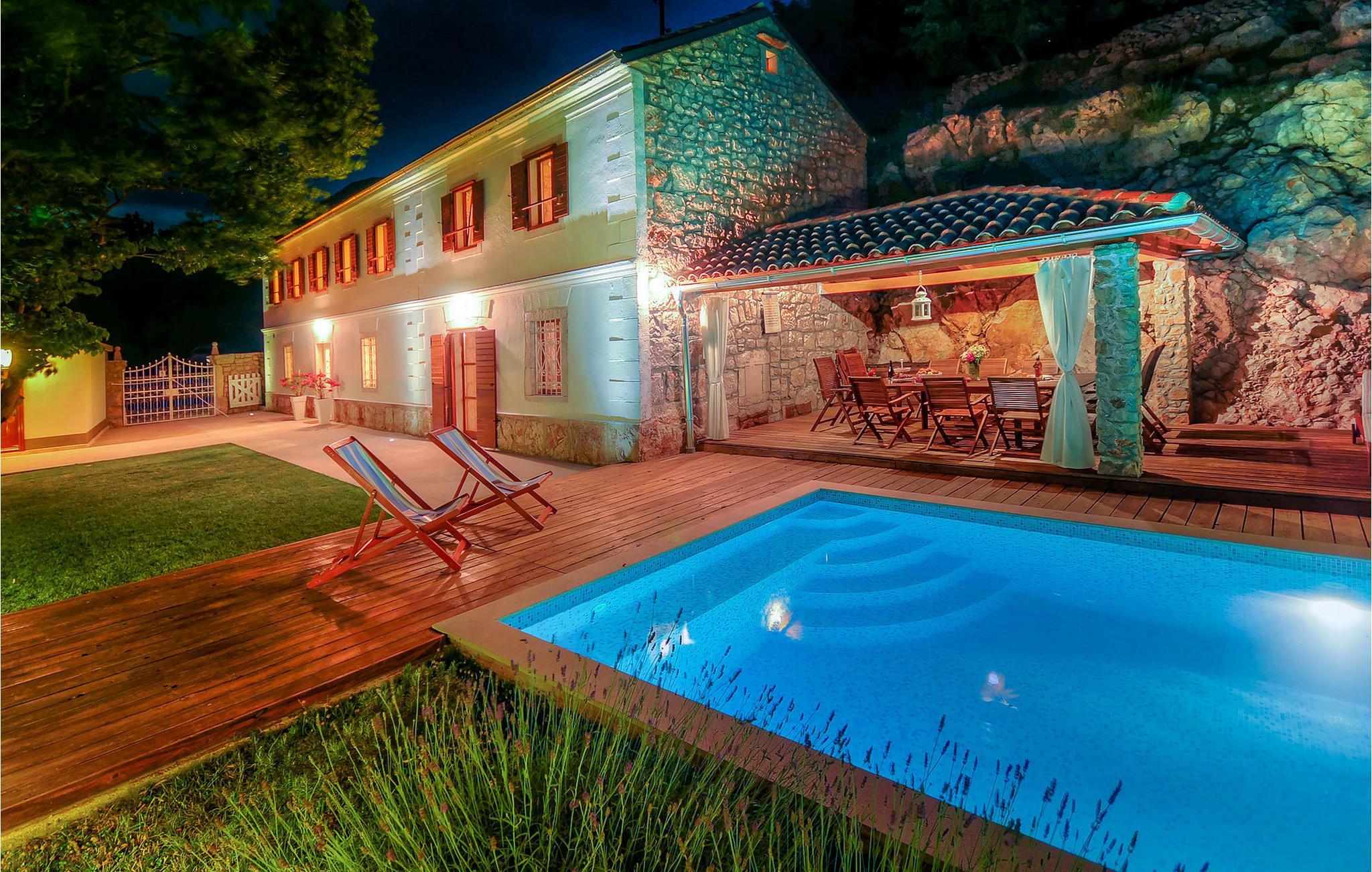 Villa Mare Monti ligger på bakkerne i Kvarner-bugten og tilbyder en betagende panoramaudsigt over bjergene og den omkringliggende grønne Vinodol-dal (Vallis Vinearia). Denne unikke ejendom er beliggende for enden af en stille, stejl og smal vej i bakkerne over Crikvenica. Den moderne indretning og faciliteter kombineret med traditionel arkitektur vil give dig og din familie/venner et behageligt sted, du kan kalde hjem, mens du holder ferie ved Adriaterhavet. Villaen blev bygget tilbage i 1909, og i 2013 blev den smagfuldt møbleret og fuldstændig renoveret for at give dig rigelig komfort under dit ophold. Villa Mare Monti er beliggende på en meget privat terrassejord, hvor du kan nyde en udendørs opvarmet pool og solbade på en træterrasse med panoramaudsigt over dalen og en fæstning fra middelalderen. Parallelt med kysten løber den 25 kilometer lange Vinodol (Vindalen), en strækning næsten uberørt af turiststrømmene, der kæmper sig vej sydpå langs kysten Magistrala. Denne dal er adskilt fra havet af en over to kilometer bred og 300 meter høj række af bakker. Det blev første gang nævnt i en krønike fra det 12. århundrede under navnet Vallis Vinearia. Der gik en vej langs denne dal selv tilbage i den antikke romerske periode. Beliggende på en skråning af disse bakker ligger denne ejendom, som tilbyder en fantastisk udsigt over Vinodol-dalen og på samme tid fuldstændig privatliv for gæsterne. Ikke desto mindre ligger det kun 15 minutters kørsel fra Crikvenica - et turist-hot-spot, hvor du finder adskillige restauranter, smukke strande og alverdens aktiviteter, hvis du leder efter en aktiv ferie. Den nærmeste butik ligger 2 km væk og en restaurant 5 km fra ejendommen. Temperaturen i den opvarmede swimmingpool er afhængig af eksterne faktorer, herunder vejrforhold, og som sådan kan temperaturen på vandet ikke garanteres.