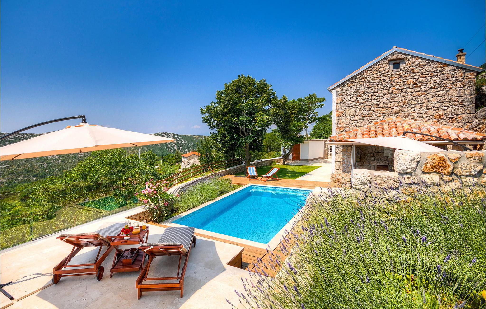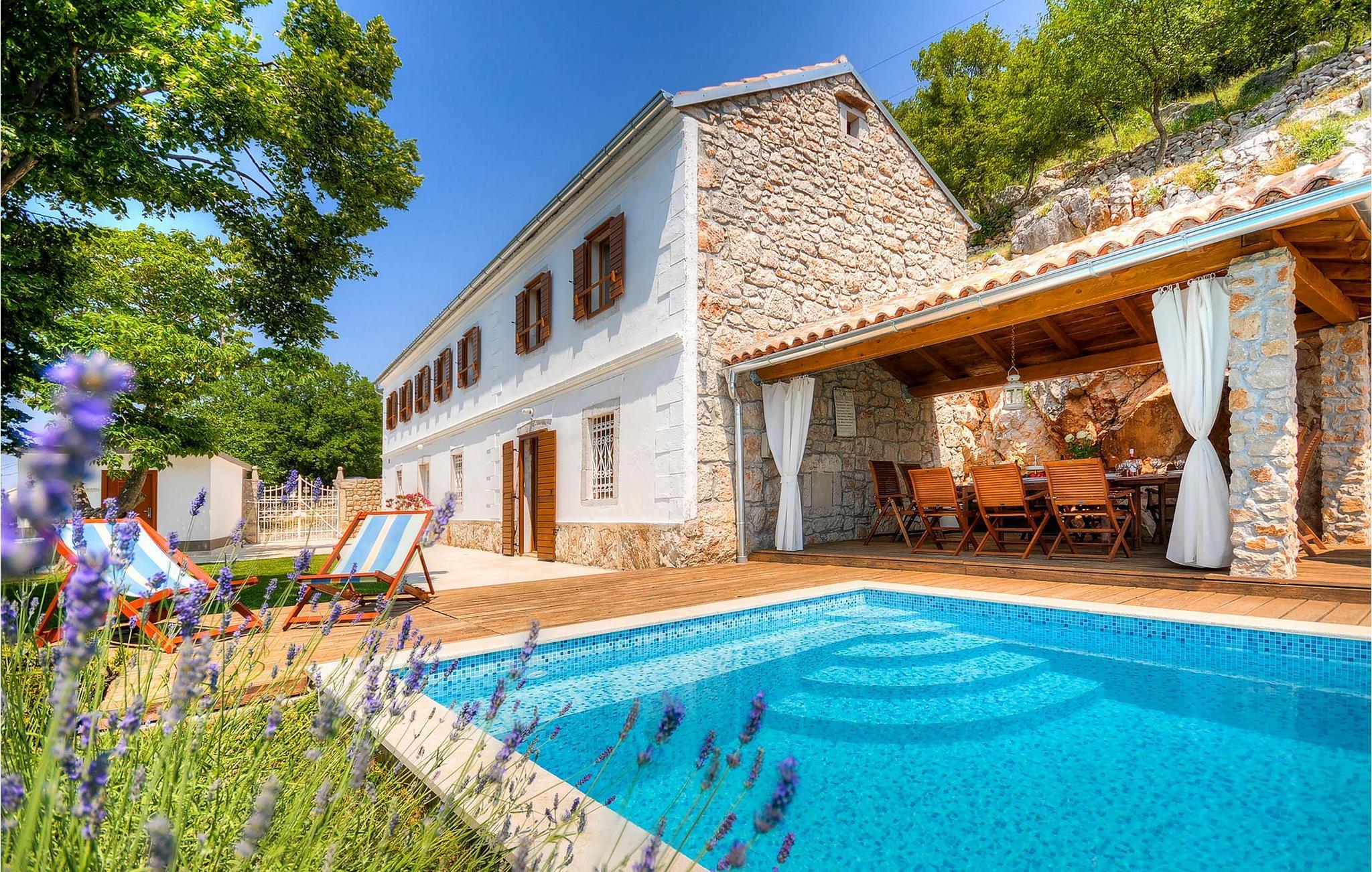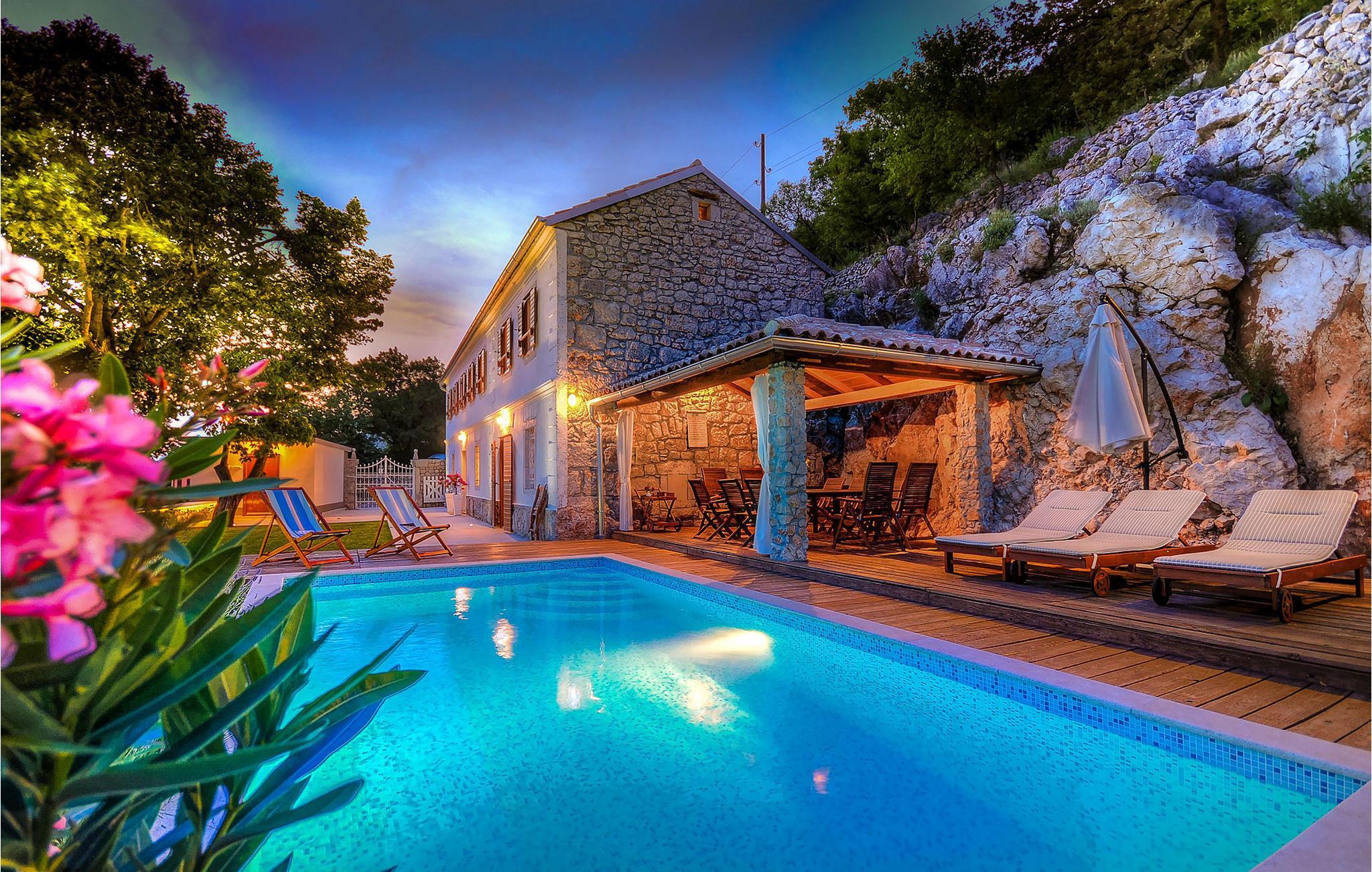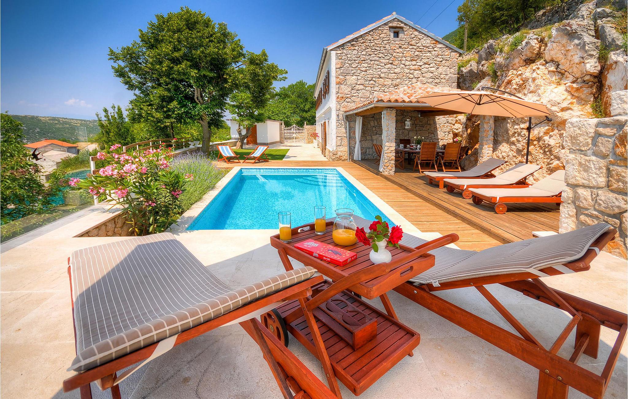 Villa Mare Monti ligger på bakkerne i Kvarner-bugten og tilbyder en betagende panoramaudsigt over bjergene og den omkringliggende grønne Vinodol-dal (Vallis Vinearia). Denne unikke ejendom er beliggende for enden af en stille, stejl og smal vej i bakkerne over Crikvenica. Den moderne indretning og faciliteter kombineret med traditionel arkitektur vil give dig og din familie/venner et behageligt sted, du kan kalde hjem, mens du holder ferie ved Adriaterhavet. Villaen blev bygget tilbage i 1909, og i 2013 blev den smagfuldt møbleret og fuldstændig renoveret for at give dig rigelig komfort under dit ophold. Villa Mare Monti er beliggende på en meget privat terrassejord, hvor du kan nyde en udendørs opvarmet pool og solbade på en træterrasse med panoramaudsigt over dalen og en fæstning fra middelalderen. Parallelt med kysten løber den 25 kilometer lange Vinodol (Vindalen), en strækning næsten uberørt af turiststrømmene, der kæmper sig vej sydpå langs kysten Magistrala. Denne dal er adskilt fra havet af en over to kilometer bred og 300 meter høj række af bakker. Det blev første gang nævnt i en krønike fra det 12. århundrede under navnet Vallis Vinearia. Der gik en vej langs denne dal selv tilbage i den antikke romerske periode. Beliggende på en skråning af disse bakker ligger denne ejendom, som tilbyder en fantastisk udsigt over Vinodol-dalen og på samme tid fuldstændig privatliv for gæsterne. Ikke desto mindre ligger det kun 15 minutters kørsel fra Crikvenica - et turist-hot-spot, hvor du finder adskillige restauranter, smukke strande og alverdens aktiviteter, hvis du leder efter en aktiv ferie. Den nærmeste butik ligger 2 km væk og en restaurant 5 km fra ejendommen. Temperaturen i den opvarmede swimmingpool er afhængig af eksterne faktorer, herunder vejrforhold, og som sådan kan temperaturen på vandet ikke garanteres.