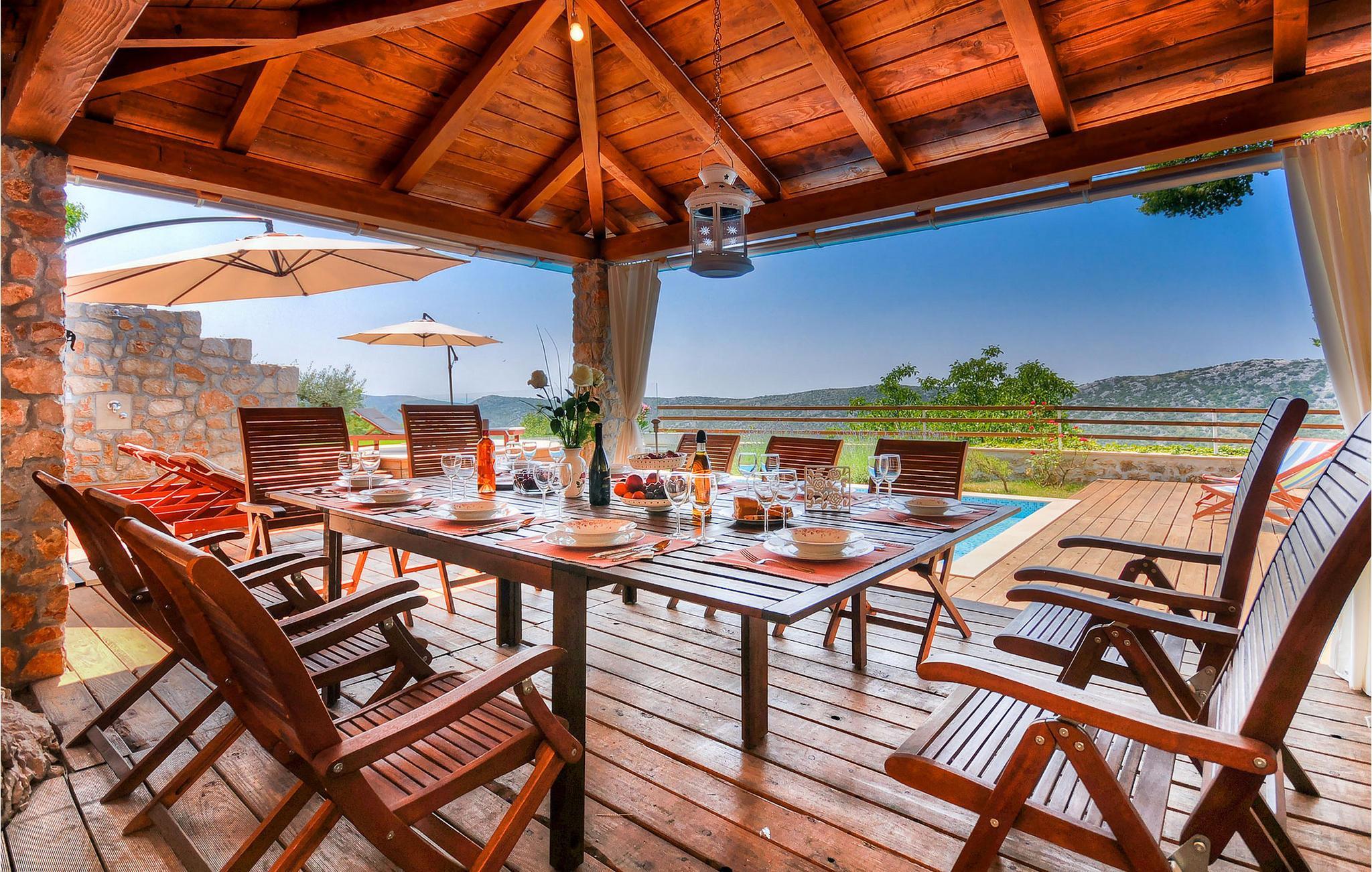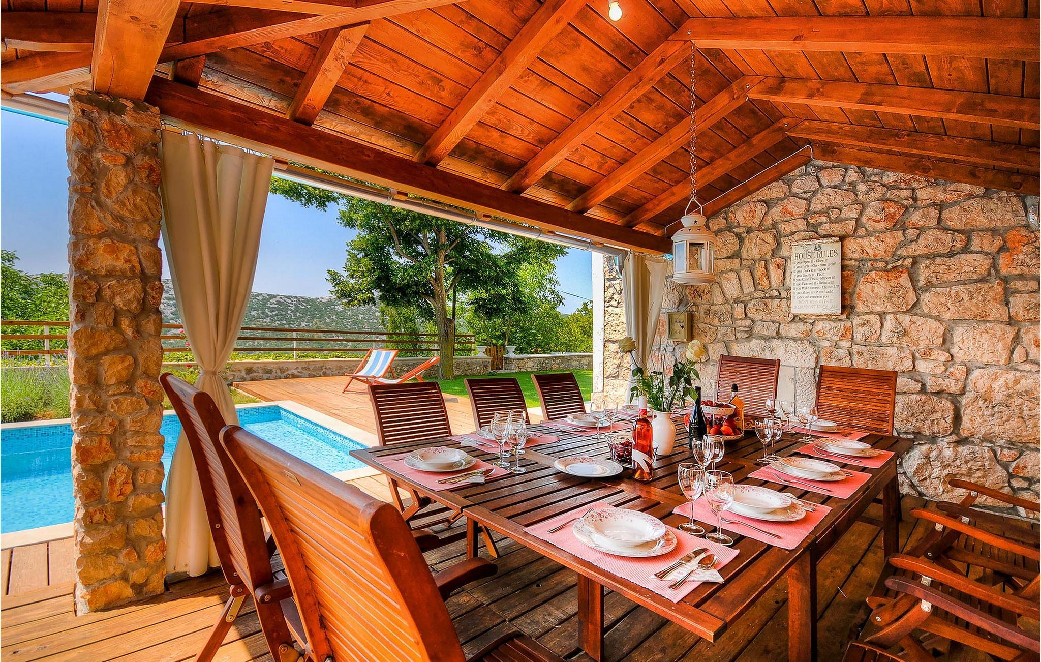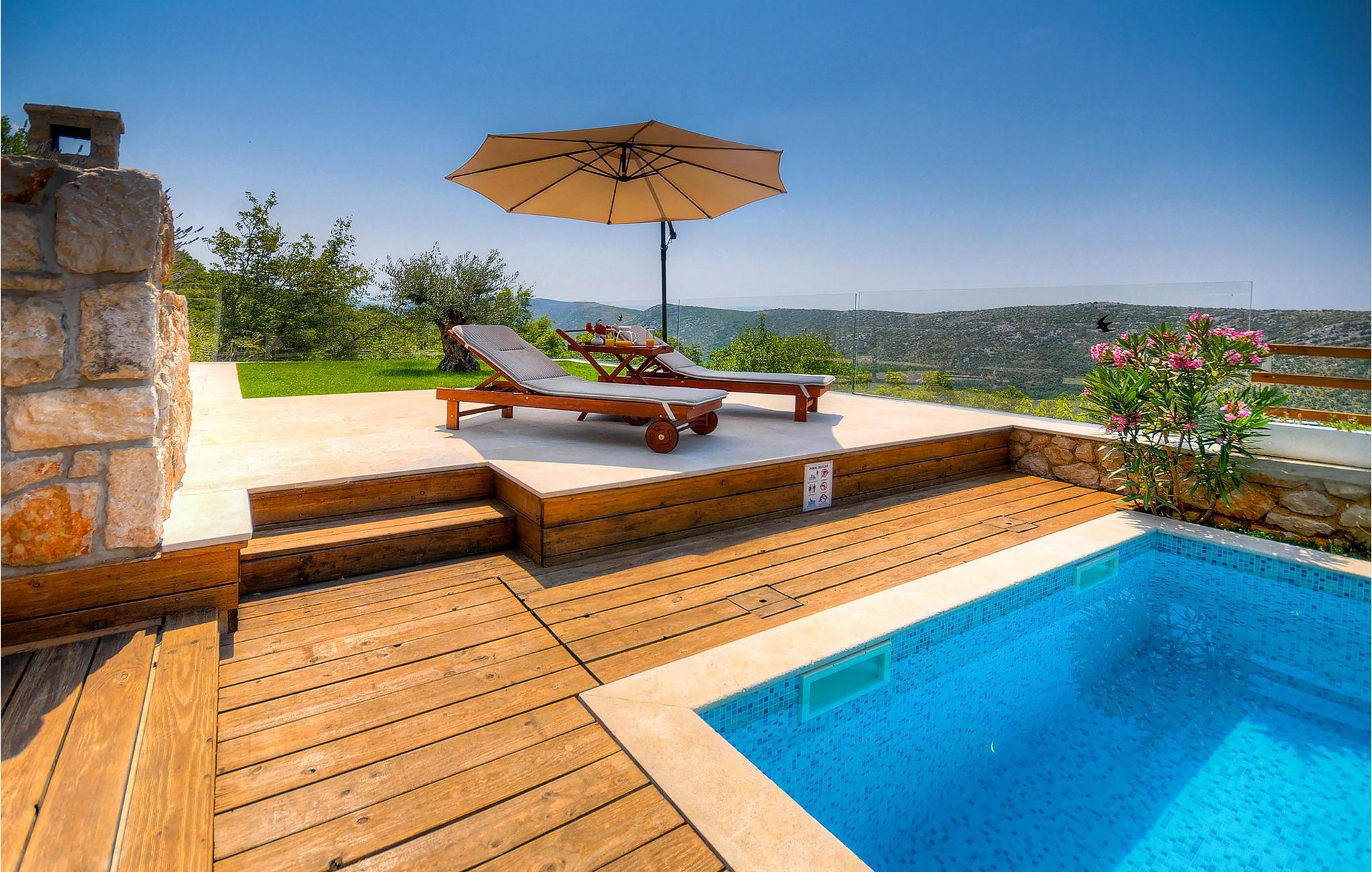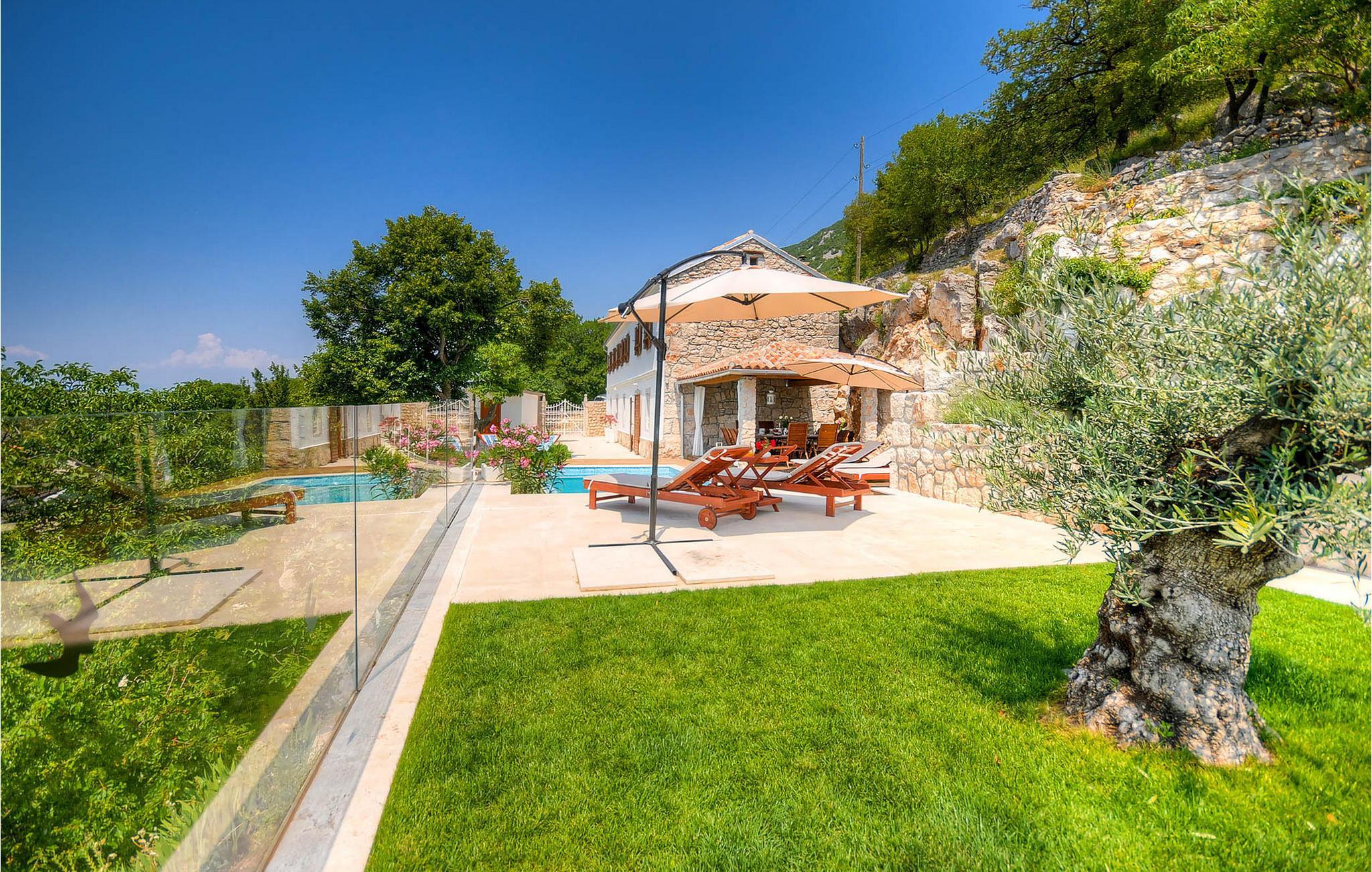 Villa Mare Monti ligger på bakkerne i Kvarner-bugten og tilbyder en betagende panoramaudsigt over bjergene og den omkringliggende grønne Vinodol-dal (Vallis Vinearia). Denne unikke ejendom er beliggende for enden af en stille, stejl og smal vej i bakkerne over Crikvenica. Den moderne indretning og faciliteter kombineret med traditionel arkitektur vil give dig og din familie/venner et behageligt sted, du kan kalde hjem, mens du holder ferie ved Adriaterhavet. Villaen blev bygget tilbage i 1909, og i 2013 blev den smagfuldt møbleret og fuldstændig renoveret for at give dig rigelig komfort under dit ophold. Villa Mare Monti er beliggende på en meget privat terrassejord, hvor du kan nyde en udendørs opvarmet pool og solbade på en træterrasse med panoramaudsigt over dalen og en fæstning fra middelalderen. Parallelt med kysten løber den 25 kilometer lange Vinodol (Vindalen), en strækning næsten uberørt af turiststrømmene, der kæmper sig vej sydpå langs kysten Magistrala. Denne dal er adskilt fra havet af en over to kilometer bred og 300 meter høj række af bakker. Det blev første gang nævnt i en krønike fra det 12. århundrede under navnet Vallis Vinearia. Der gik en vej langs denne dal selv tilbage i den antikke romerske periode. Beliggende på en skråning af disse bakker ligger denne ejendom, som tilbyder en fantastisk udsigt over Vinodol-dalen og på samme tid fuldstændig privatliv for gæsterne. Ikke desto mindre ligger det kun 15 minutters kørsel fra Crikvenica - et turist-hot-spot, hvor du finder adskillige restauranter, smukke strande og alverdens aktiviteter, hvis du leder efter en aktiv ferie. Den nærmeste butik ligger 2 km væk og en restaurant 5 km fra ejendommen. Temperaturen i den opvarmede swimmingpool er afhængig af eksterne faktorer, herunder vejrforhold, og som sådan kan temperaturen på vandet ikke garanteres.