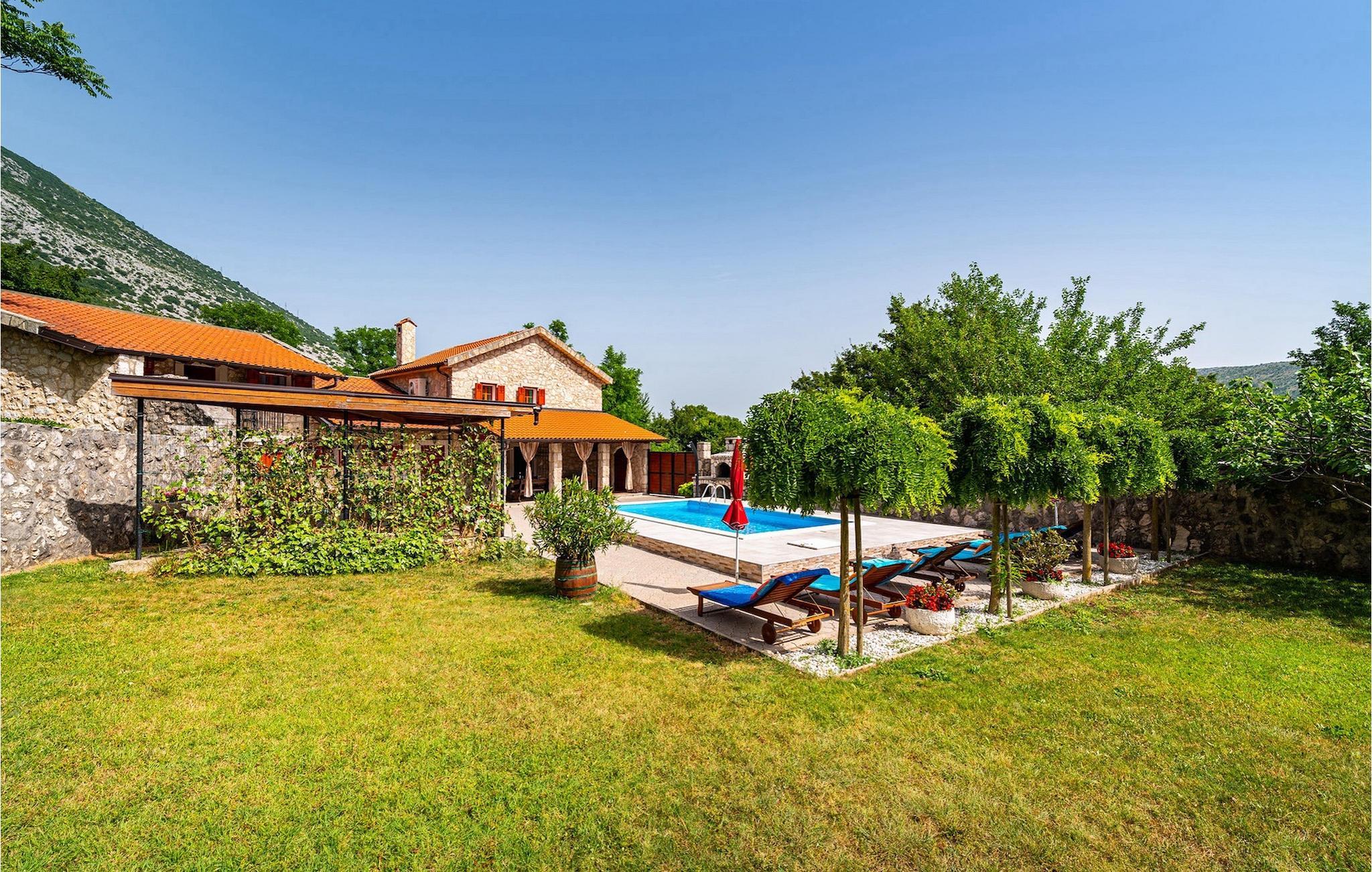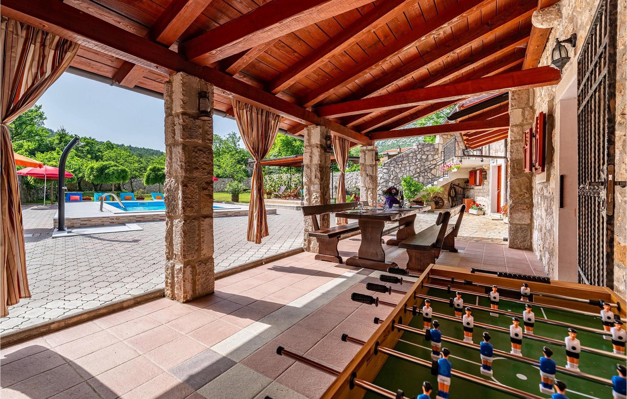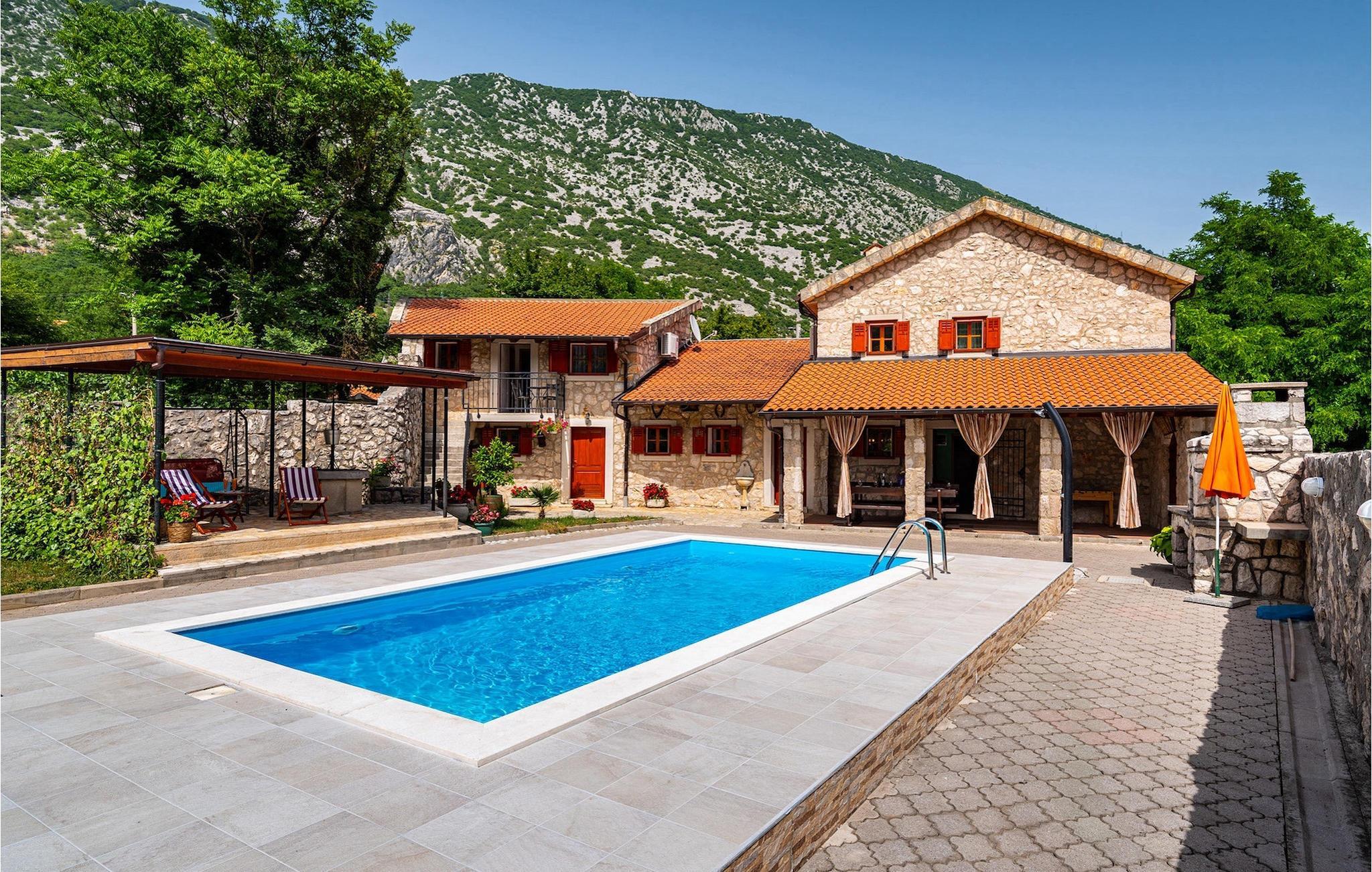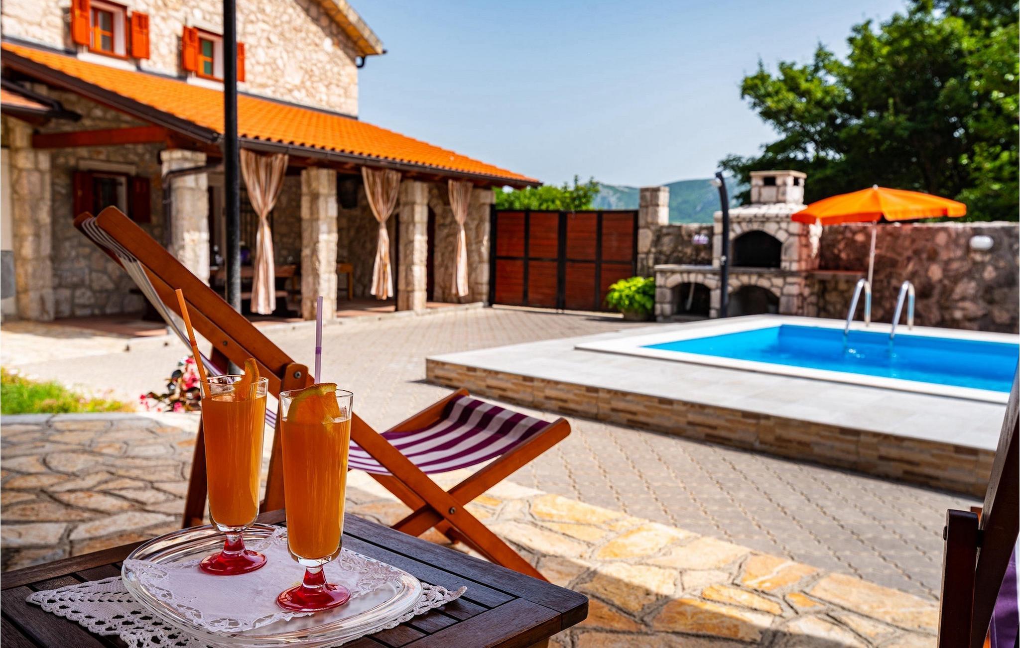 Villa Castra er et traditionelt hus fra det 19. århundrede, der blev nyrestaureret som et luksus stenhus. Huset er beliggende i Vinodol-dalen lige under den historiske Drivenik gamle bydel og slottet, som først blev nævnt i Vinodols lovkodeks i det 13. århundrede. Villaen er rummelig og elegant indrettet med stenvæggeelementer og træbjælker og interiør med aircondition. Det består af separate lejligheder; hver lejlighed har en separat indgang udefra, og de er ikke forbundet indvendigt. Lejligheden til højre består af et fuldt udstyret køkken, spisestue, 2 soveværelser med dobbeltsenge og 2 badeværelser samt en dejlig stue med fladskærms-satellit-tv og pejs til fælles brug. I lejligheden til venstre er 2 soveværelser med dobbeltsenge og 1 badeværelse. Det ydre består af en fuldstændig indhegnet stor privat have med swimmingpool og liggestole, stengrill, overdækkede terrasser med stort spisebord. Der er også gratis trådløs internetadgang og stor privat parkering. Ejendommens gunstige beliggenhed giver en ideel mulighed for dem, der foretrækker en rolig ferie væk fra stress og larm. Vinodol-dalen er et paradis for fiskere, cyklister, vandrere, vandrere, klatrere, paraglidere med mange cykelstier, vandreture og vandrestier, der passerer gennem fascinerende Vinodols områder, som giver vores gæster mulighed for at opleve bevaret natur og kulturarv. Kystbyerne Crikvenica og Novi Vinodolski med smukke strande og restauranter eller øen Krk ligger kun 10 minutters kørsel væk. Den største kroatiske havneby Rijeka ligger 30 km derfra, og Rijeka Lufthavn ligger 5 km derfra. En bil anbefales.